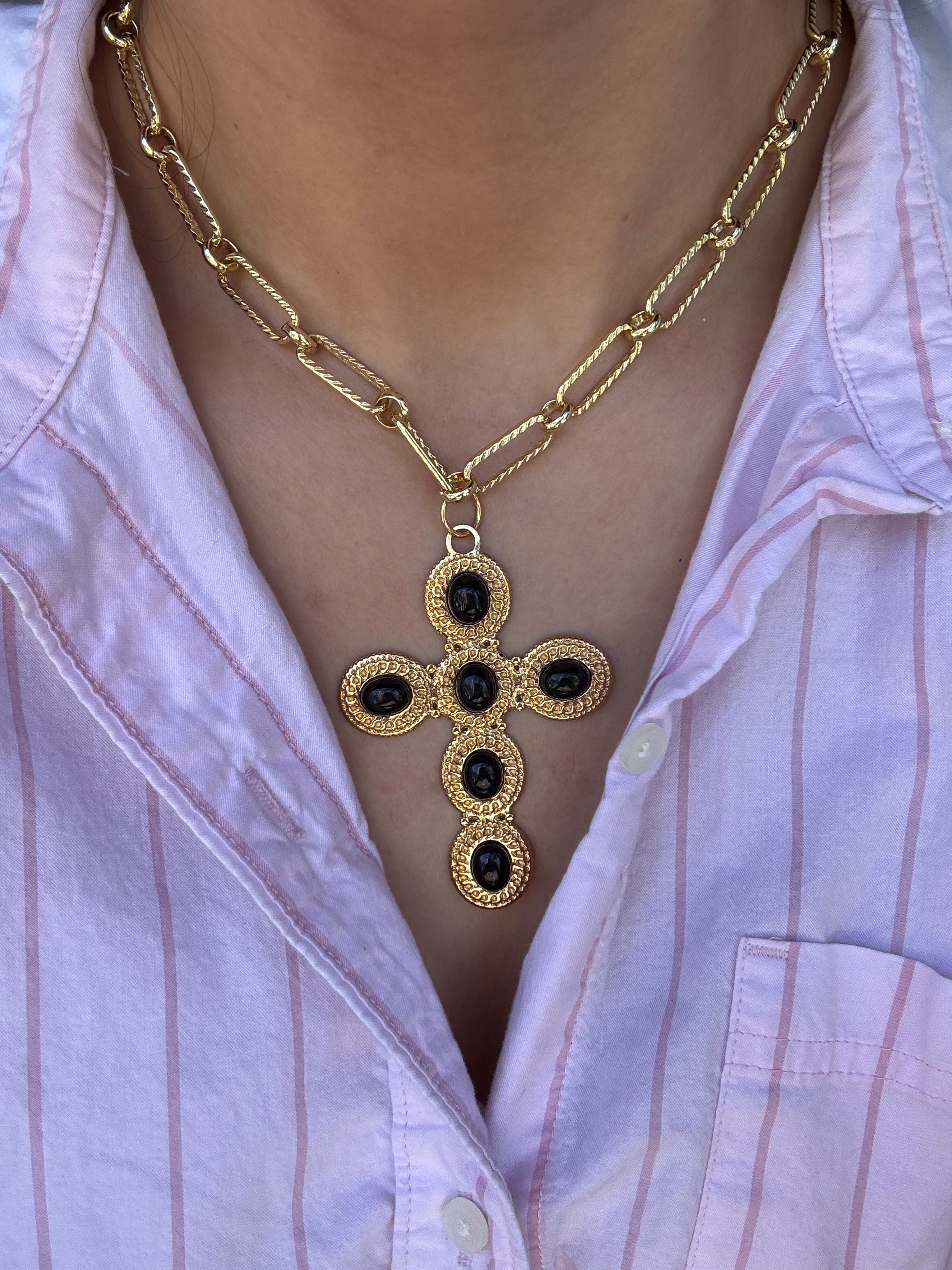 Black Stone Gold Cross Necklace