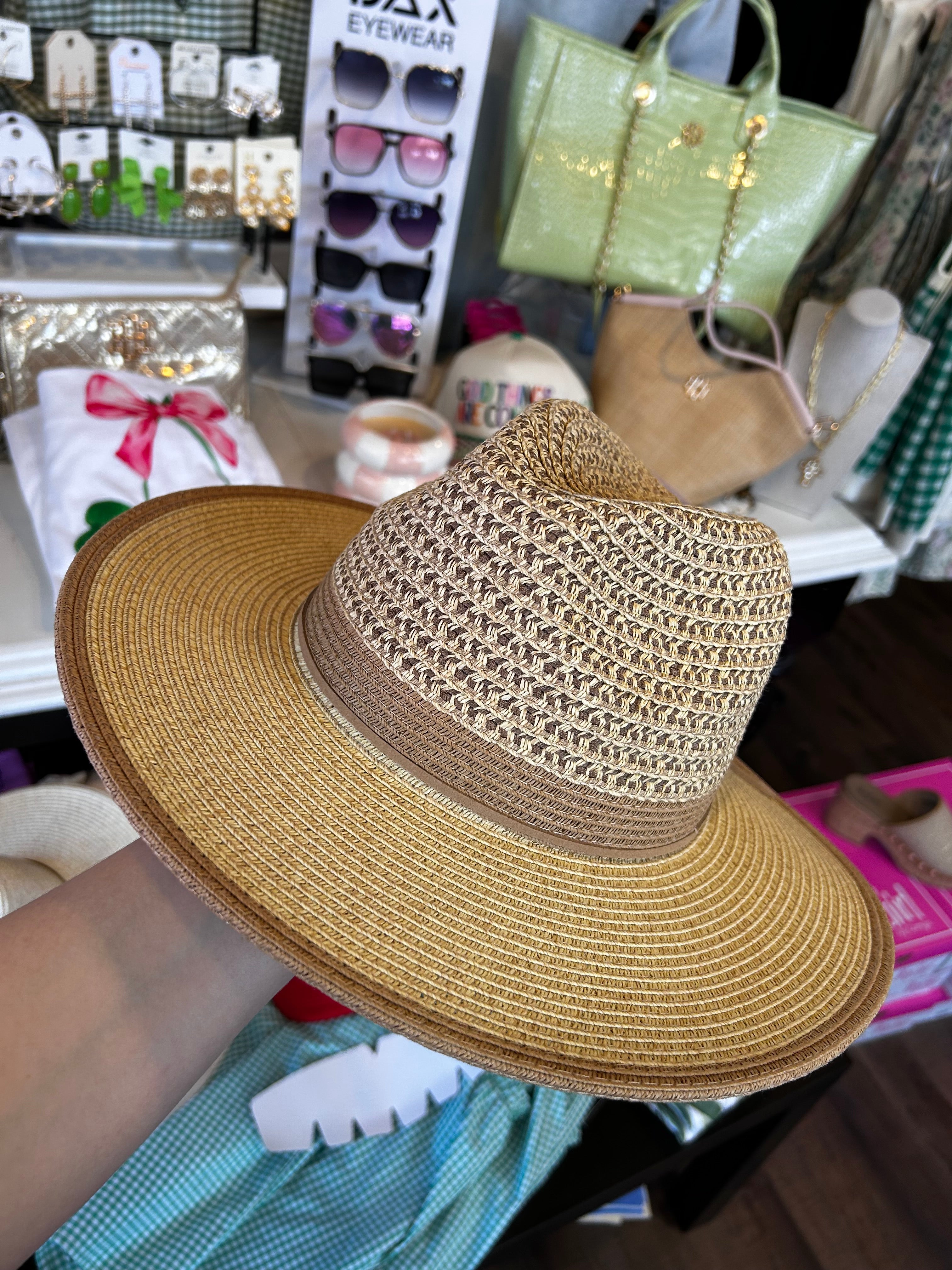 Bow Accent Two Tone Straw Hat-Tan Trim