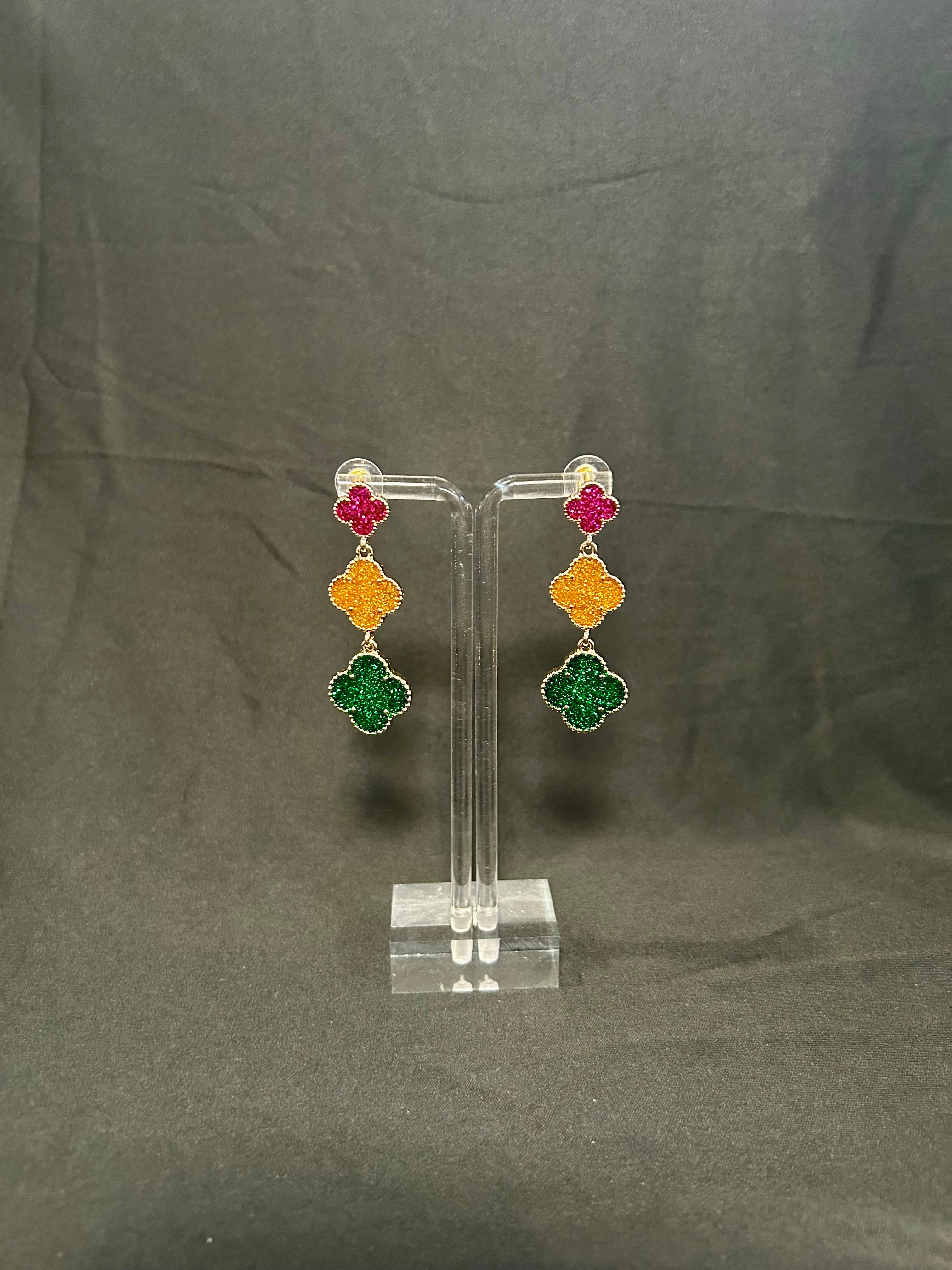 Make a statement with these Mardi Gras Glitter Triple Clover Link Earrings. Each earring catches the light with playful radiance, perfect for celebrating in style or turning heads on a night out. The modern design balances bold sparkle with elegant charm, adding just the right amount of festive flair to elevate any look. Whether you're dancing through the season or simply want to shine, these beauties deliver sophisticated fun with every wear.