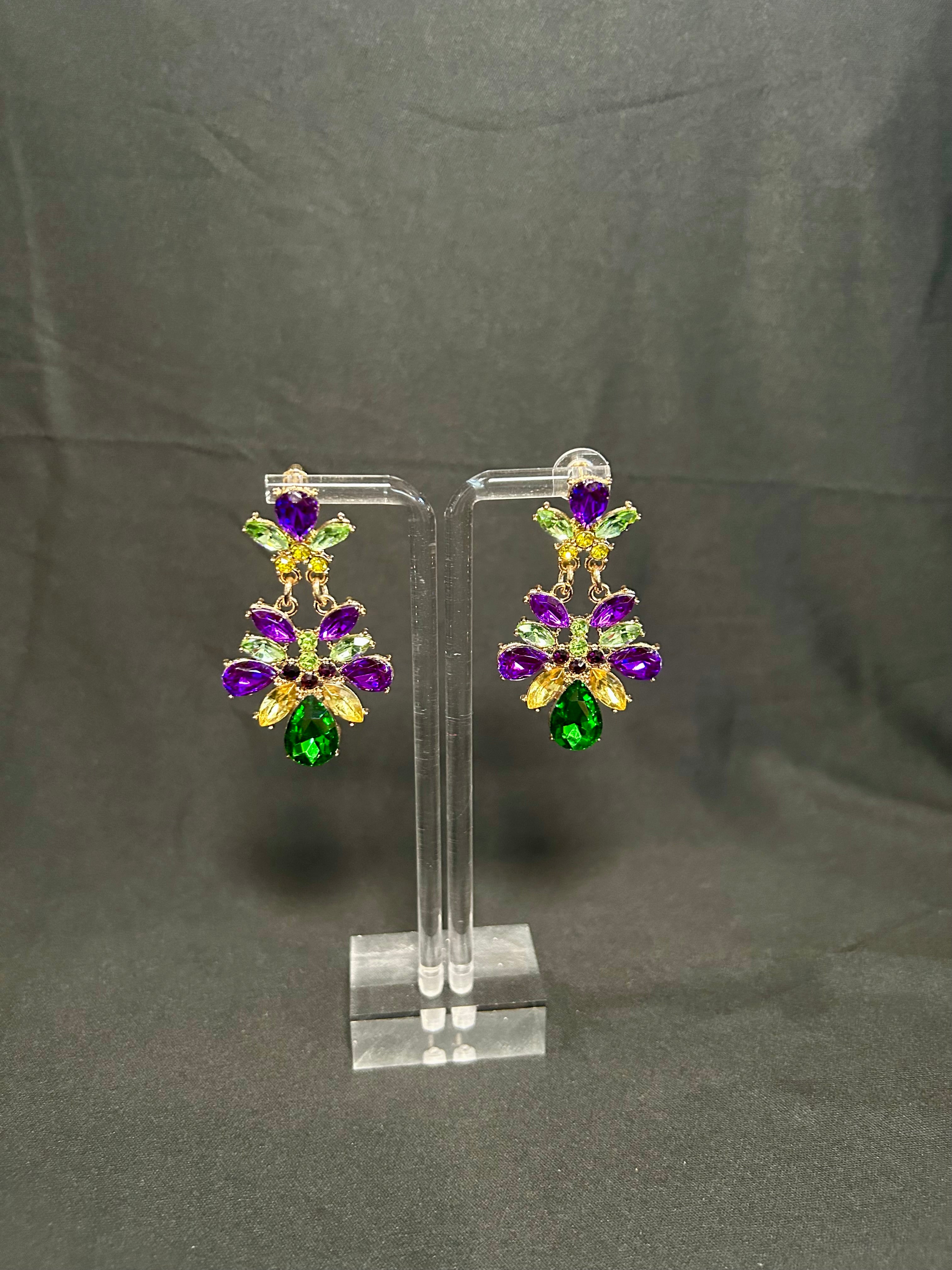 Mardi Gras Rhinestone Cluster Earrings