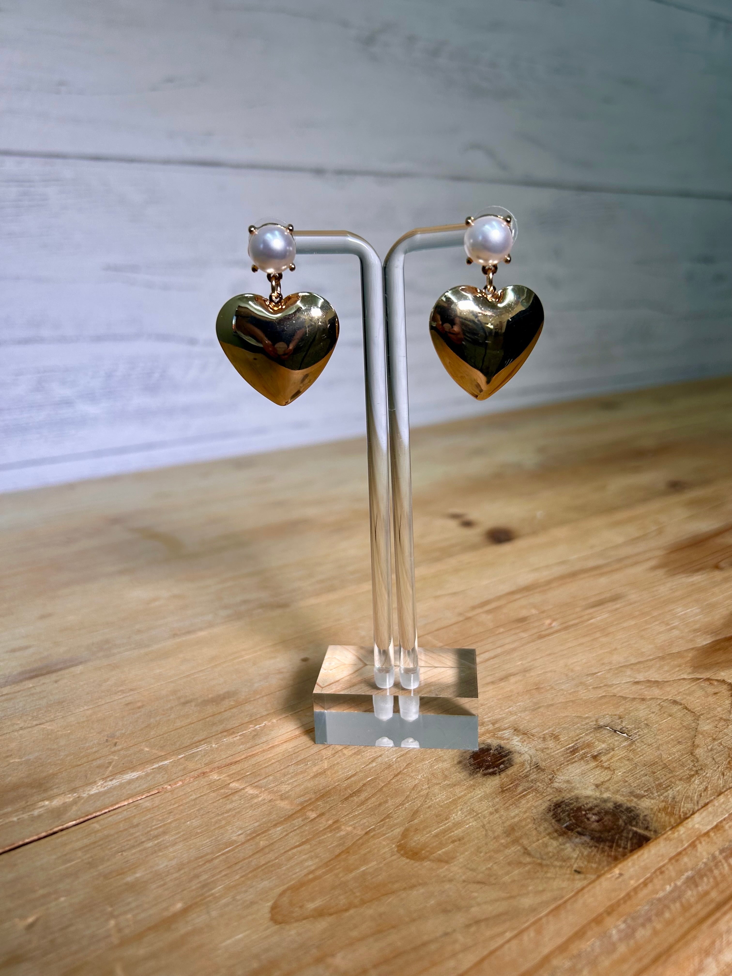 Gold Heart Pearl Post Earrings