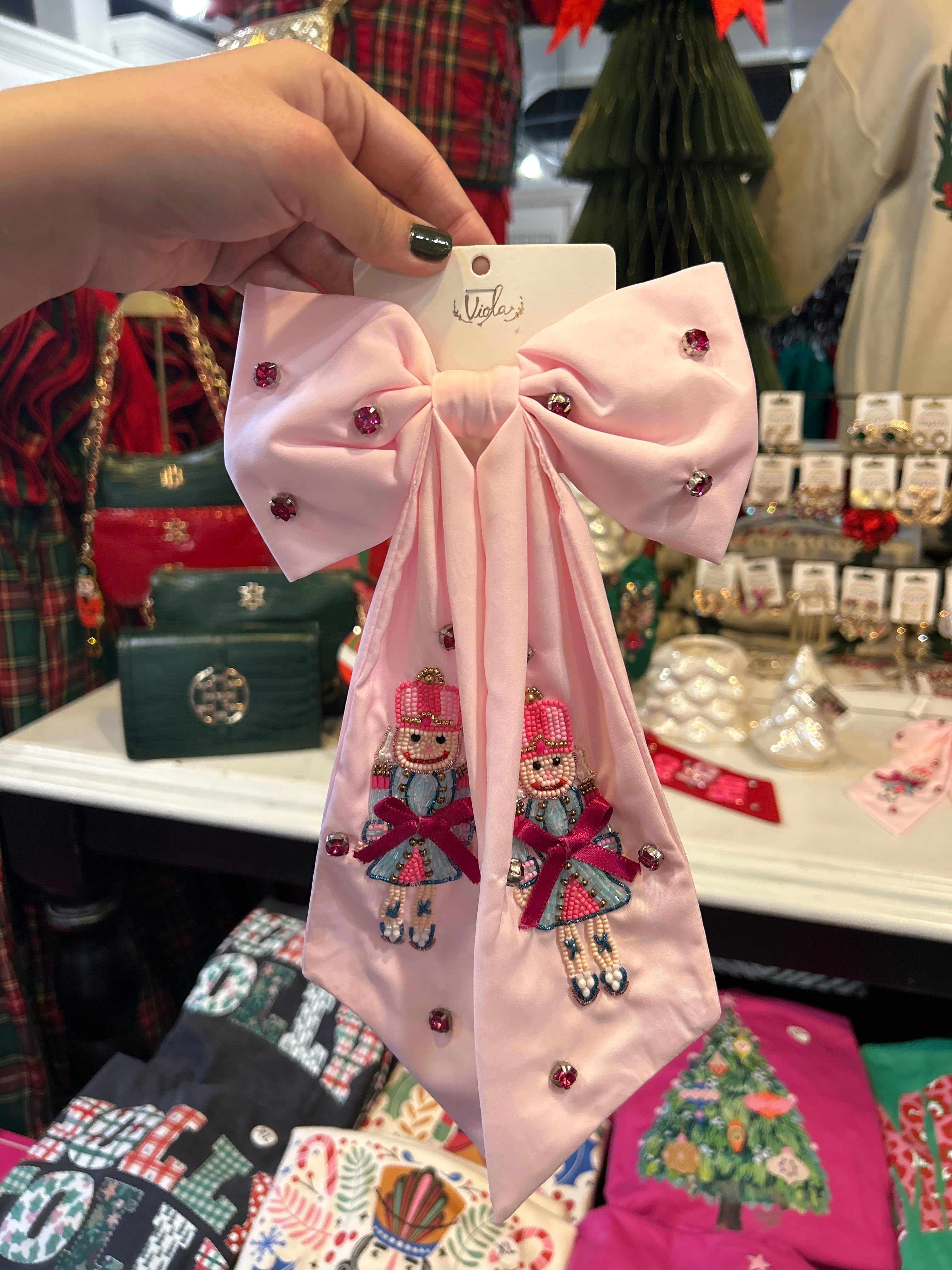 Pink Nutcracker Beads Big Hair Bow