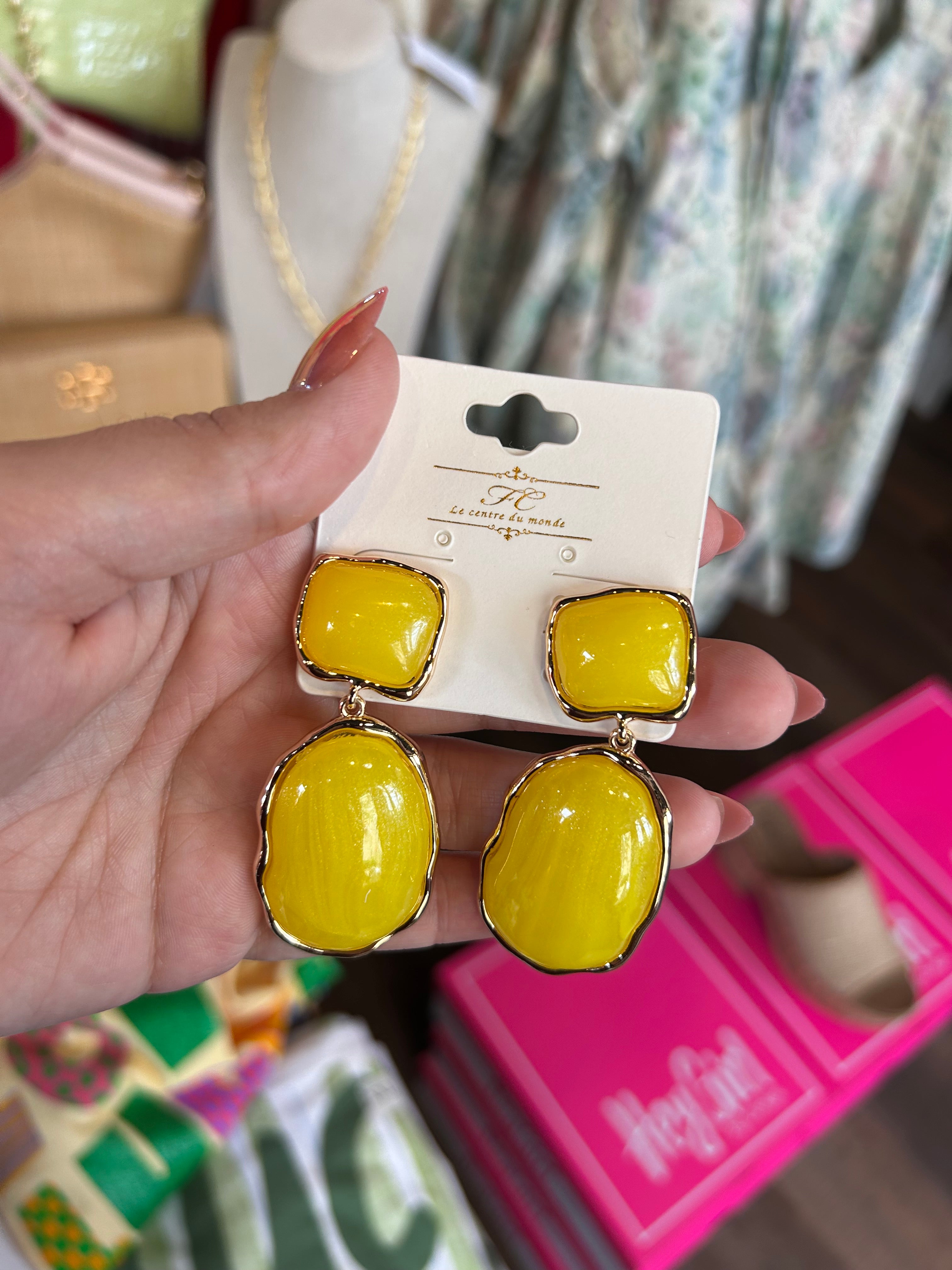 Yellow Square & Oval Earrings