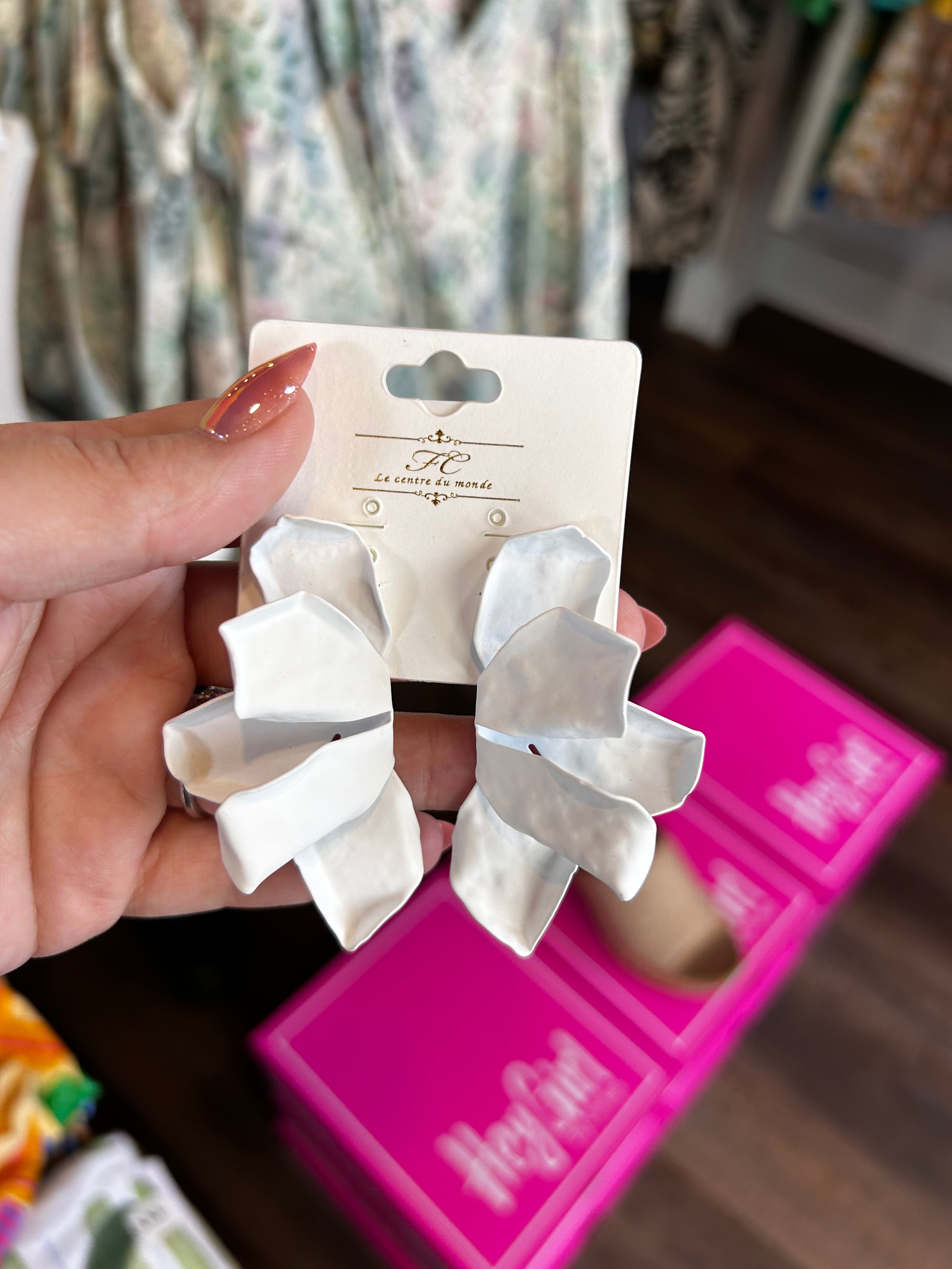 White Half Flower Earrings