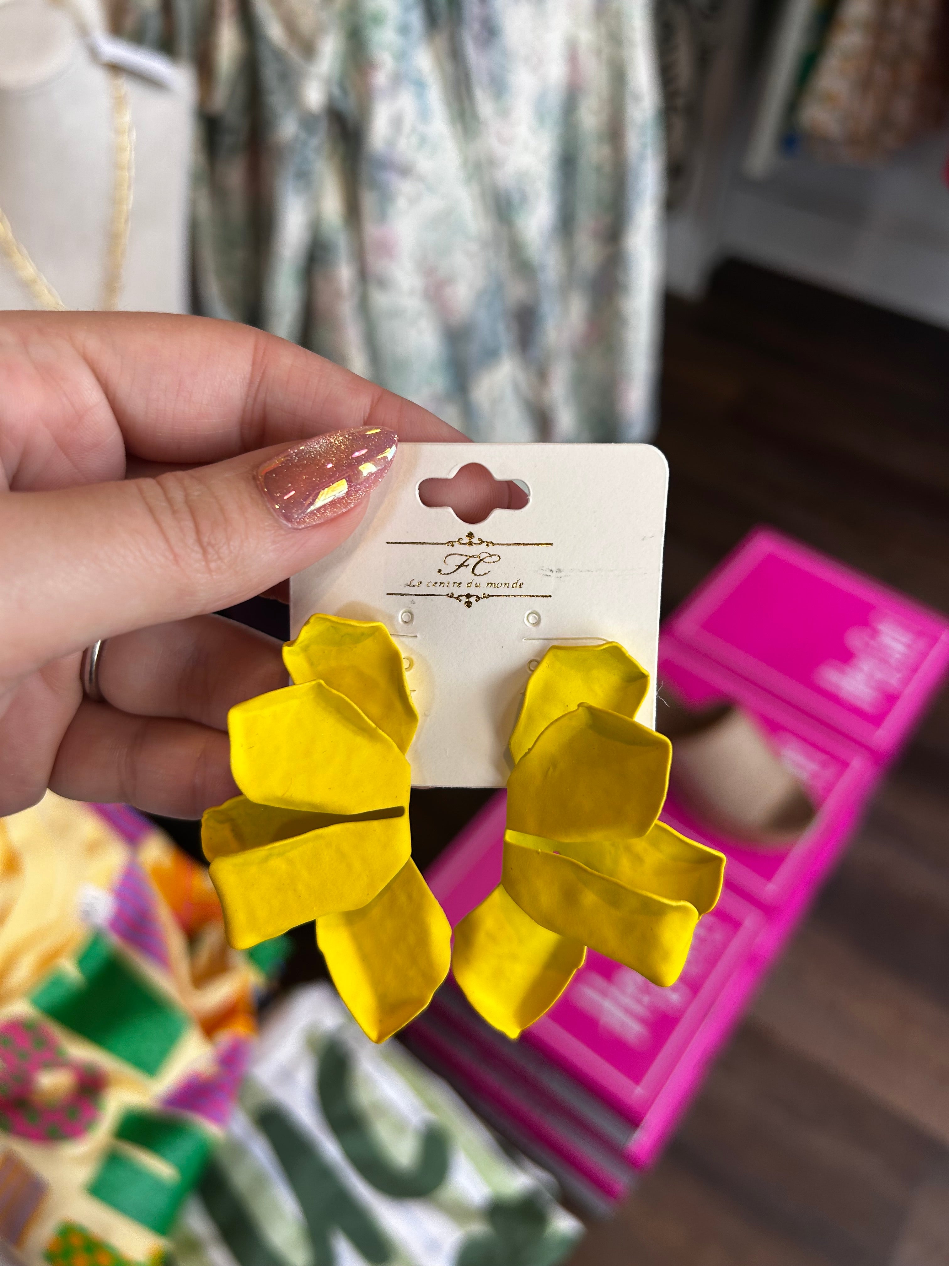 Yellow Half Flower Earrings