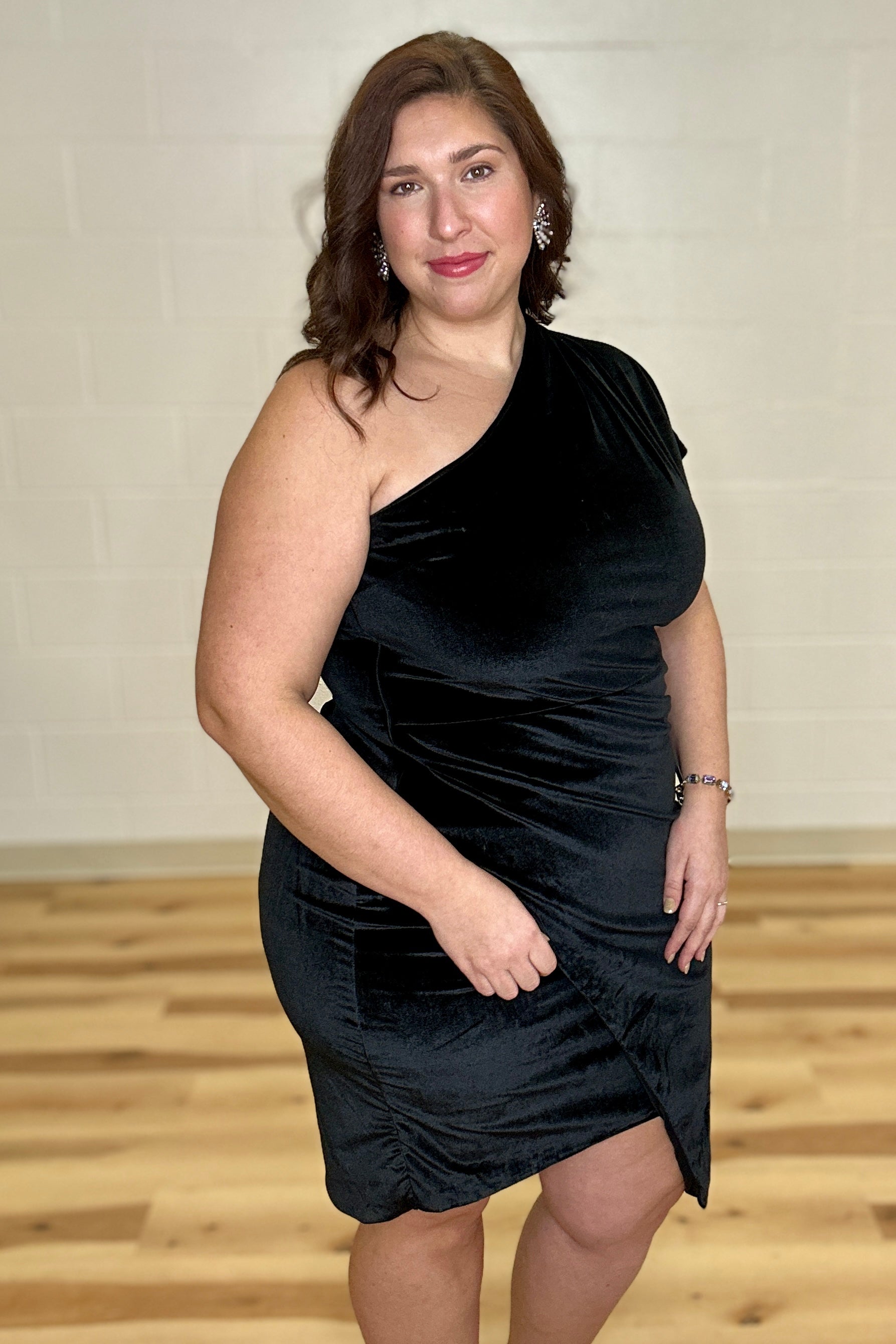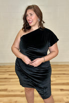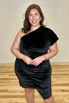 Black One-Shoulder Velvet Dress