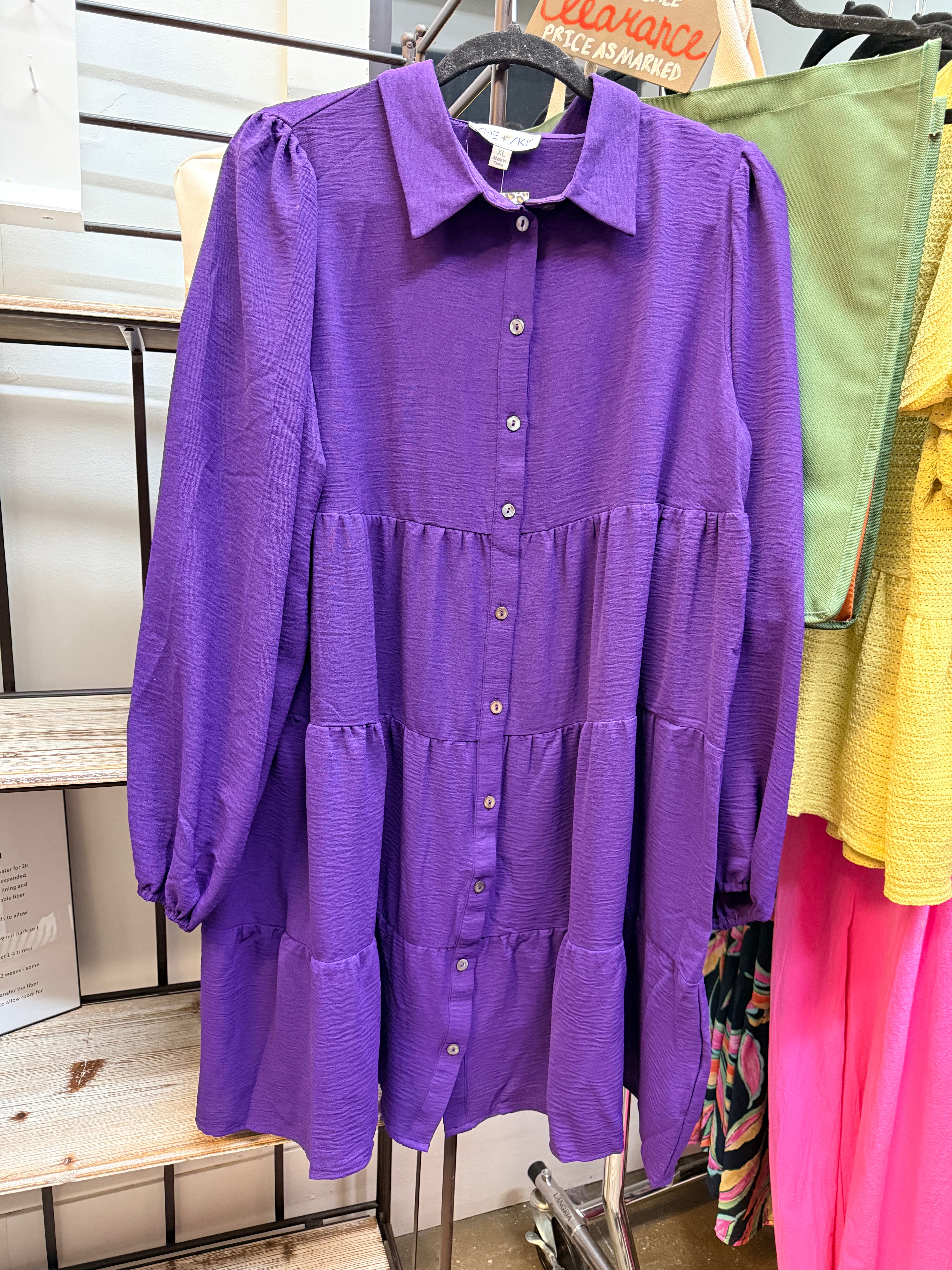 Elevate your wardrobe with this sophisticated long sleeve woven button-down tiered dress from She+Sky. Featuring a classic collar and a flattering tiered silhouette, it offers effortless elegance and refined style. The woven fabric ensures comfort and a polished look, perfect for both professional settings and upscale occasions. This dress combines timeless design with modern details, making it a versatile addition to any wardrobe seeking understated sophistication.