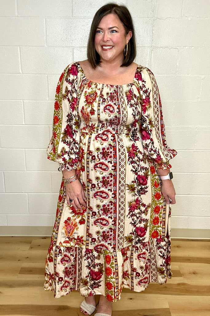 Floral Boho Smocked Puff Sleeve Maxi Dress
