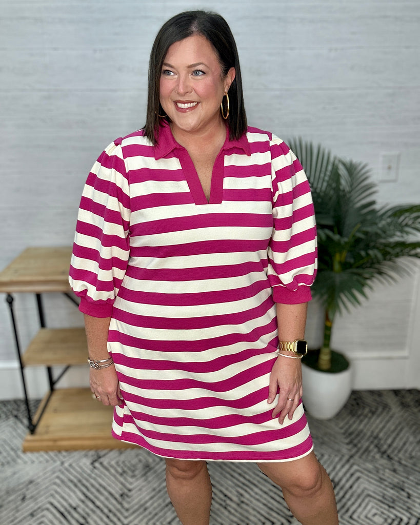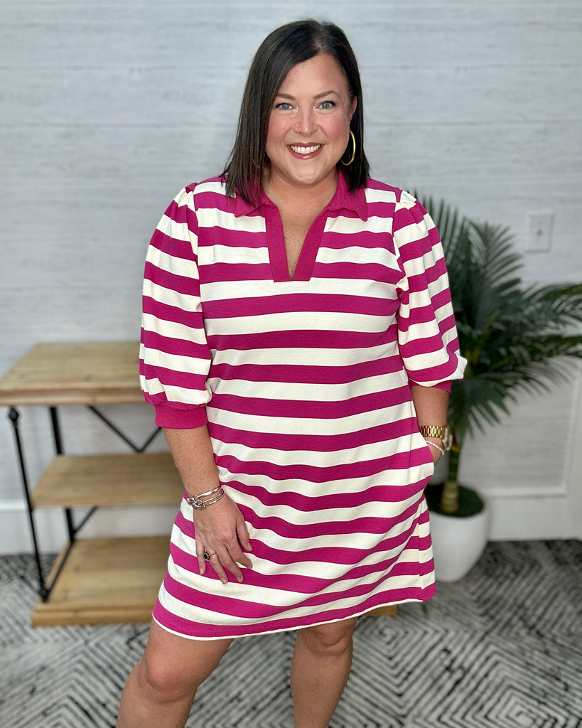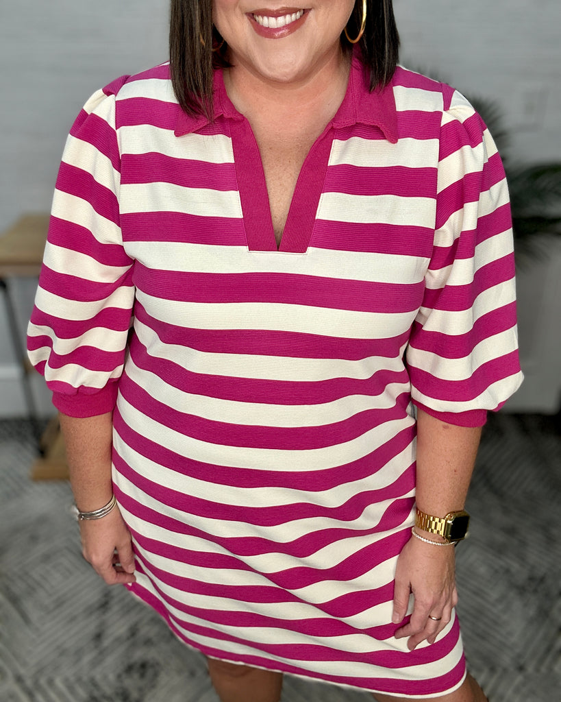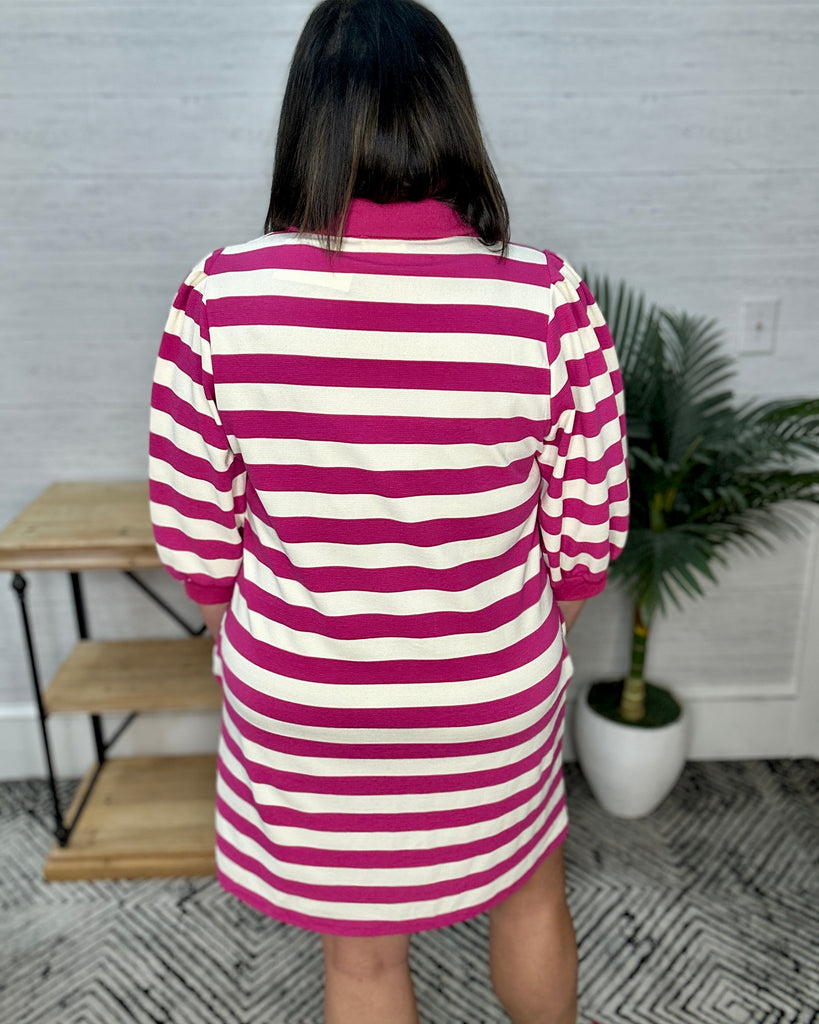 Hot Pink Stripe Collared Dress