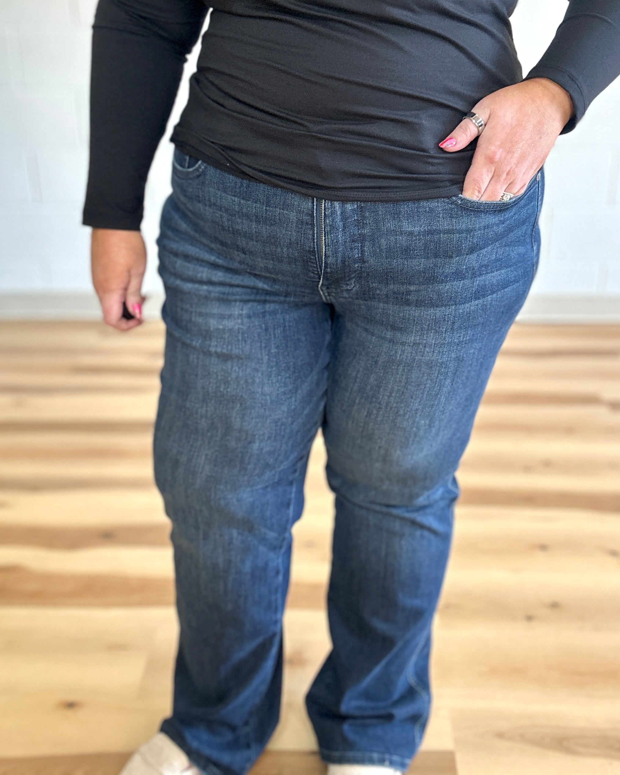 Elevate your denim wardrobe with Judy Blue Mid-Rise Straight Leg Jeans. These jeans feature tummy control for a flattering and comfortable fit, all while maintaining a classic look. Embrace your curves and exude confidence in these stylish must-haves from Judy Blue.
