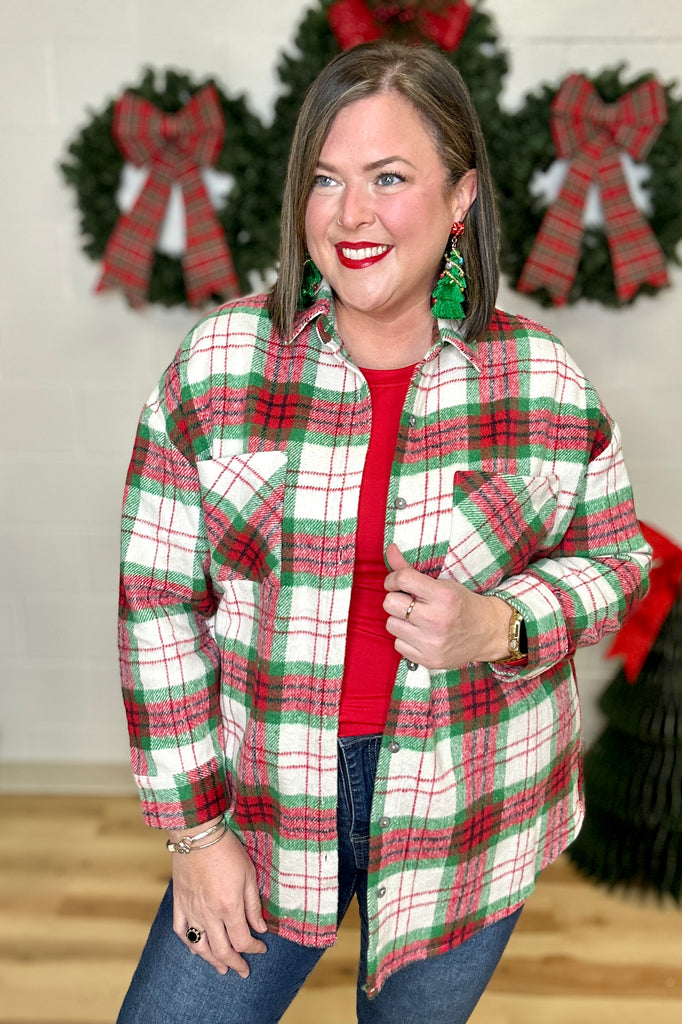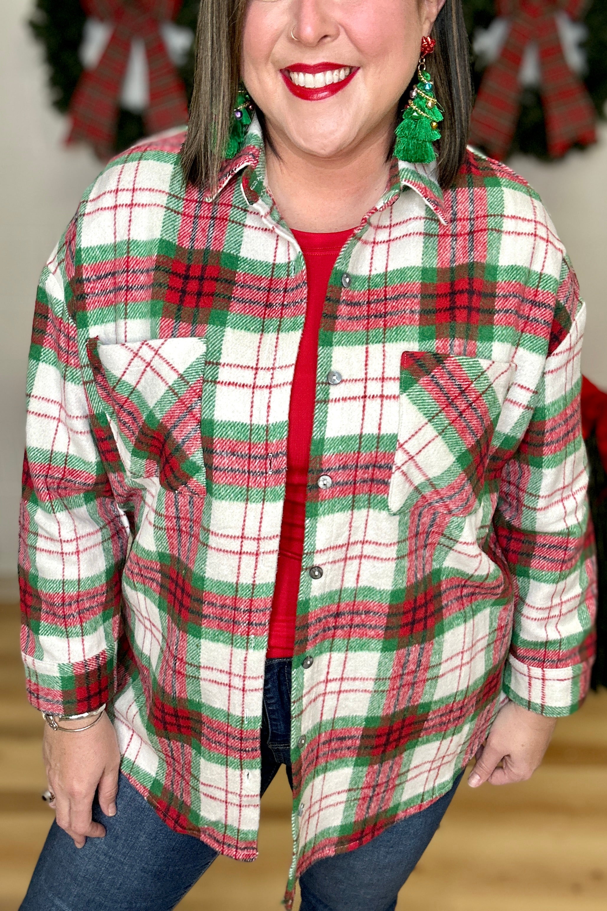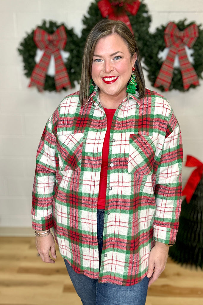 This long sleeve button-down plaid shacket from She+Sky combines style and comfort effortlessly. Featuring convenient front pockets, it’s perfect for layering on cooler days while keeping essentials close. The classic plaid pattern adds timeless appeal, making it a versatile addition to your wardrobe that supports your everyday look with cozy practicality.