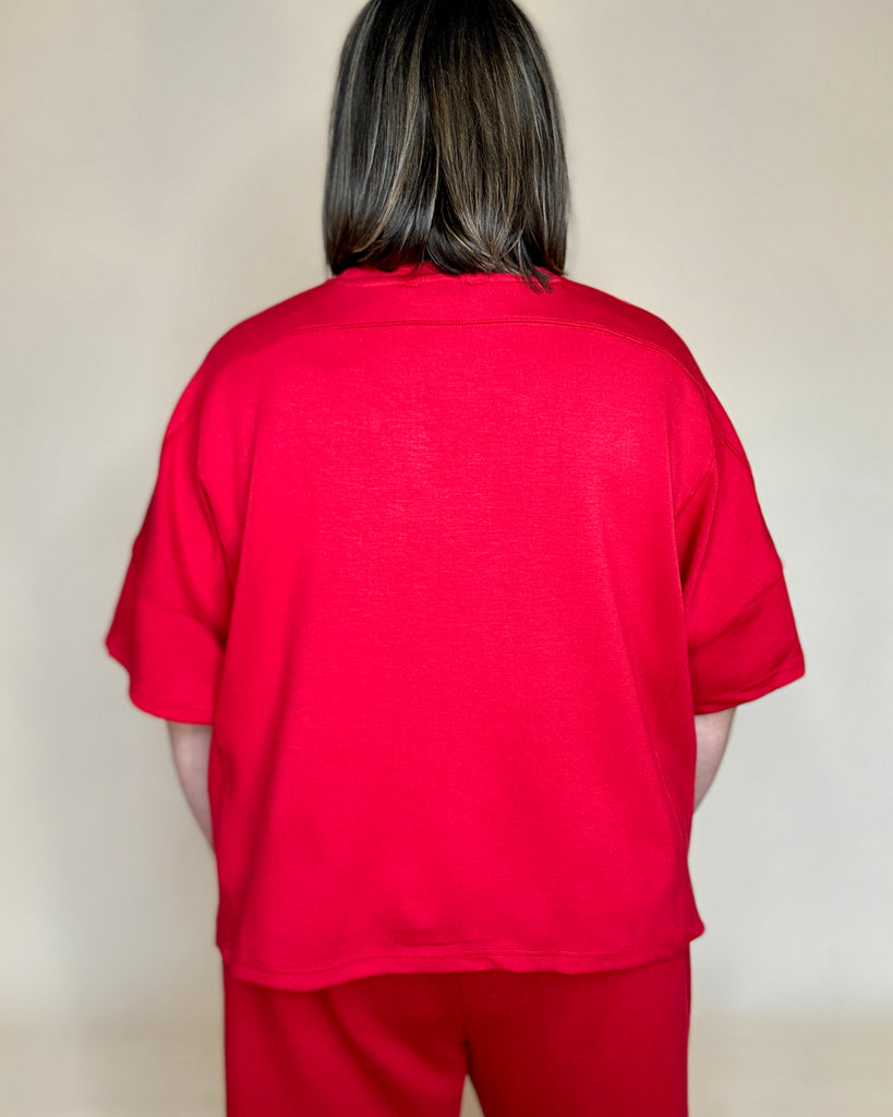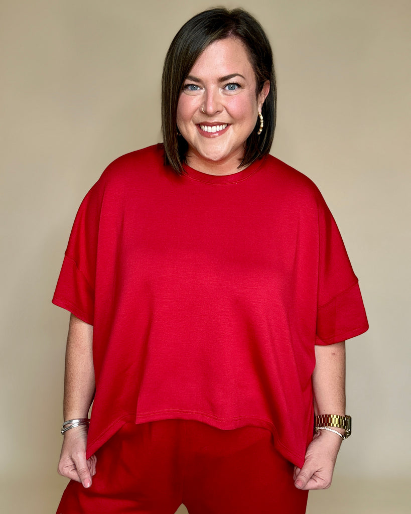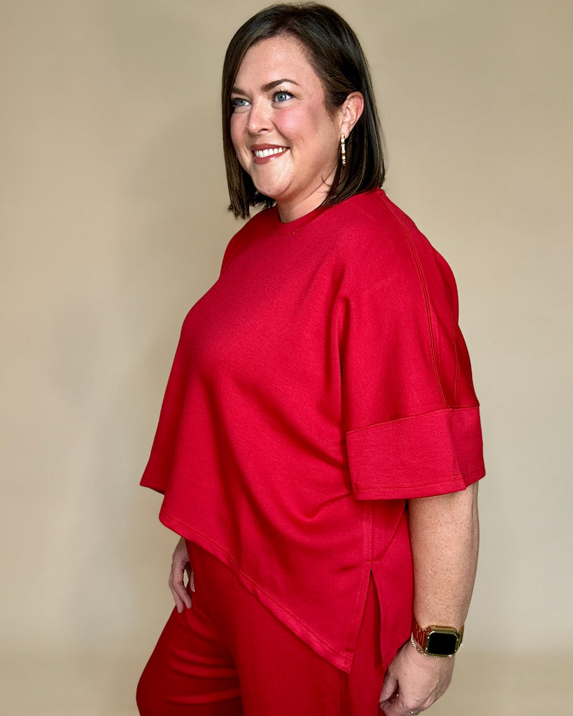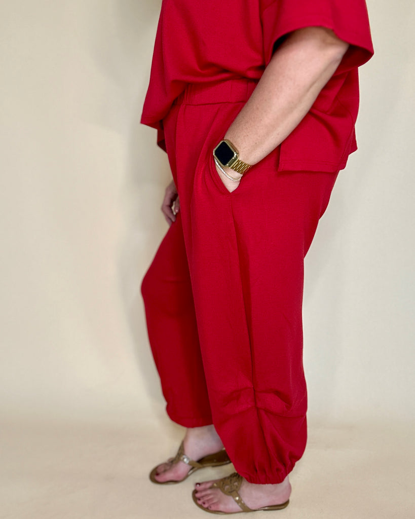 Experience effortless comfort and style with this Davi&Dani set featuring a solid round neck, dropped shoulder boxy fit top paired with jogger-style pants that have an elastic waist and banded hem. The oversized top offers breathable movement while the pants provide relaxed wearability, making this ensemble perfect for both casual outings and laid-back days. Crafted to balance comfort with modern design, it’s an ideal choice for those seeking versatile wardrobe staples.