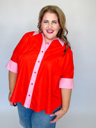 Effortless style meets everyday comfort with this casual short sleeve top. The sharp pointed collar with contrast trim adds a polished touch, while the front button closure and buttoned cuffs keep things put-together. Crafted from lightweight woven fabric that's non-sheer and unlined, it's perfect for layering or wearing solo. A versatile wardrobe essential that works for casual outings or relaxed workdays.