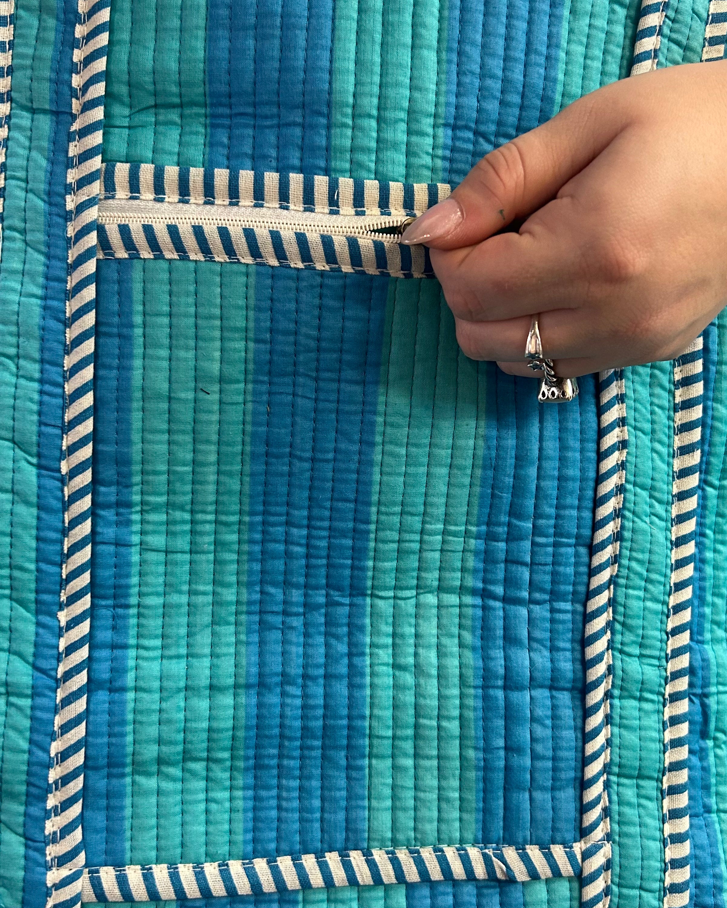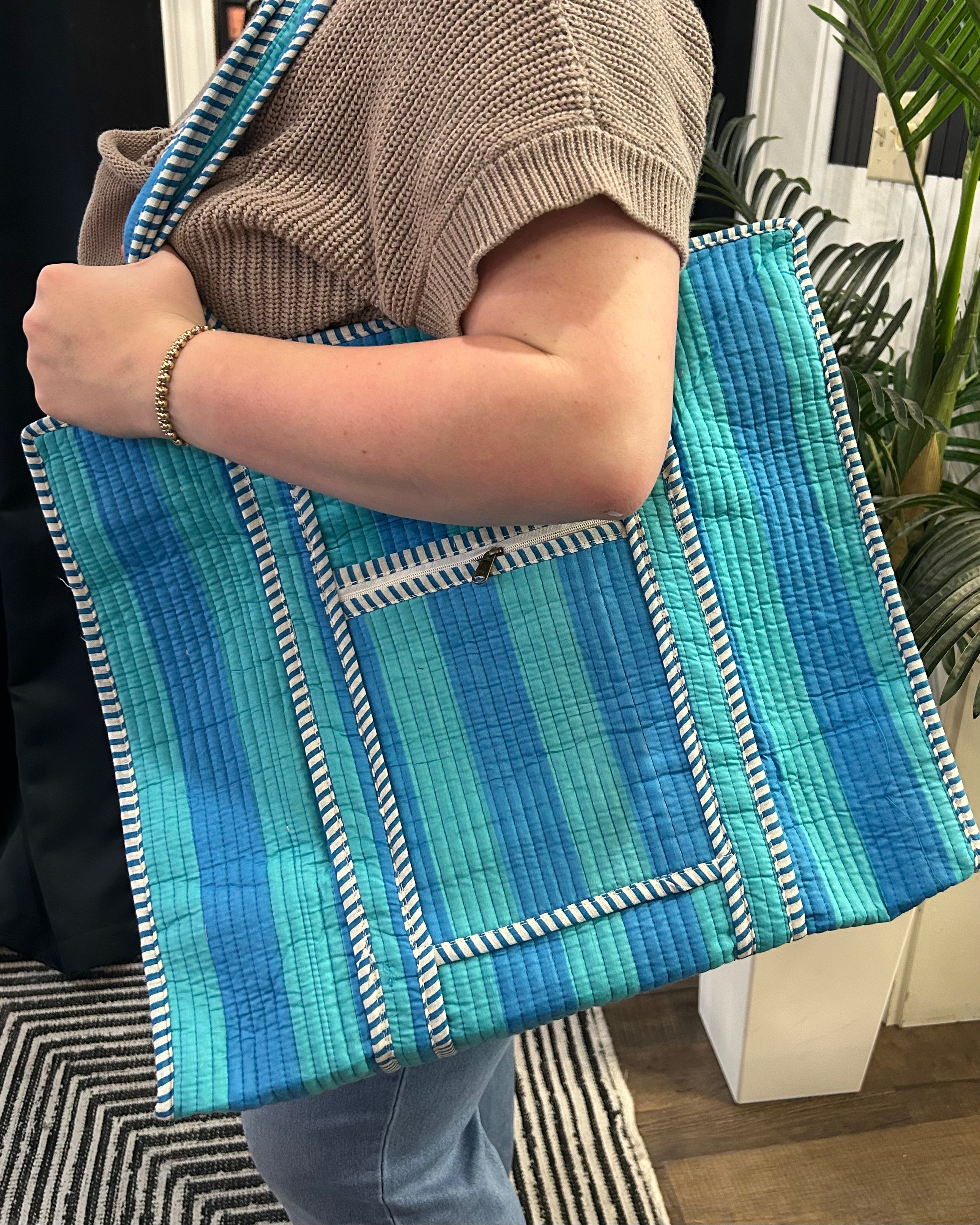 Blue Stripe Quilted Tote Bag