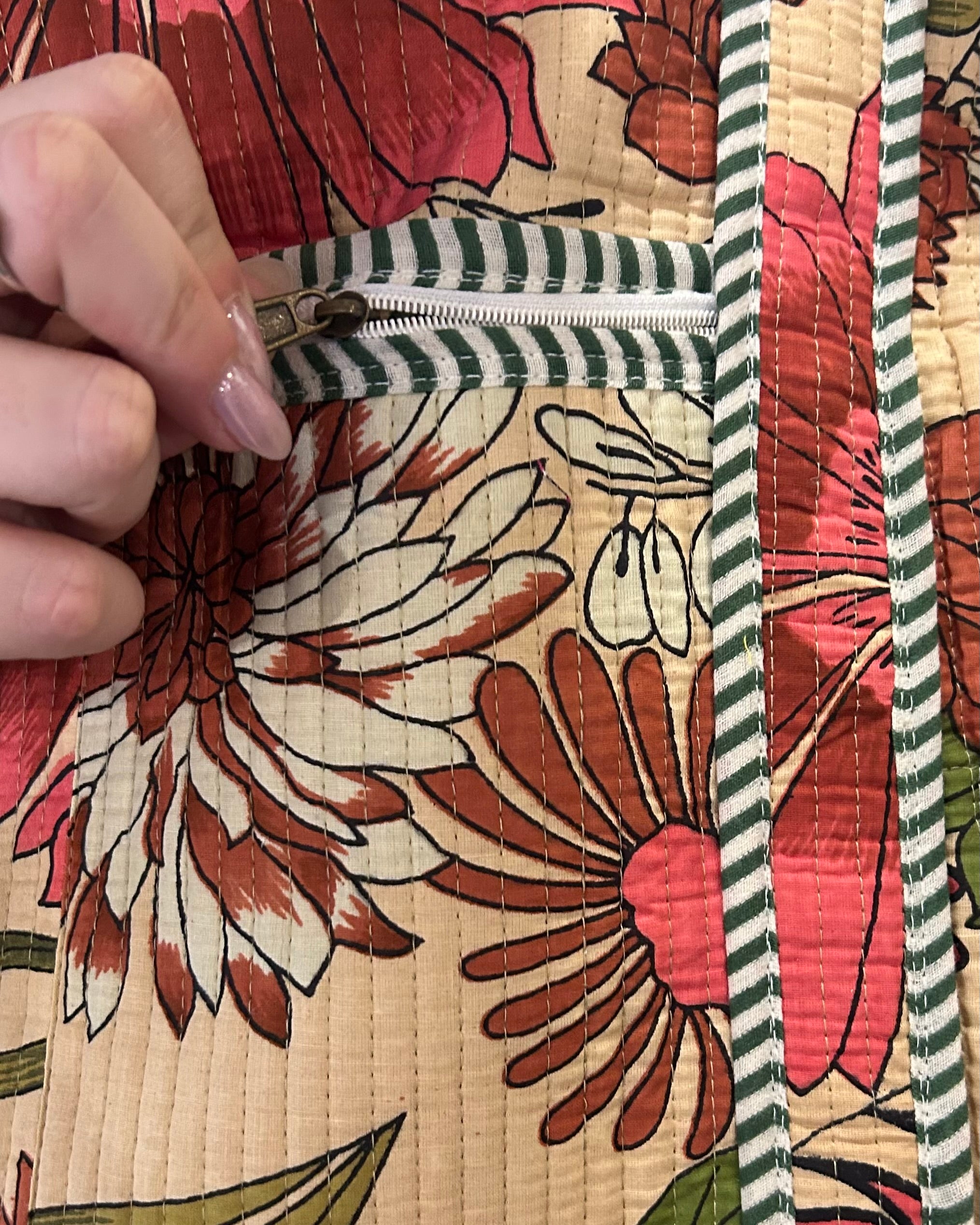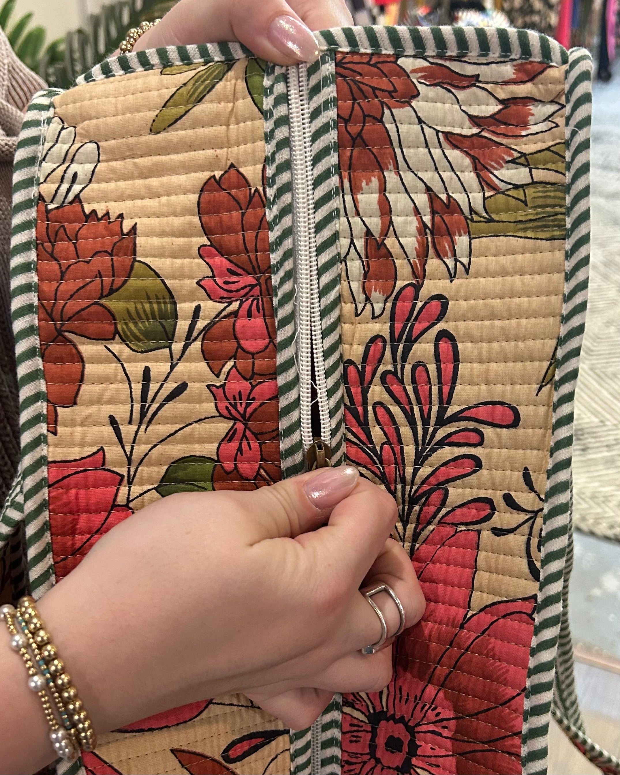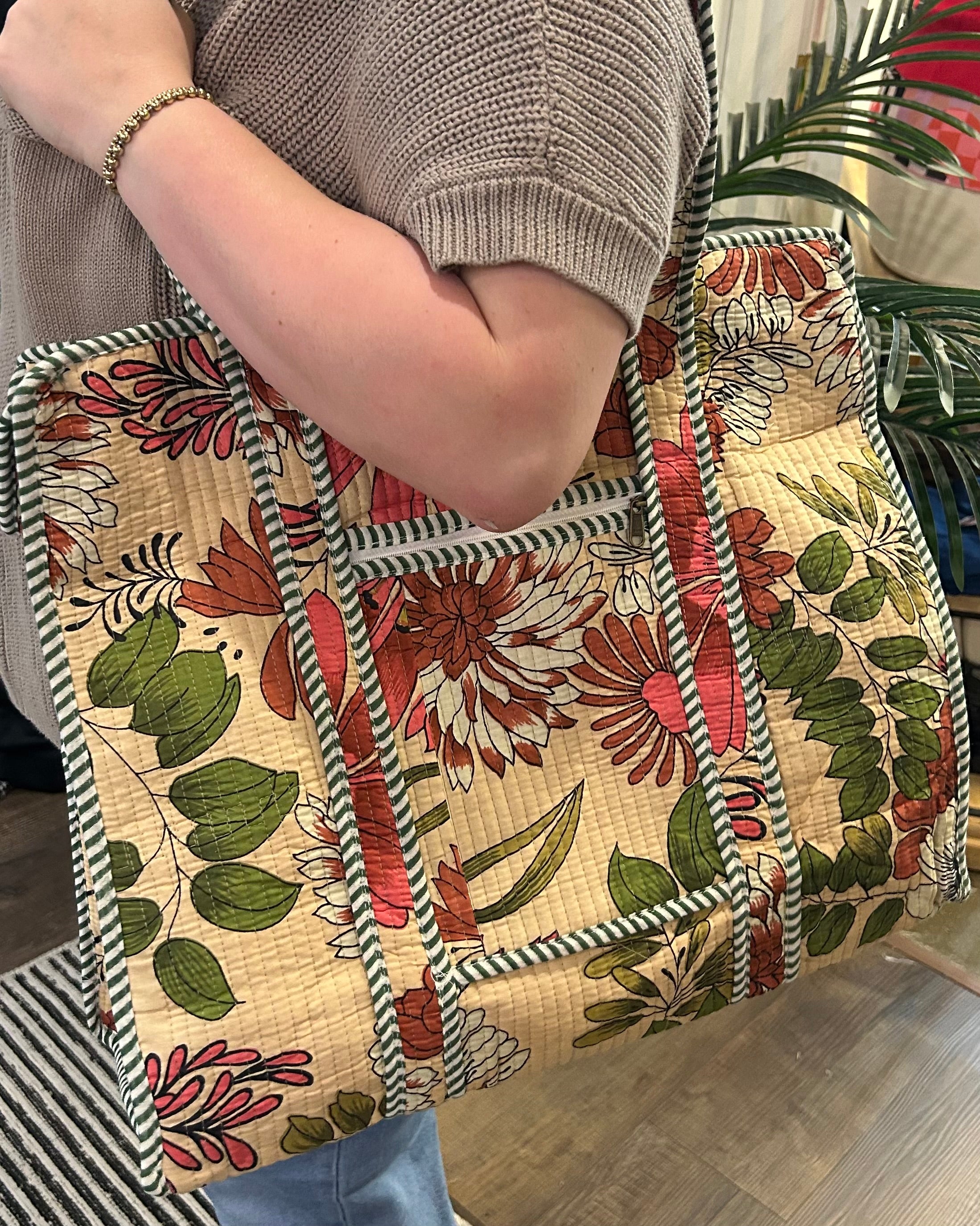 Ecru Floral Quilted Tote Bag