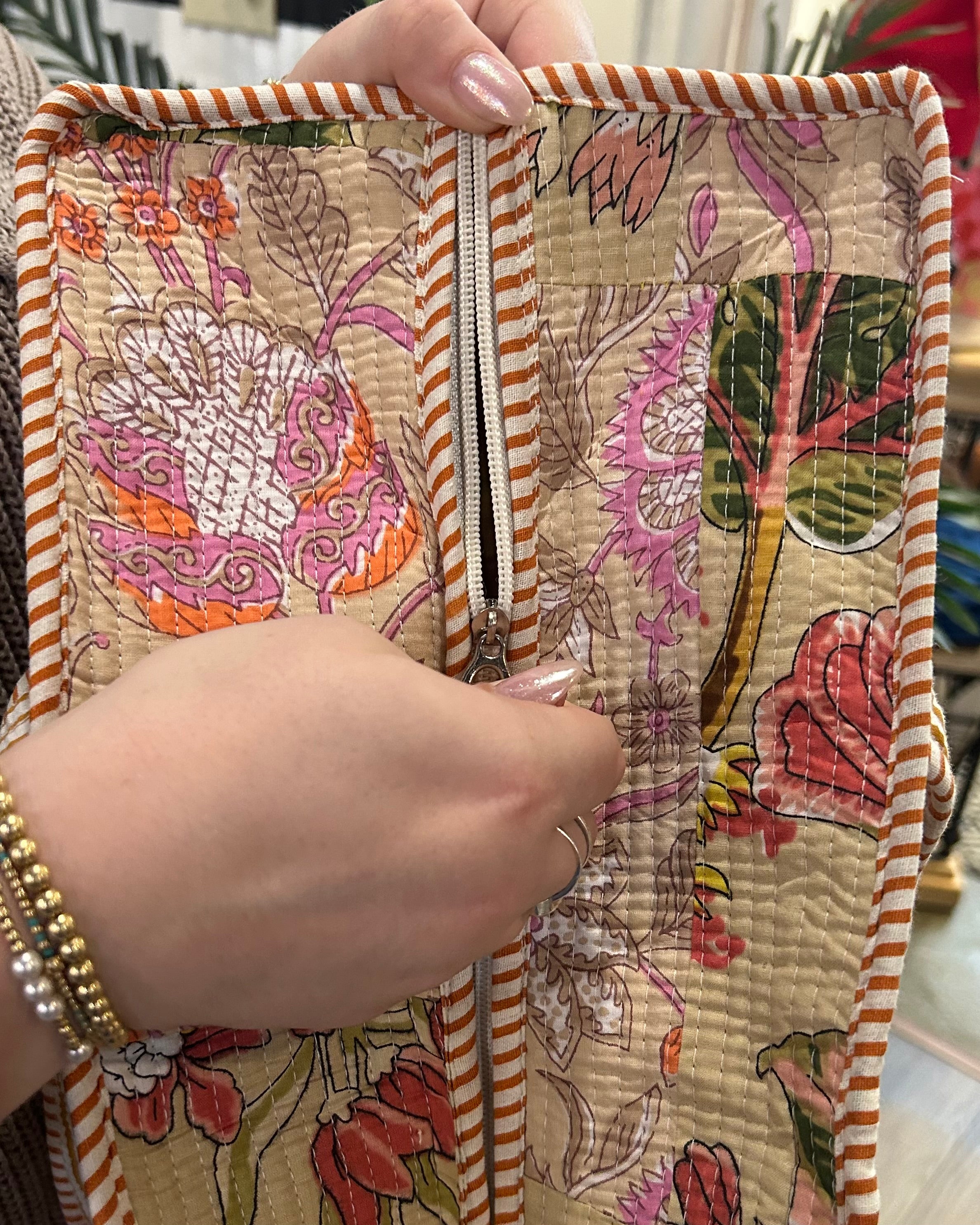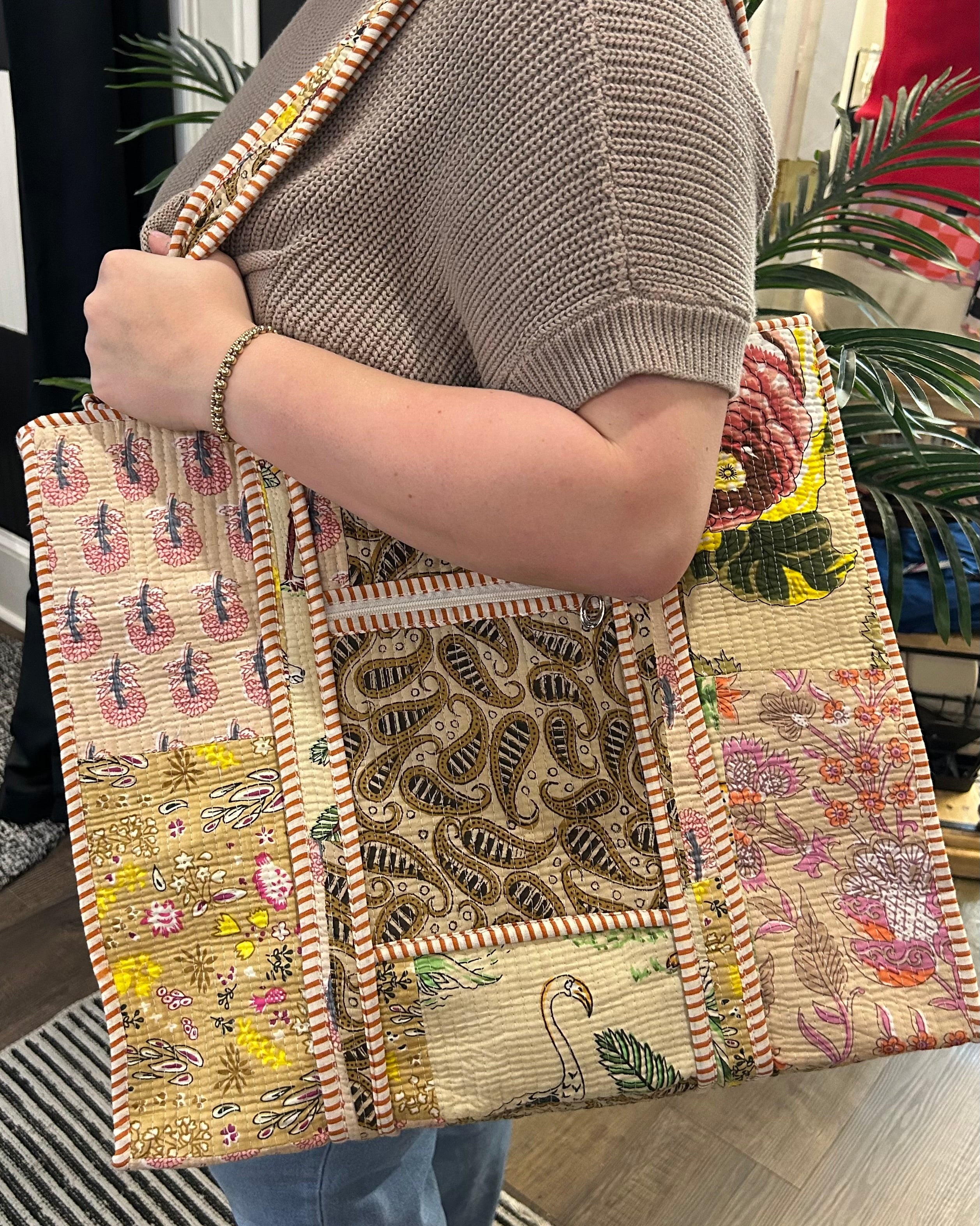 Discover the perfect gift—or treat yourself—with the Ecru & Pink Patchwork Quilted Tote Bag. This beautifully crafted accessory combines artistic patchwork detailing in warm ecru and soft pink with practical design. Measuring 17.5" x 7" x 14.5", it offers generous capacity for work, travel, or everyday adventures. The secure zipper closure keeps your belongings safe while the quilted construction ensures lasting durability. Whether you're looking for a sophisticated everyday bag or a standout gift, this tote delivers timeless style that complements any wardrobe and lifestyle.