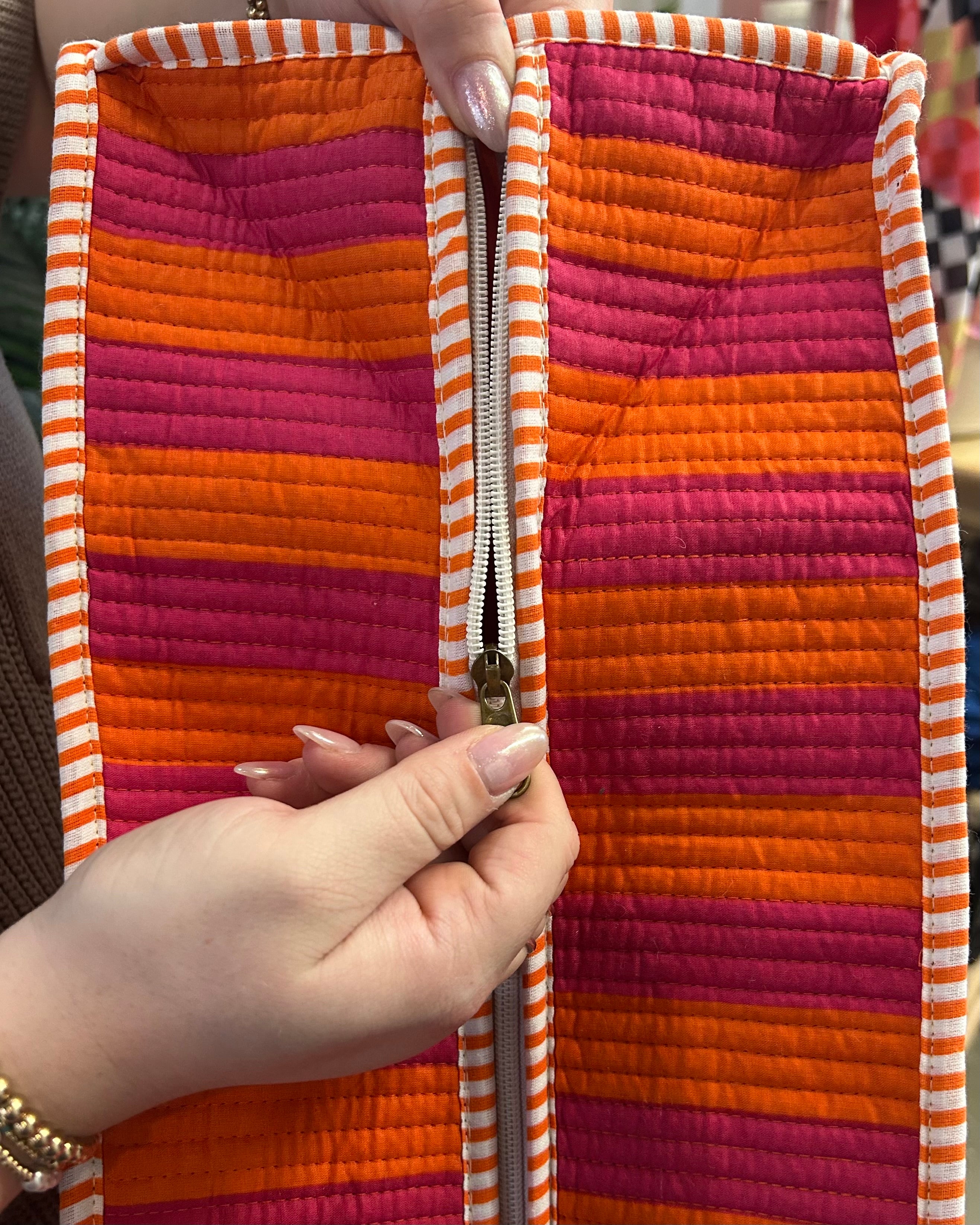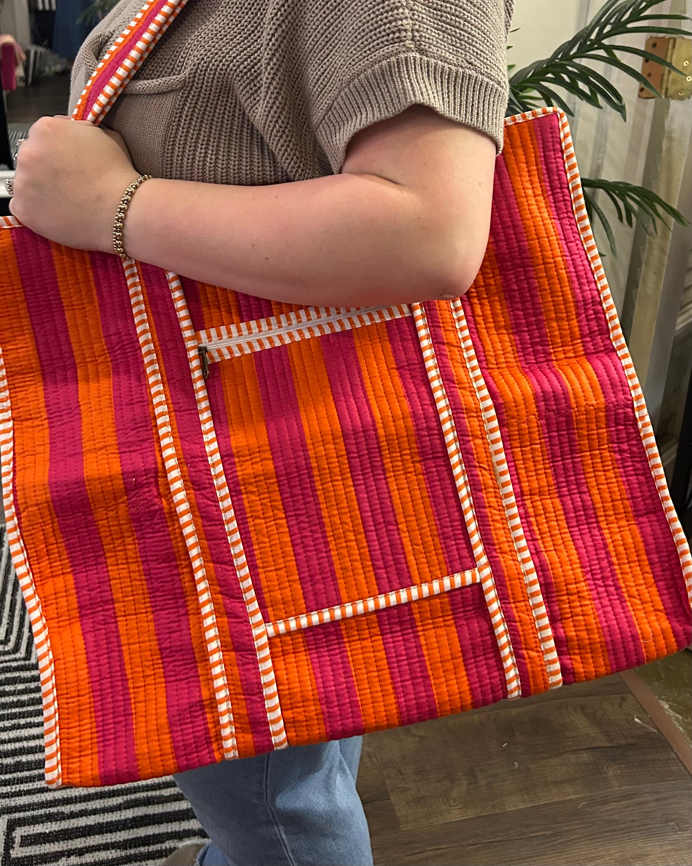 Fuchsia & Orange Stripe Quilted Tote Bag