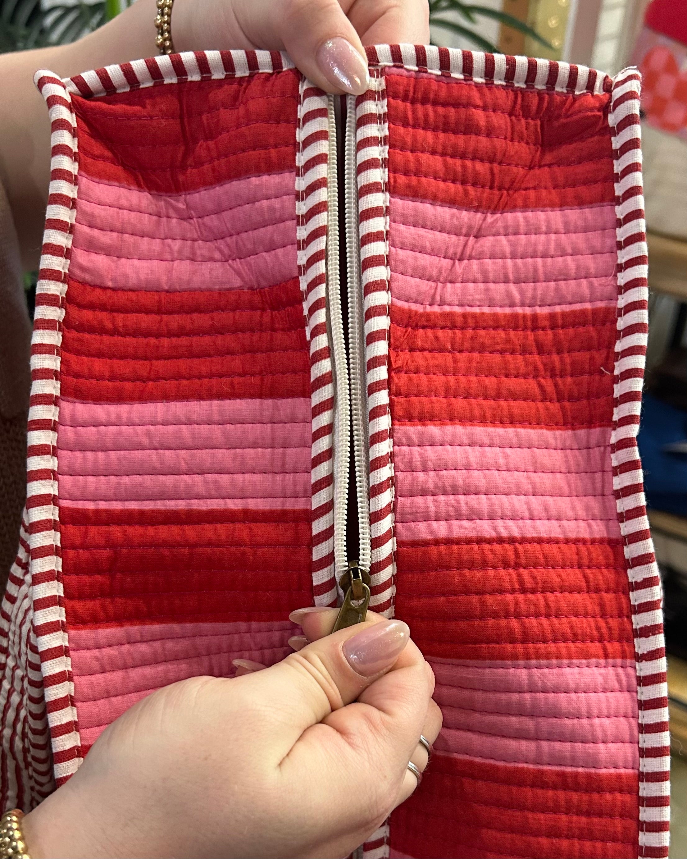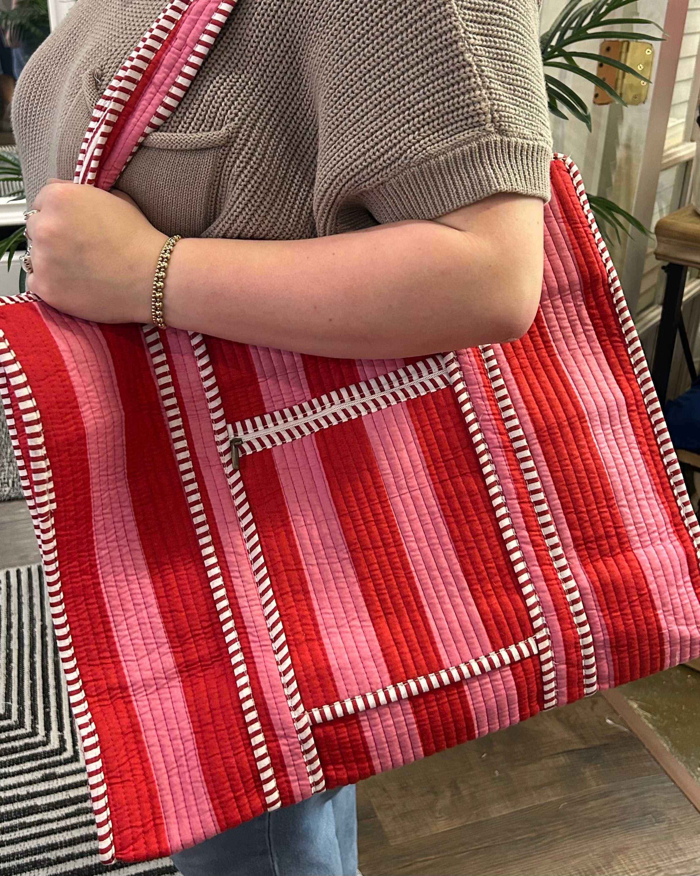 Pink & Red Stripe Quilted Tote Bag
