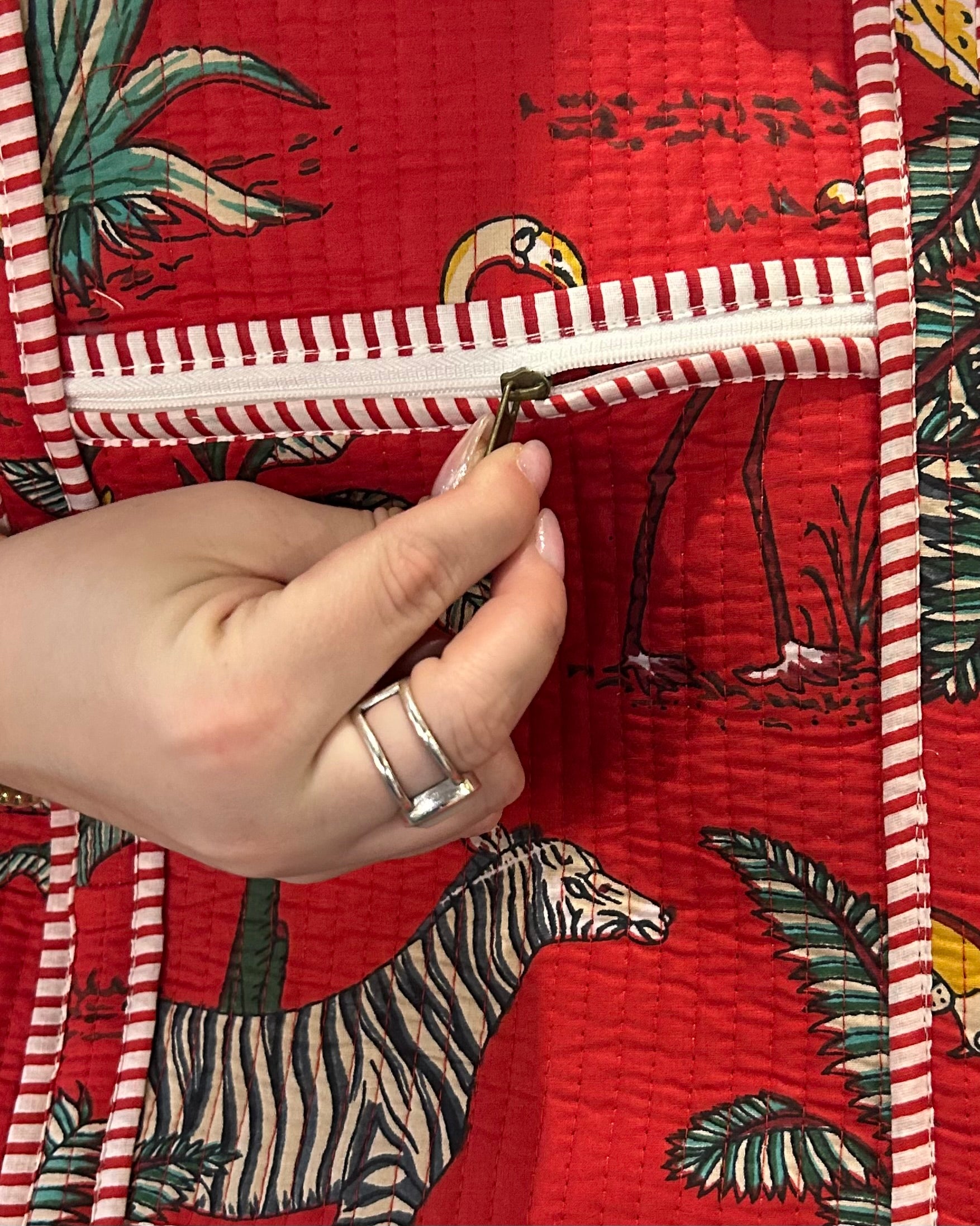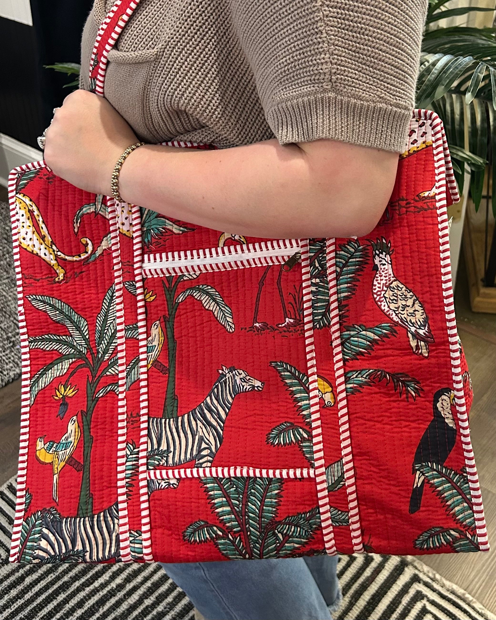 Red Safari Quilted Tote Bag