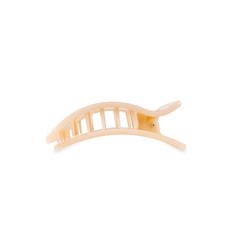 Lean back and relax - comfort just got a new shape. Introducing the TELETIES Almond Beige Small Flat Rectangle Hair Clip, the newest addition to our best-selling Flat Clip Collection. Joining the original Round and Square styles, this elevated rectangular design offers the same flat-back comfort and stronghold TELETIES is known for - now with a sleek, modern style.