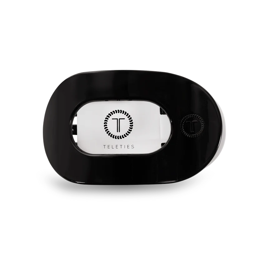 Lay flat and relax with the new TELETIES Jet Black Small Flat Round Hair Clip in Black. This hair clip is designed to allow you to lay back flat, do yoga, or sit comfortably in a seat with a headrest, and it is made with the same material that is nearly unbreakable.