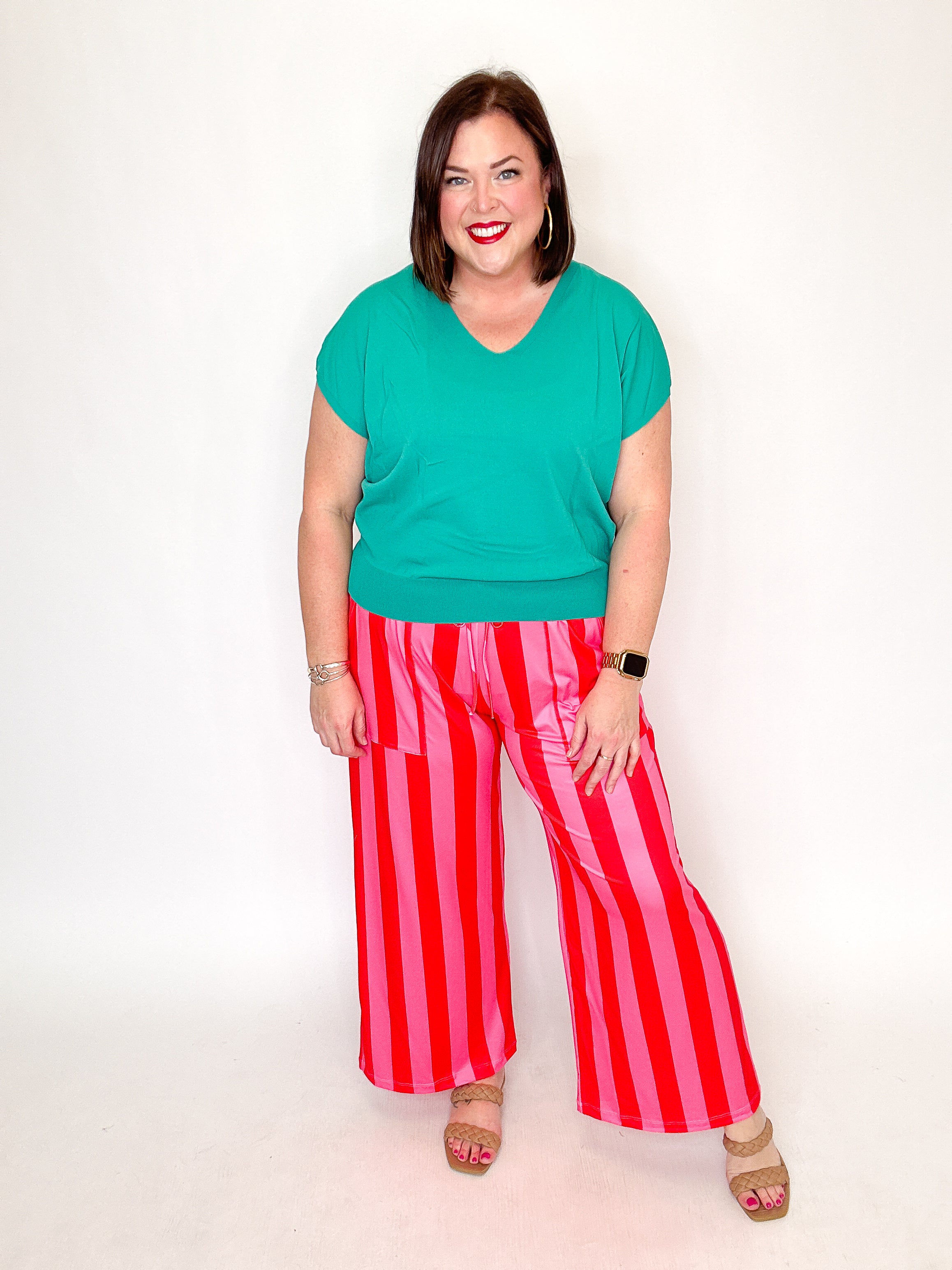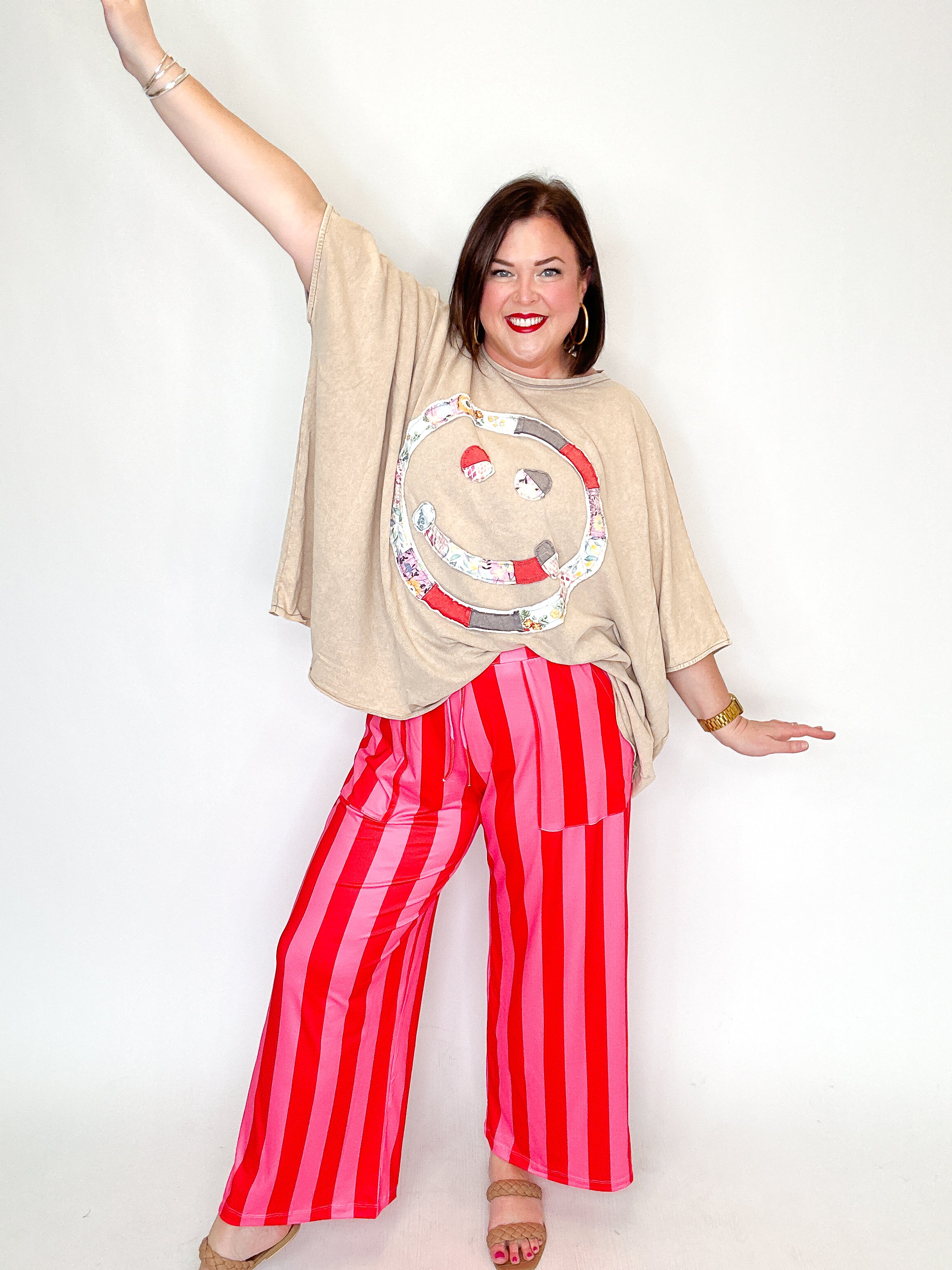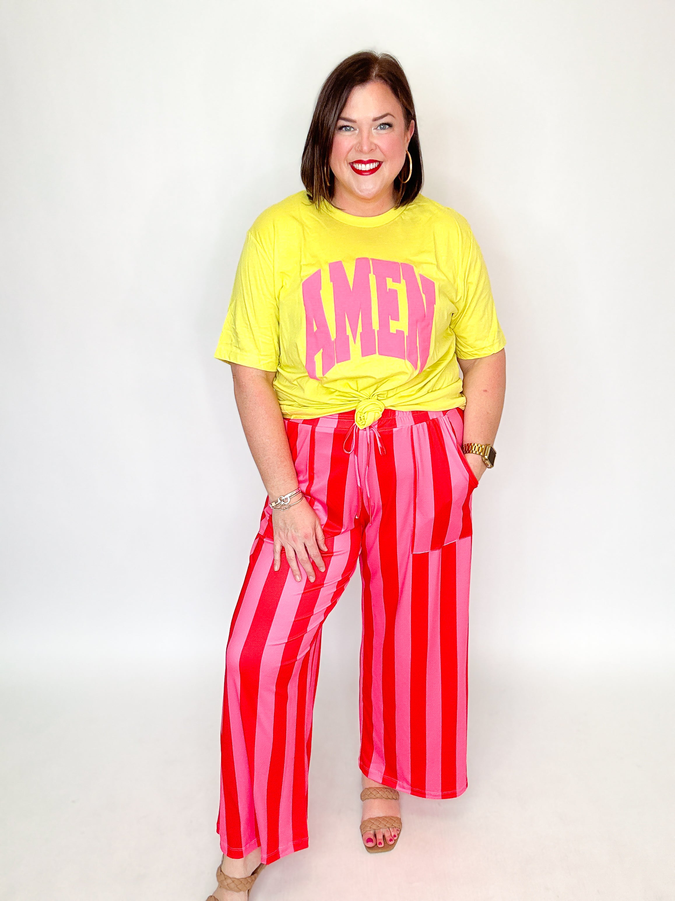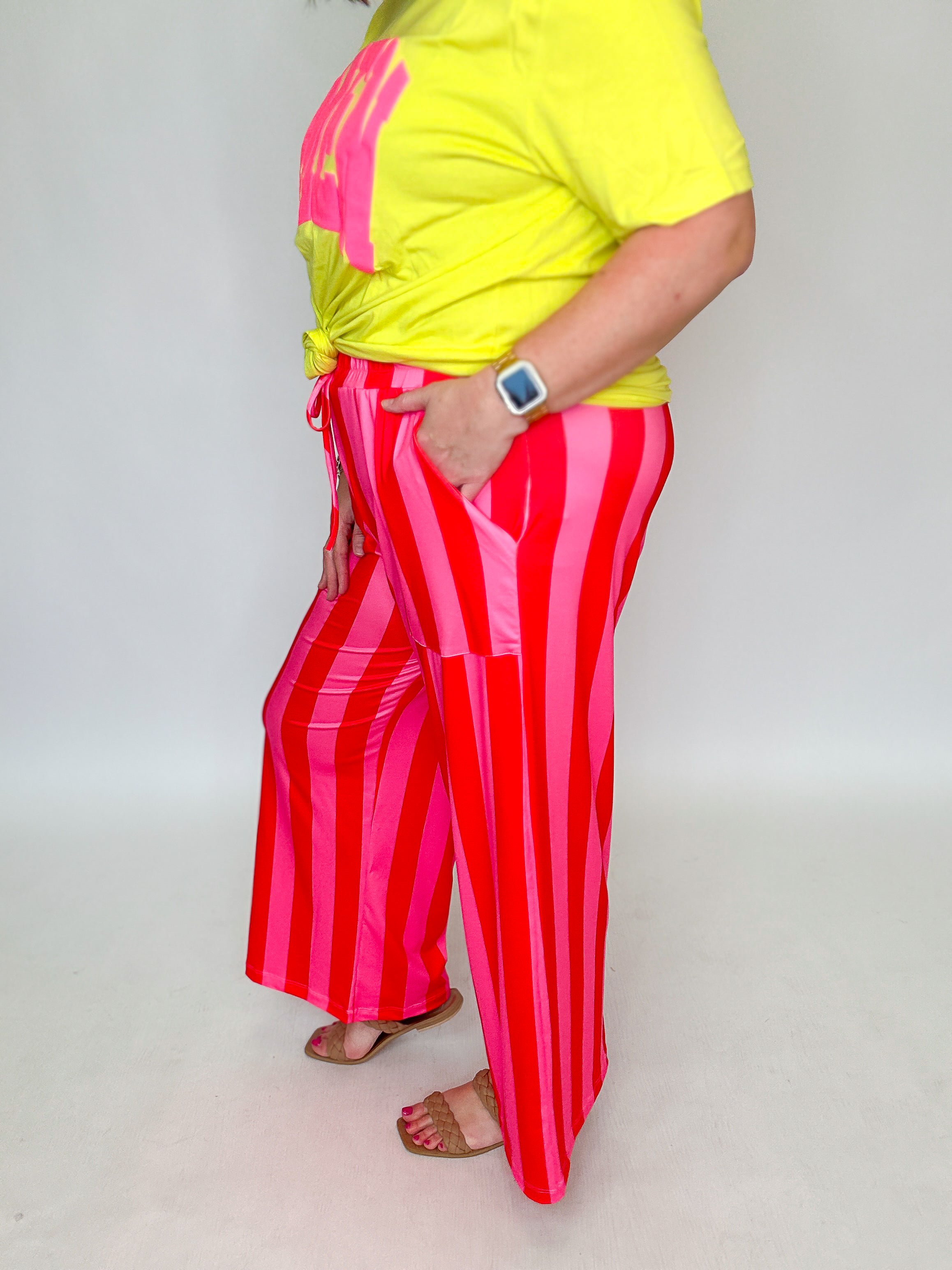 Pink & Red Stripe Wide Leg Pants