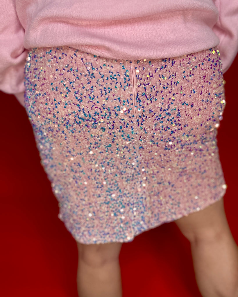 Sparkle and shine in this playful sequin skirt from She+Sky, featuring a sleek back zipper for an easy, comfy fit. Perfect for turning heads at any party, its shimmering sequins catch the light with every step, making celebrations even more fun. Add some flair to your outfit and dance the night away in style!