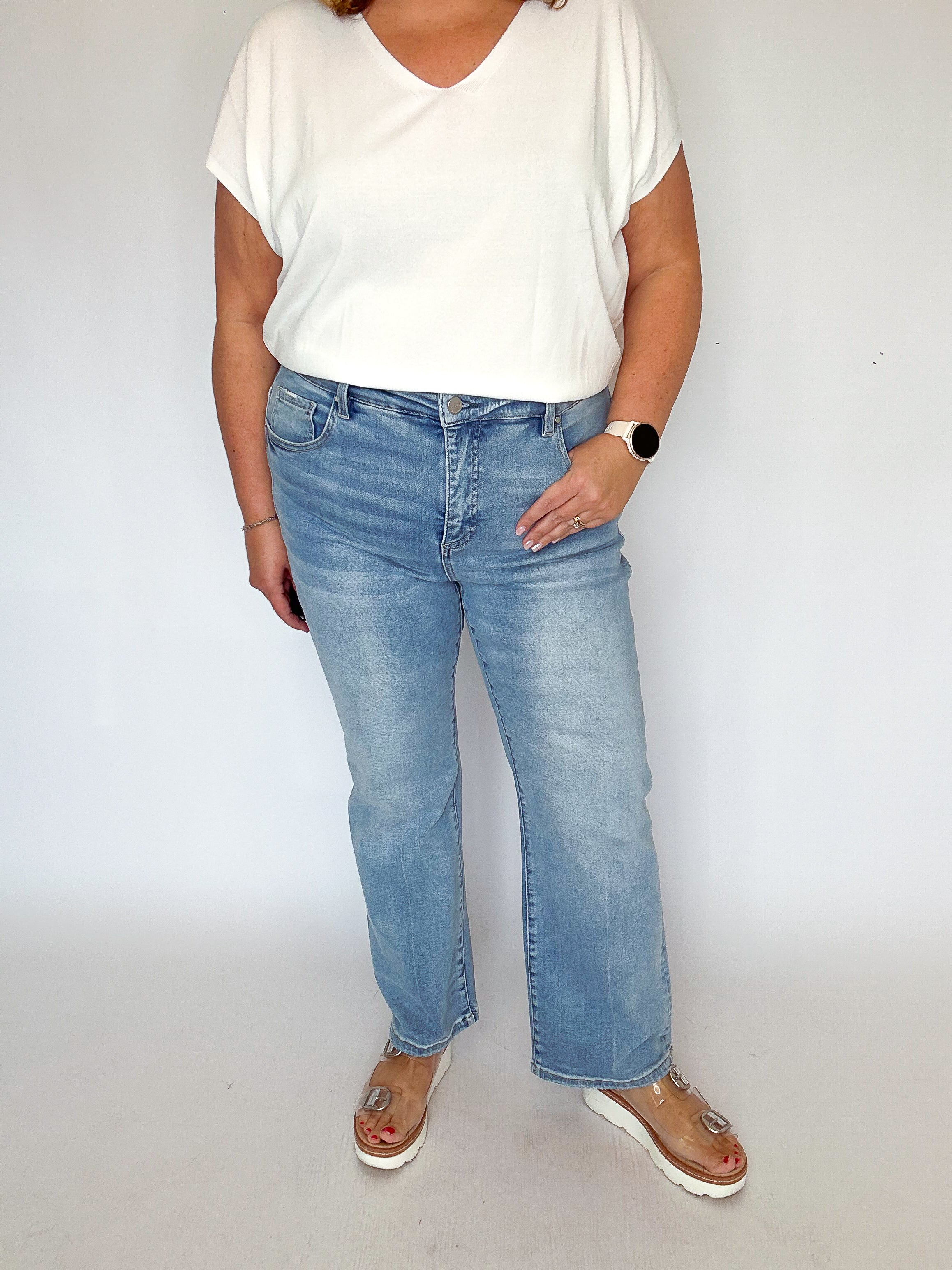Risen Tummy Control Crop Straight Jeans