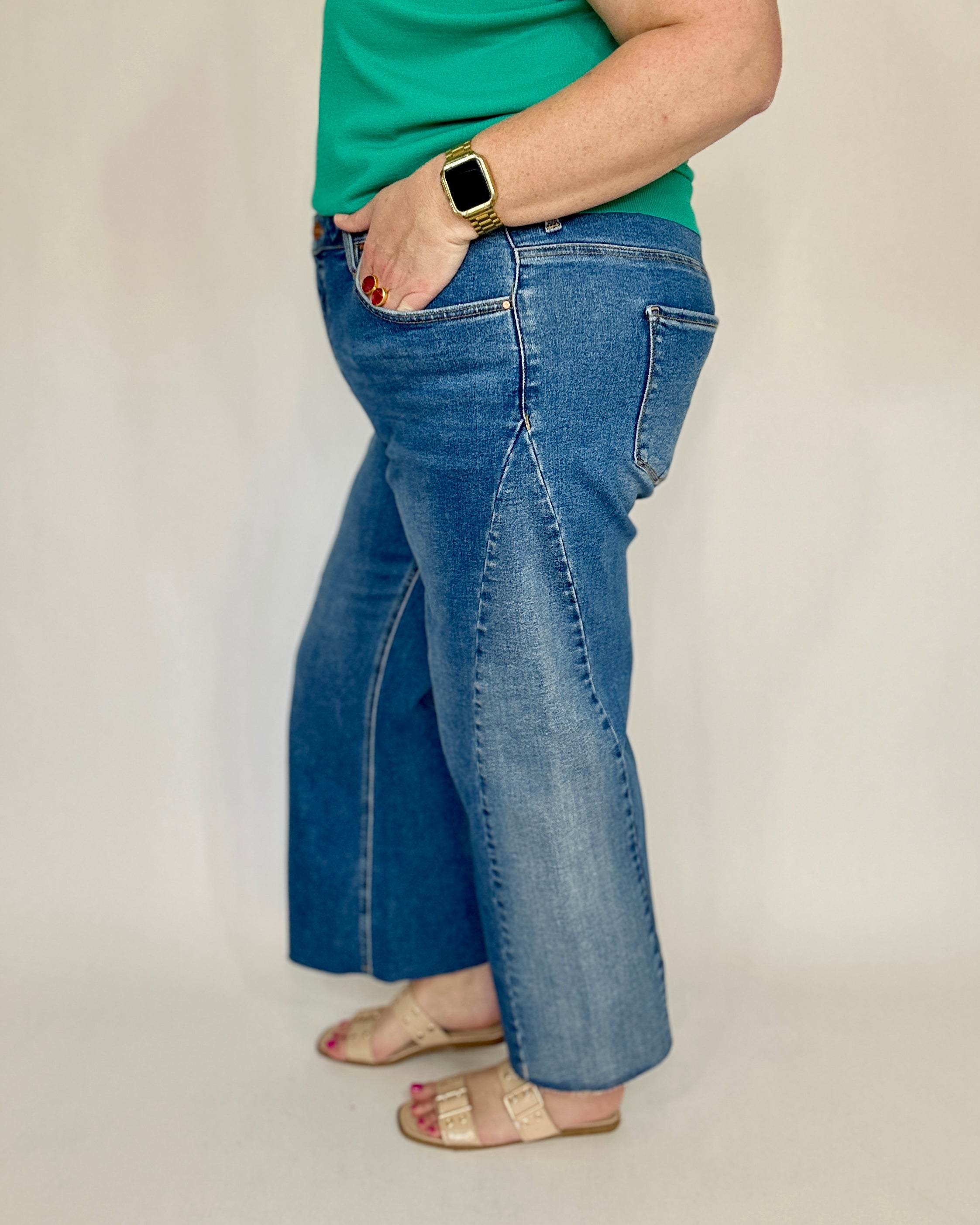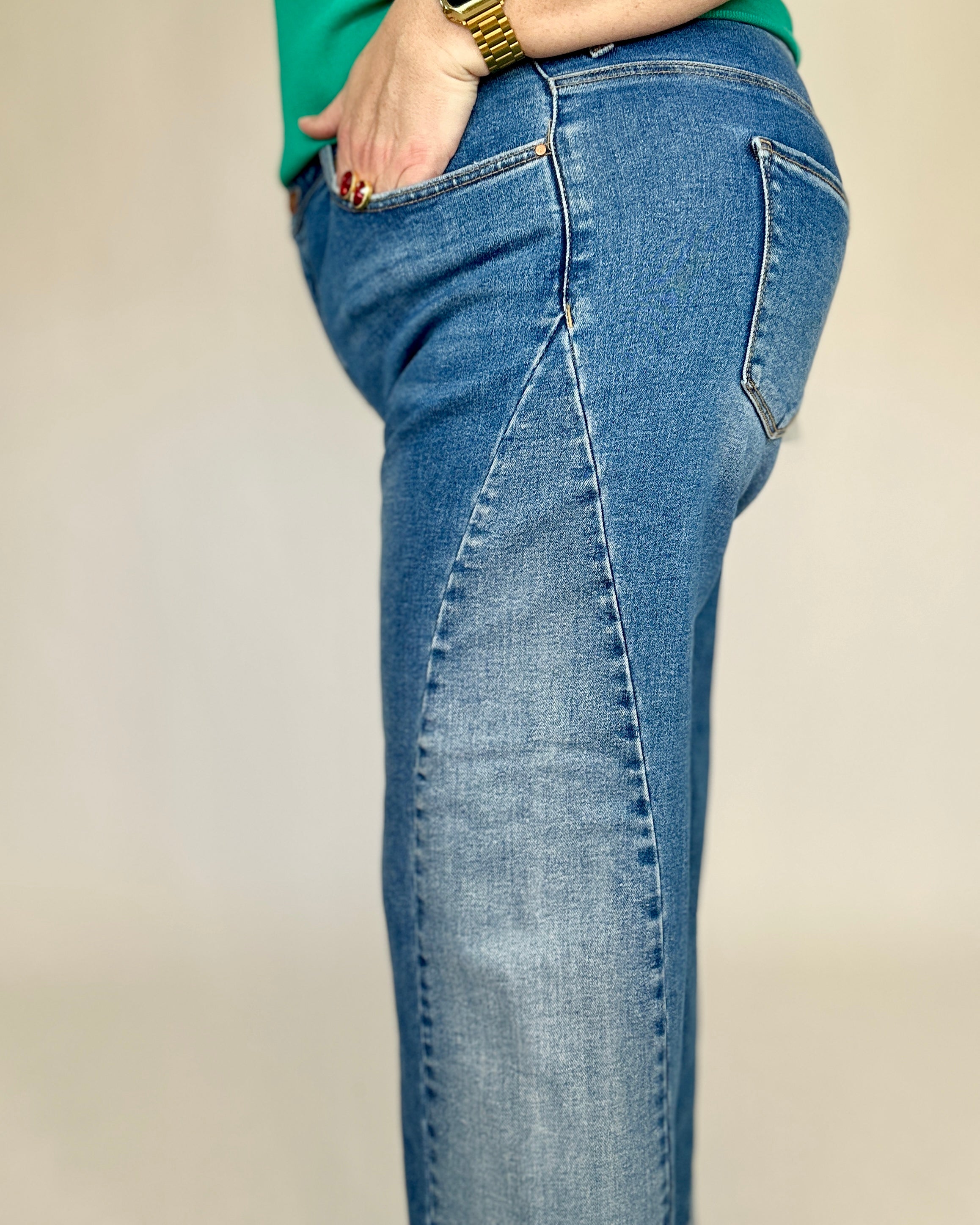 Risen Two-Tone Crop Barrel Jeans