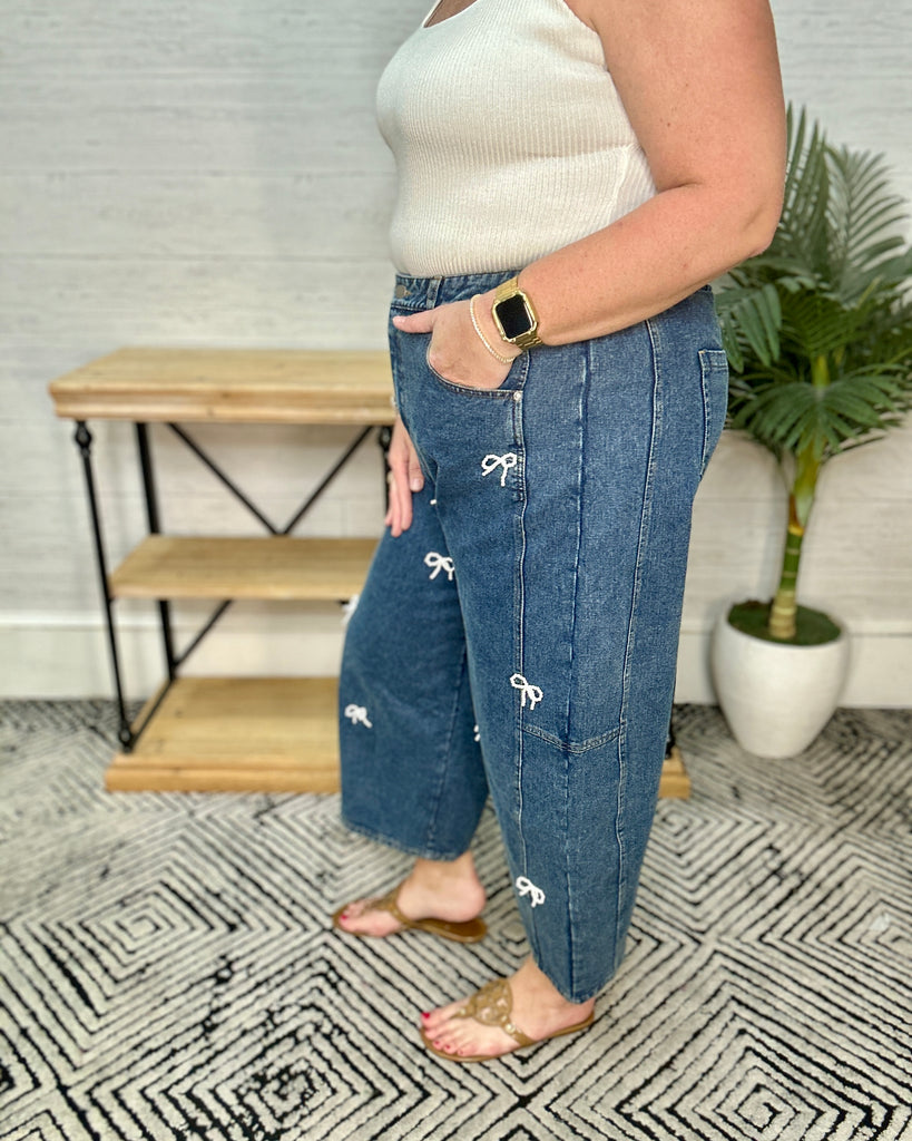These washed denim jeans from Oddi combine classic style with refined details. Featuring a delicate pearl ribbon trim, they add a subtle touch of elegance to everyday wear. The elastic back waist ensures a comfortable, flexible fit that adapts to your body for all-day ease. Perfect for those seeking both sophistication and practicality in their denim collection.
