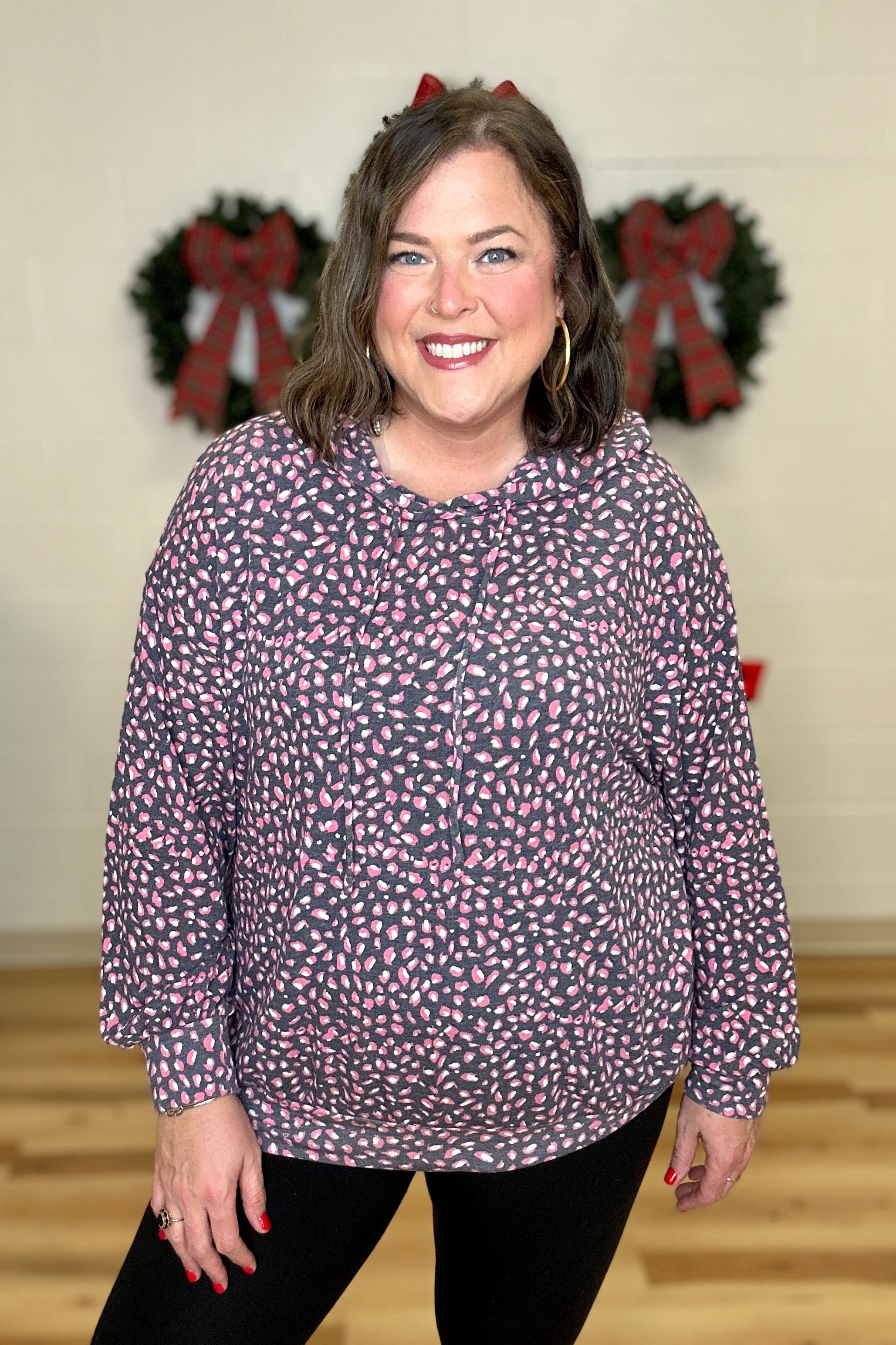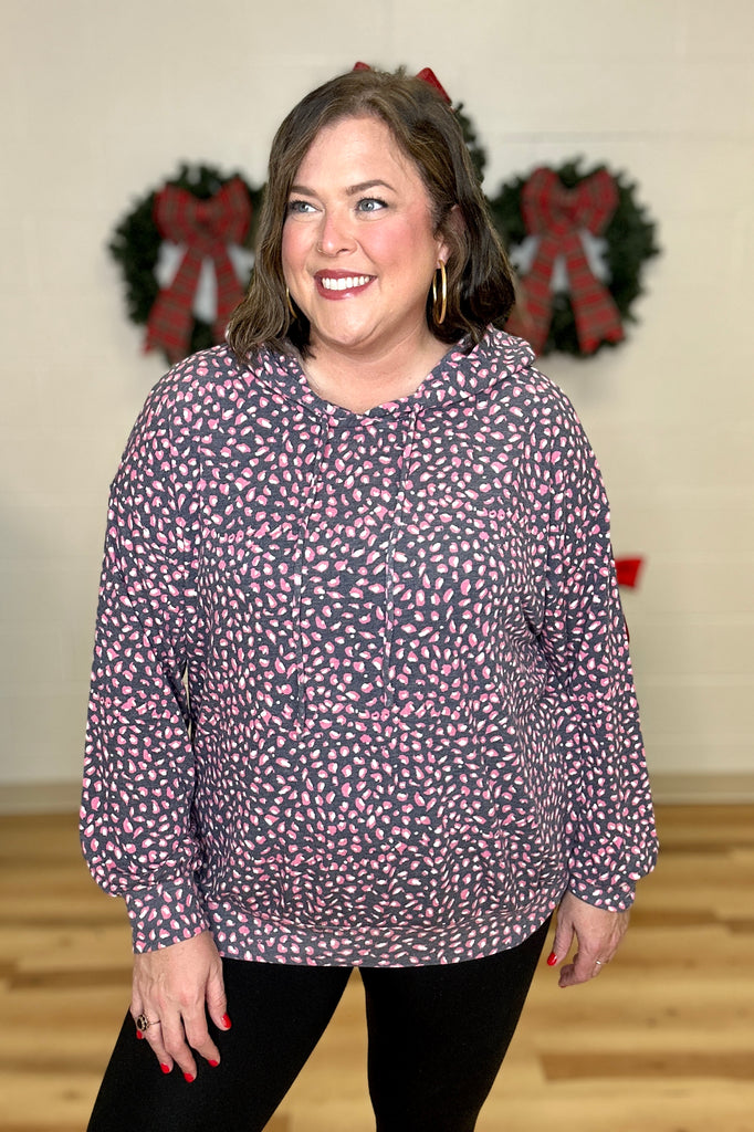 Stay cozy and stylish in this Charcoal Pink Hoodie, designed for effortless comfort with a relaxed fit and banded hem and sleeves. The double-layered hood with adjustable drawstrings adds a fun twist, while the stretchy knit fabric ensures easy movement. Perfect for those who love a playful look with a variety of prints, this hoodie by Dear Scarlett is your go-to for laid-back days.