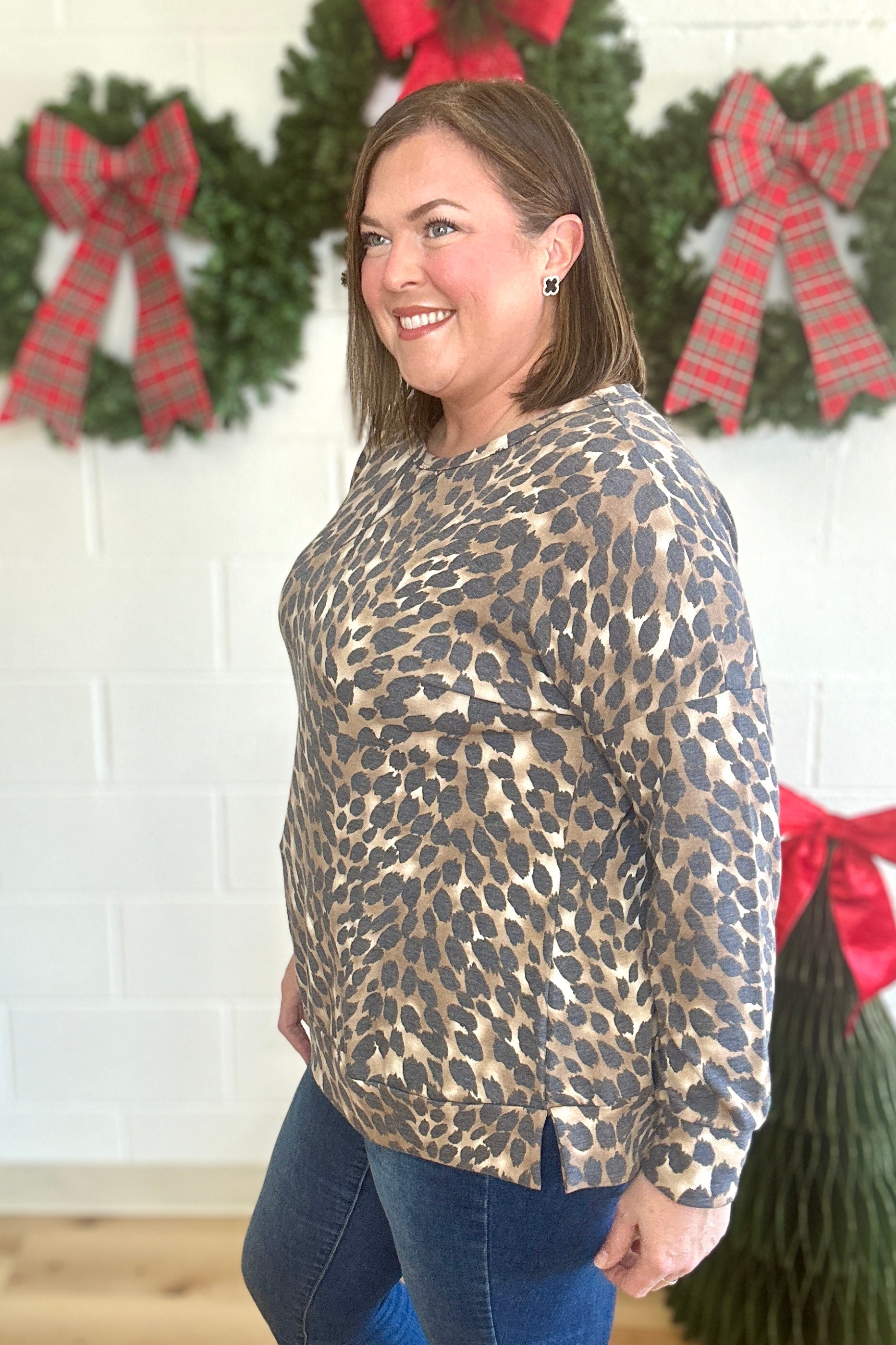 This playful pullover from Dear Scarlett combines comfort and style with its easy fit and soft knit fabric. Featuring a round neck band and banded sleeves and hem, it adds a touch of fun to your everyday look. The non-sheer material ensures you stay cozy and confident all day long. Perfect for casual outings or lounging in style!