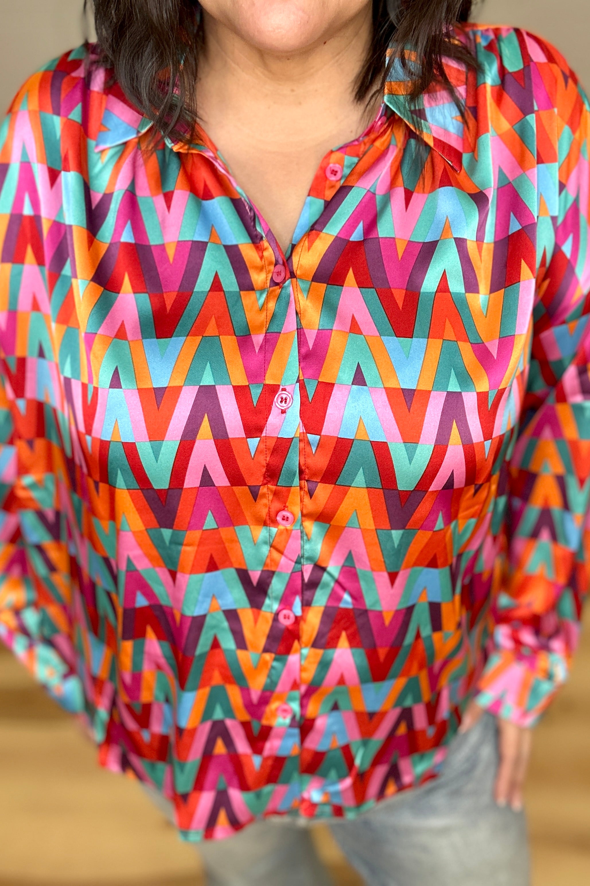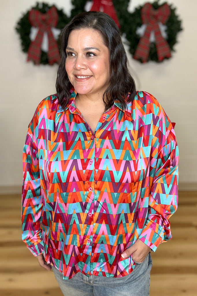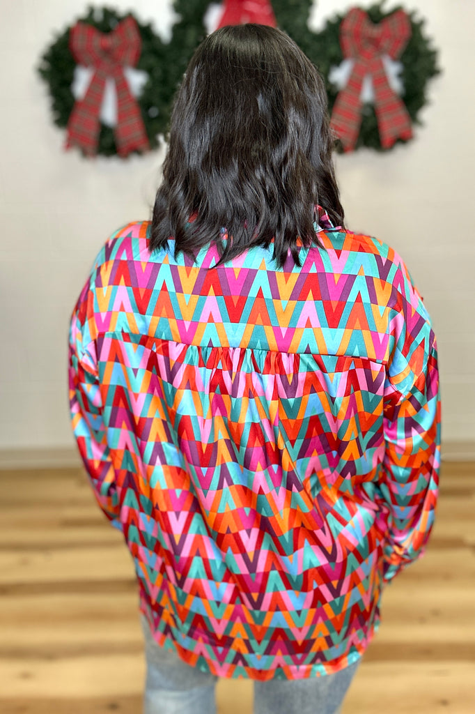 DEAL - Multicolor Geometric Button Down Top