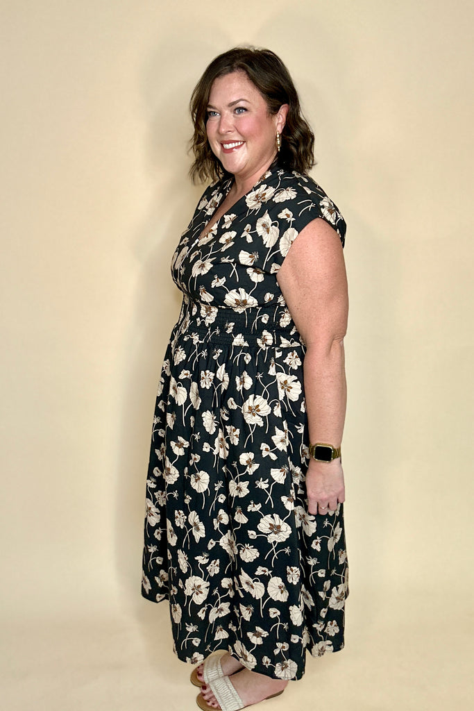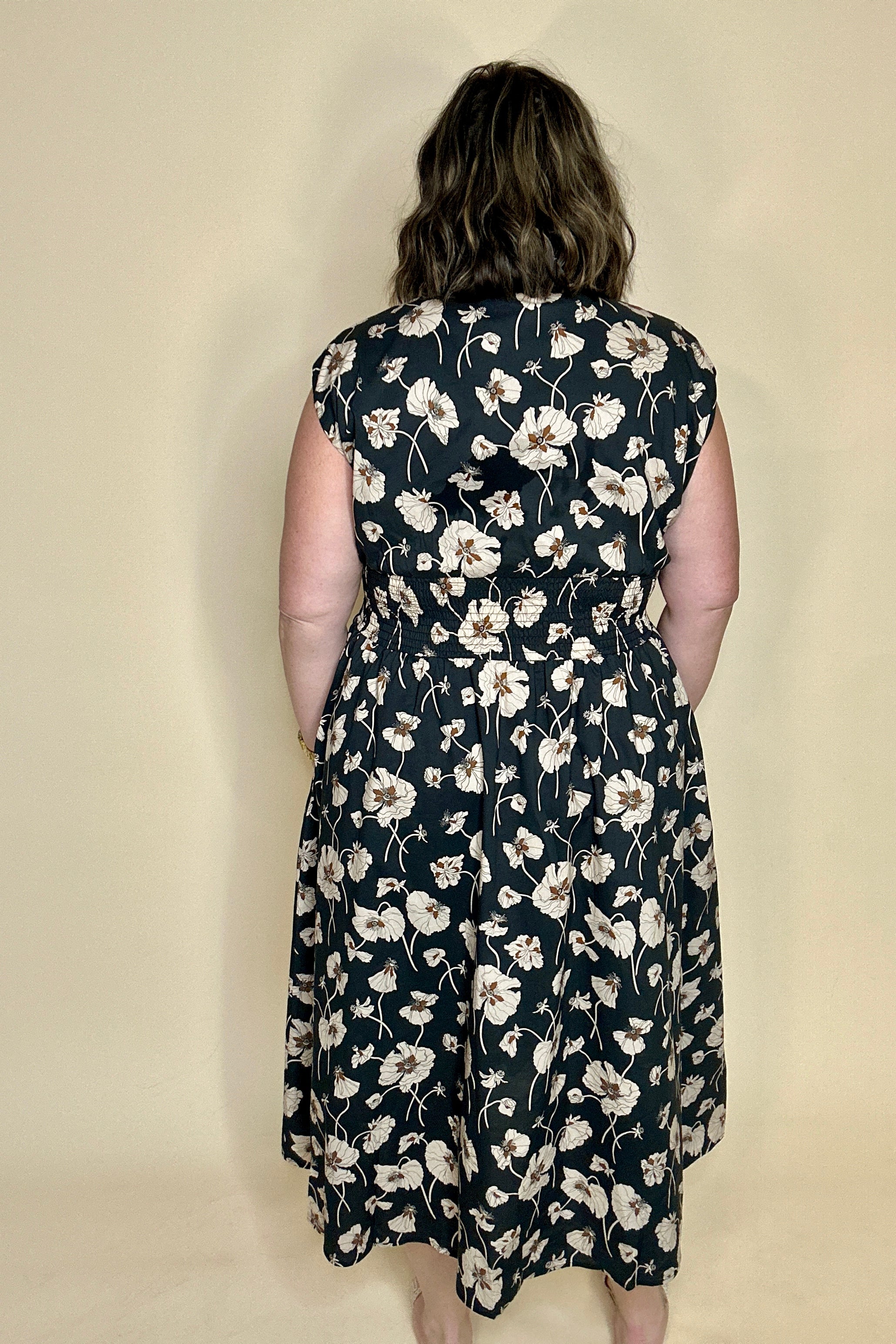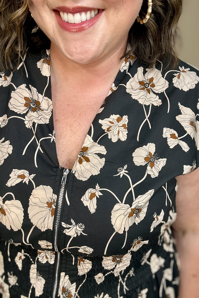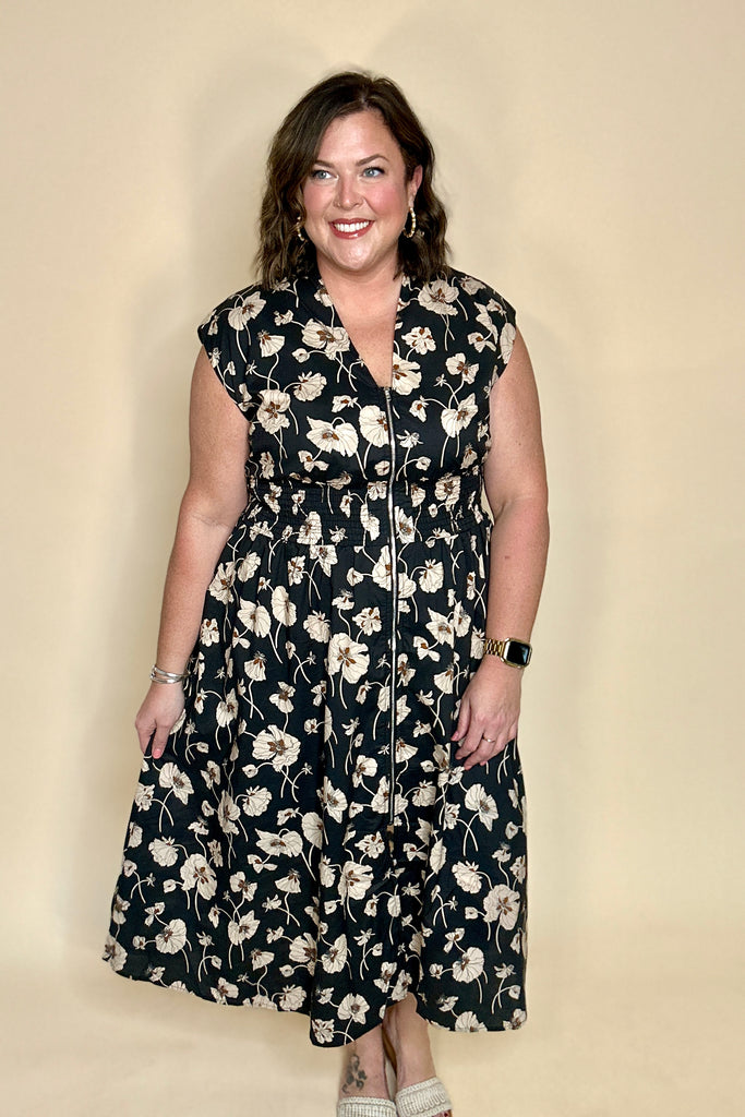 This She+Sky midi dress combines effortless style with practical design. The relaxed drop shoulder creates a flattering silhouette, while the smocked waist provides gentle shaping and comfort. A front zip allows for easy layering and adjustability, and the eye-catching print adds visual interest to your wardrobe. Functional pockets offer convenient storage without sacrificing style. Perfect for transitional seasons, this versatile piece works equally well dressed up or down, making it an essential addition to any closet.
