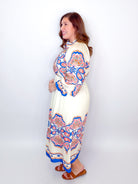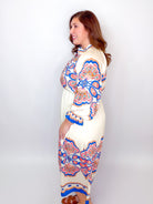 Cream Graphic Floral Print Midi Dress
