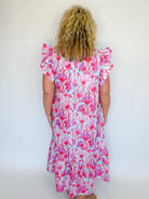 Lavender & Pink Floral Flutter Sleeve Tier Dress