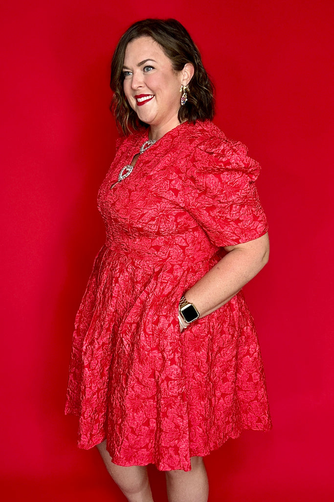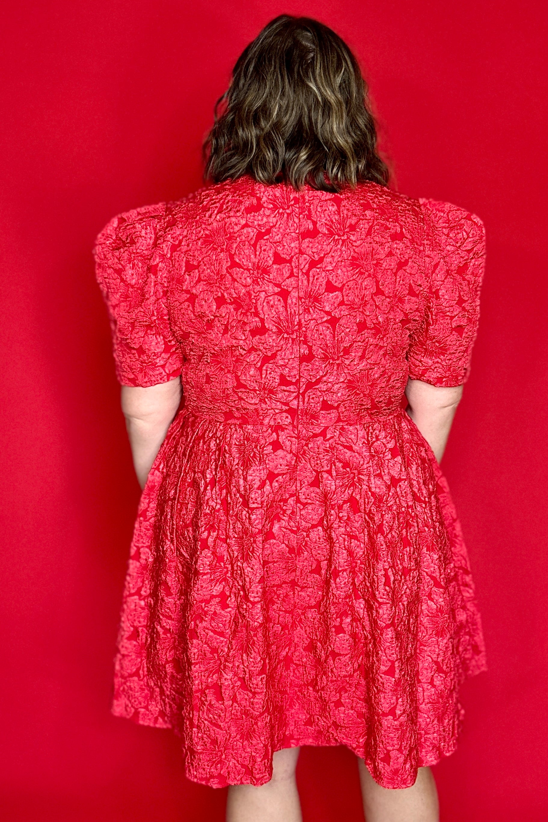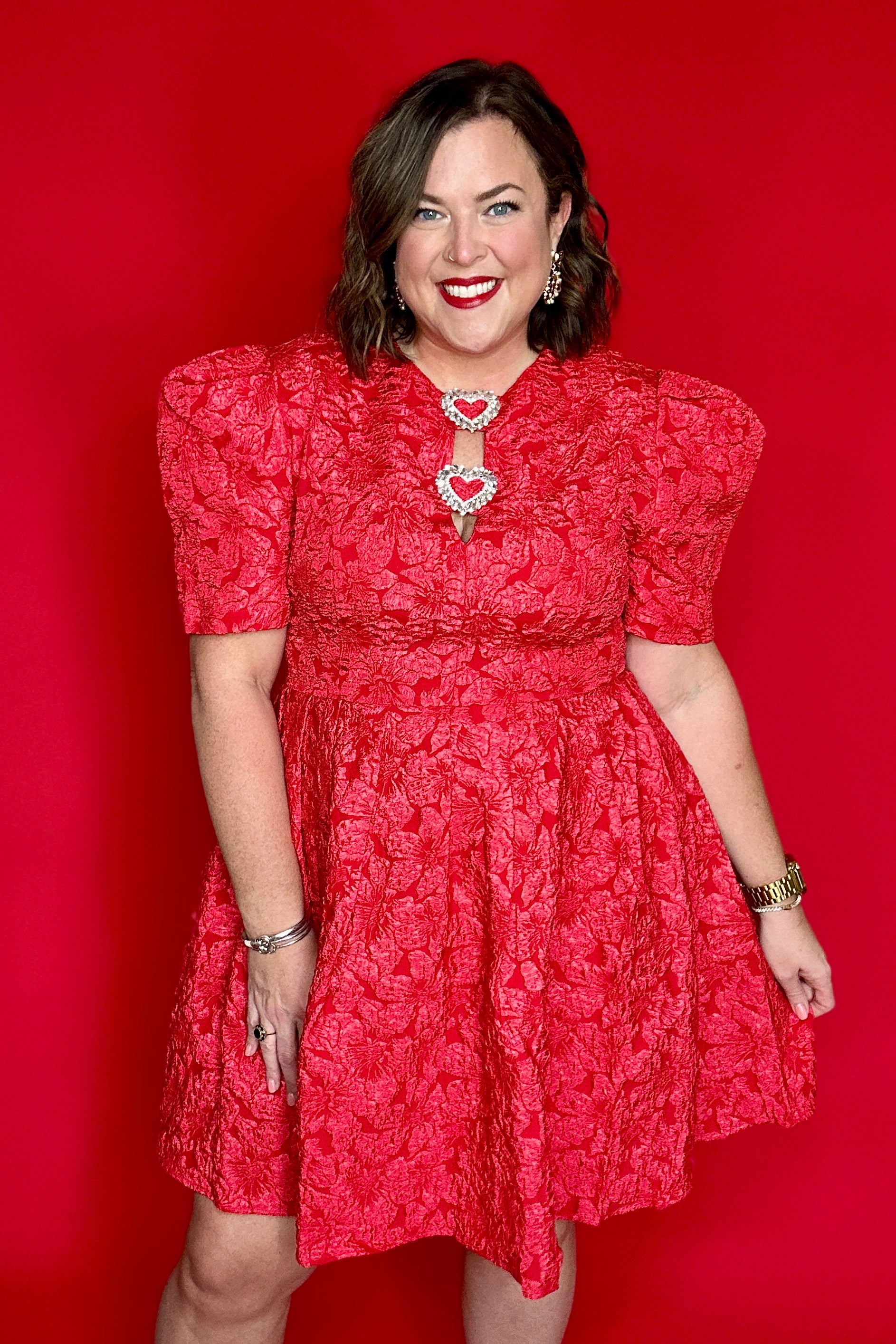 This Jacquard puff sleeve mini dress from Oddi features a fitted waist and a pleated skirt that elegantly accentuates your silhouette. Delicate heart-shaped rhinestone trim adds a refined touch of sparkle, making it perfect for sophisticated occasions. The textured fabric and tailored design offer timeless charm with modern flair.