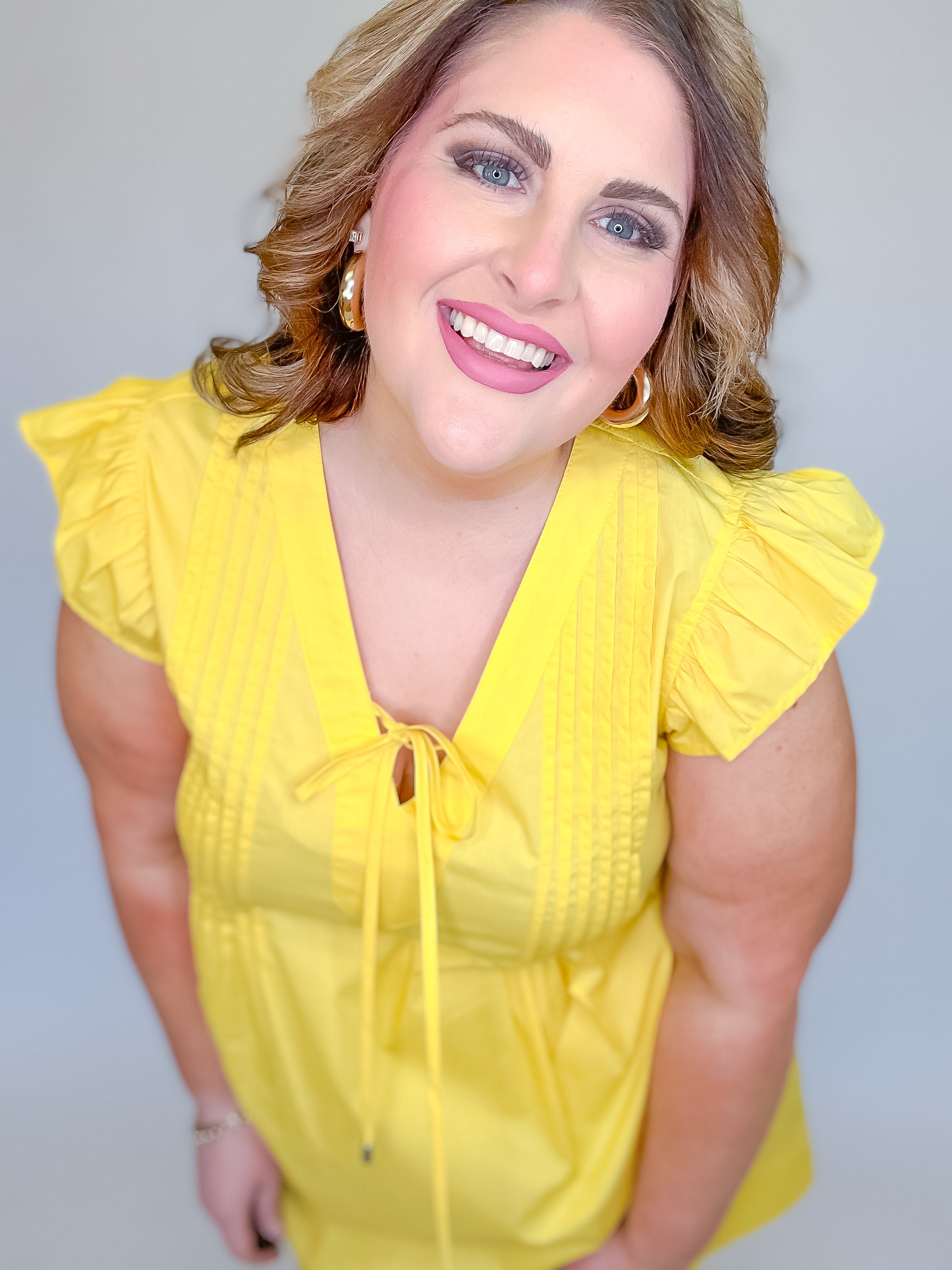 Yellow Pintuck Tie Front Top