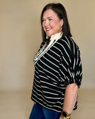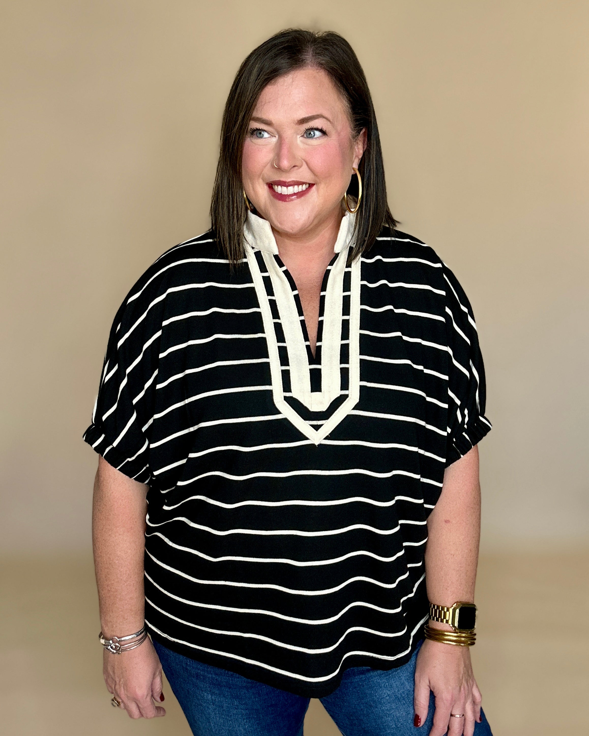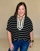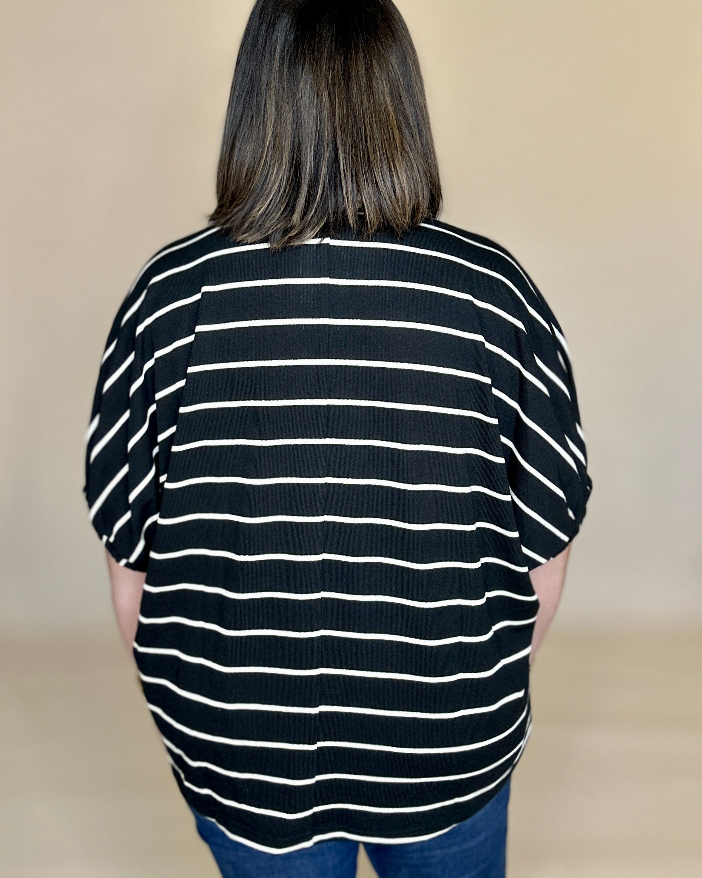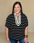 This lightweight, striped short dolman sleeve top by Entro combines comfort and style effortlessly. Featuring a contrast trim split V-neck and elasticated sleeve openings, it offers a flattering fit without compromising ease of movement. Made from non-sheer knit fabric and unlined for breathable wear, it’s perfect for layering or wearing on its own during warmer days. Elevate your casual wardrobe with this versatile piece that balances relaxed fit and chic detailing.