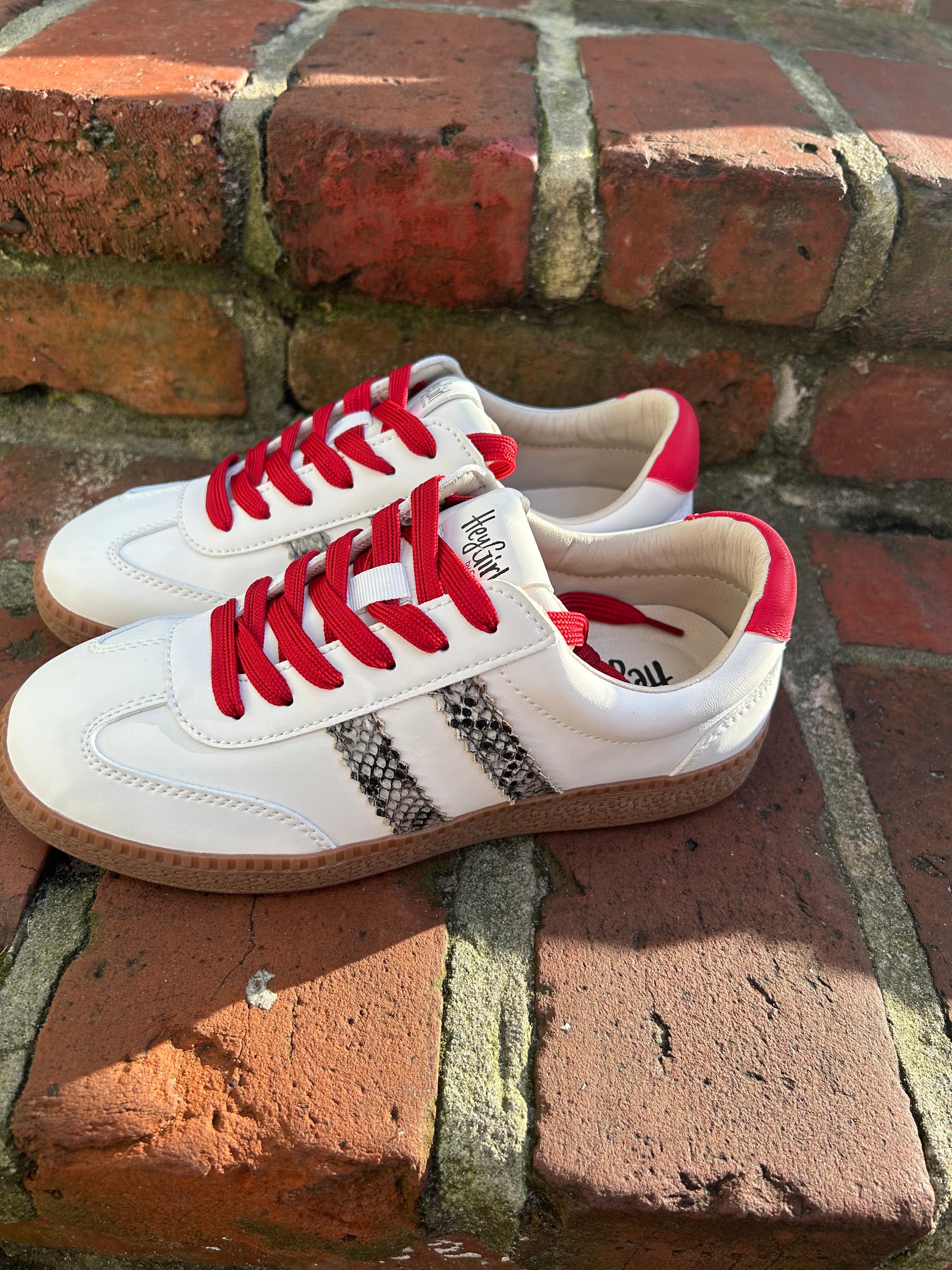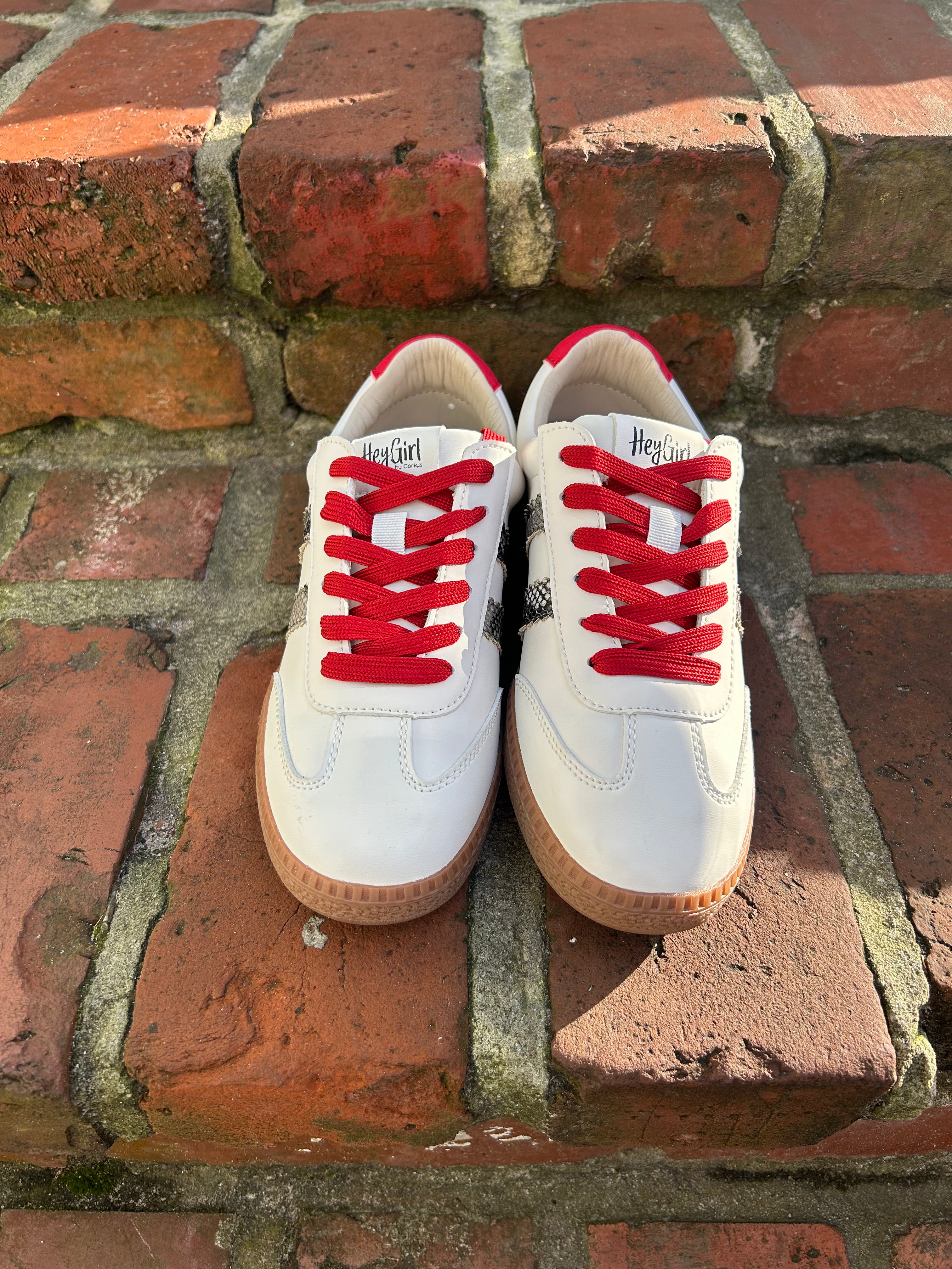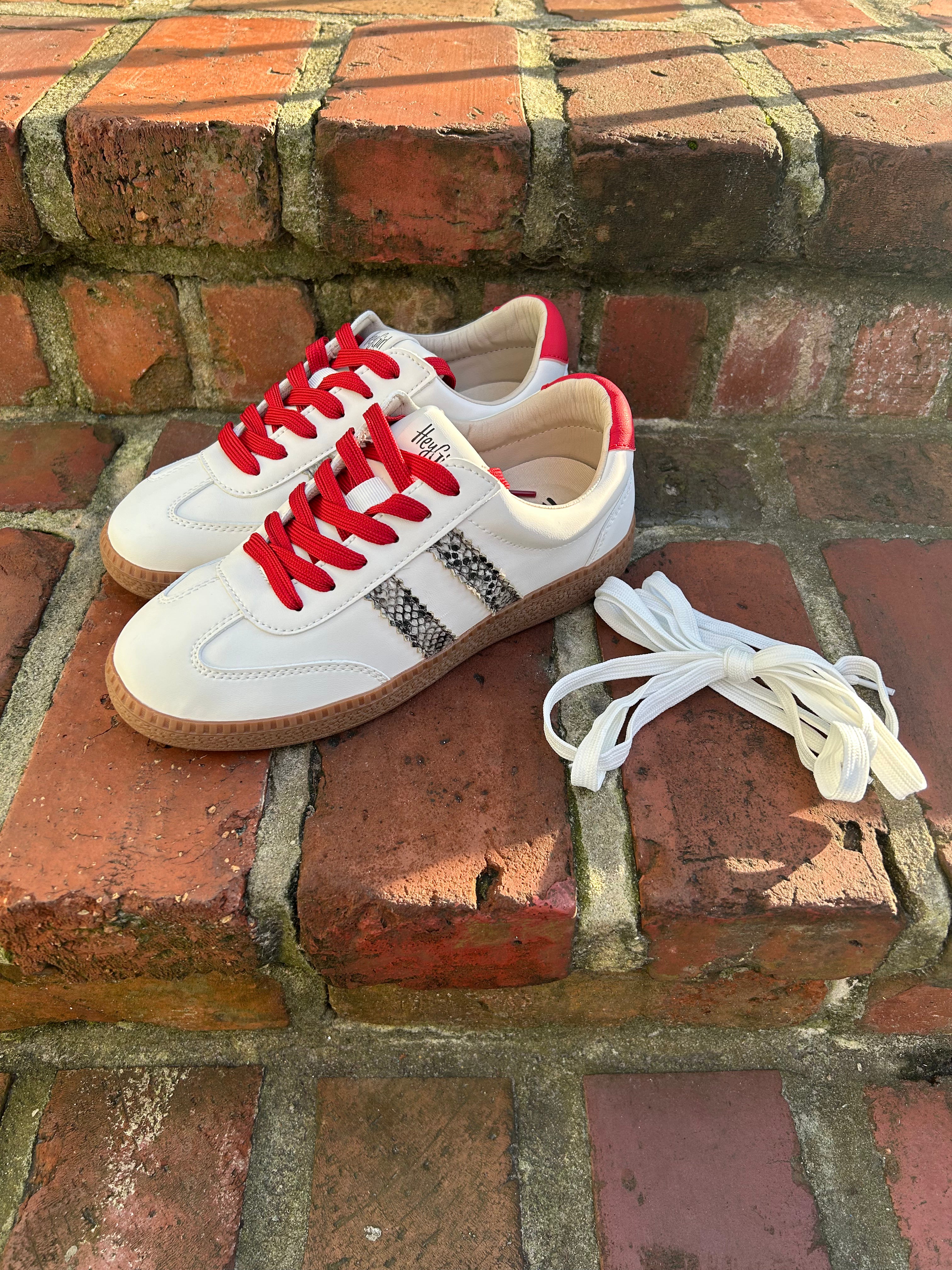 Step into style with Corky's Heads Up Sneakers—the perfect blend of fun and versatility. These adorable red, white, and blue sneakers work just as well with your favorite casual outfit as they do dressed up for a night out. Swap between the included white and red shoelaces to match your mood and create endless looks. Whether you're keeping it laid-back or turning heads, these sneakers deliver charm and flexibility in every step.