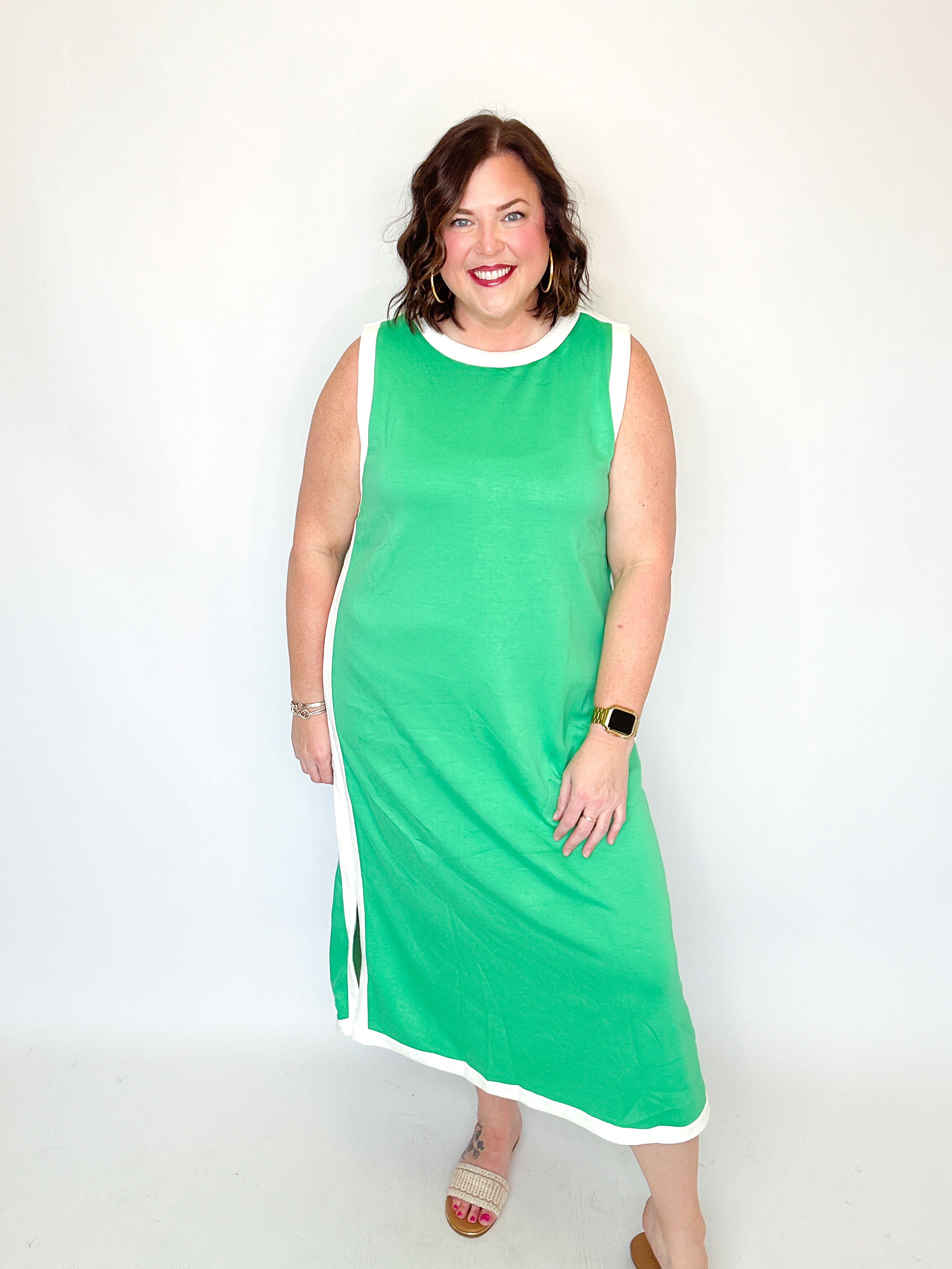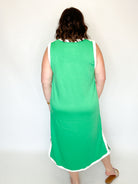 Green & White Side Slit Midi Dress
