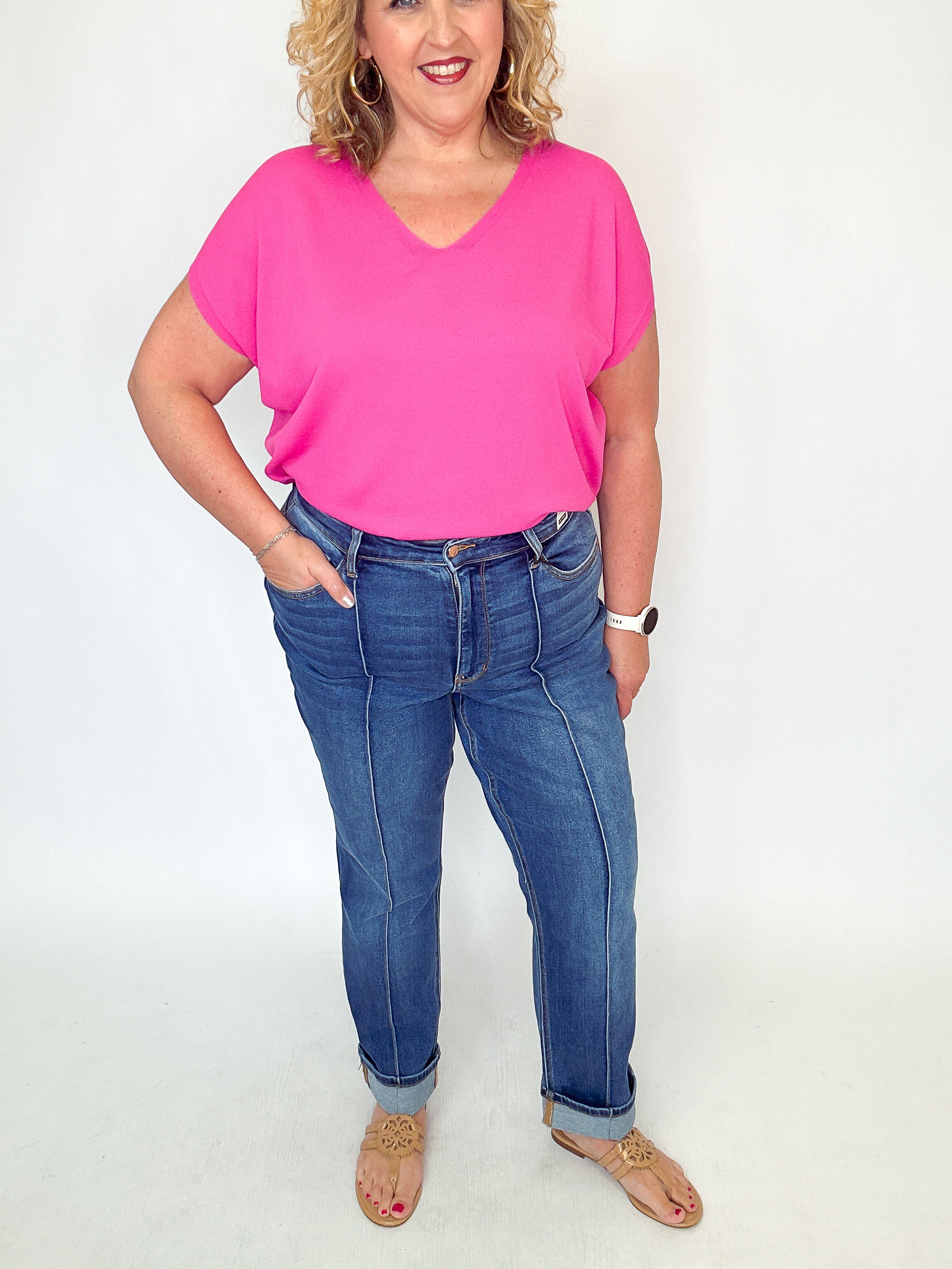 Judy Blue Front Seam Cuffed Straight Jeans
