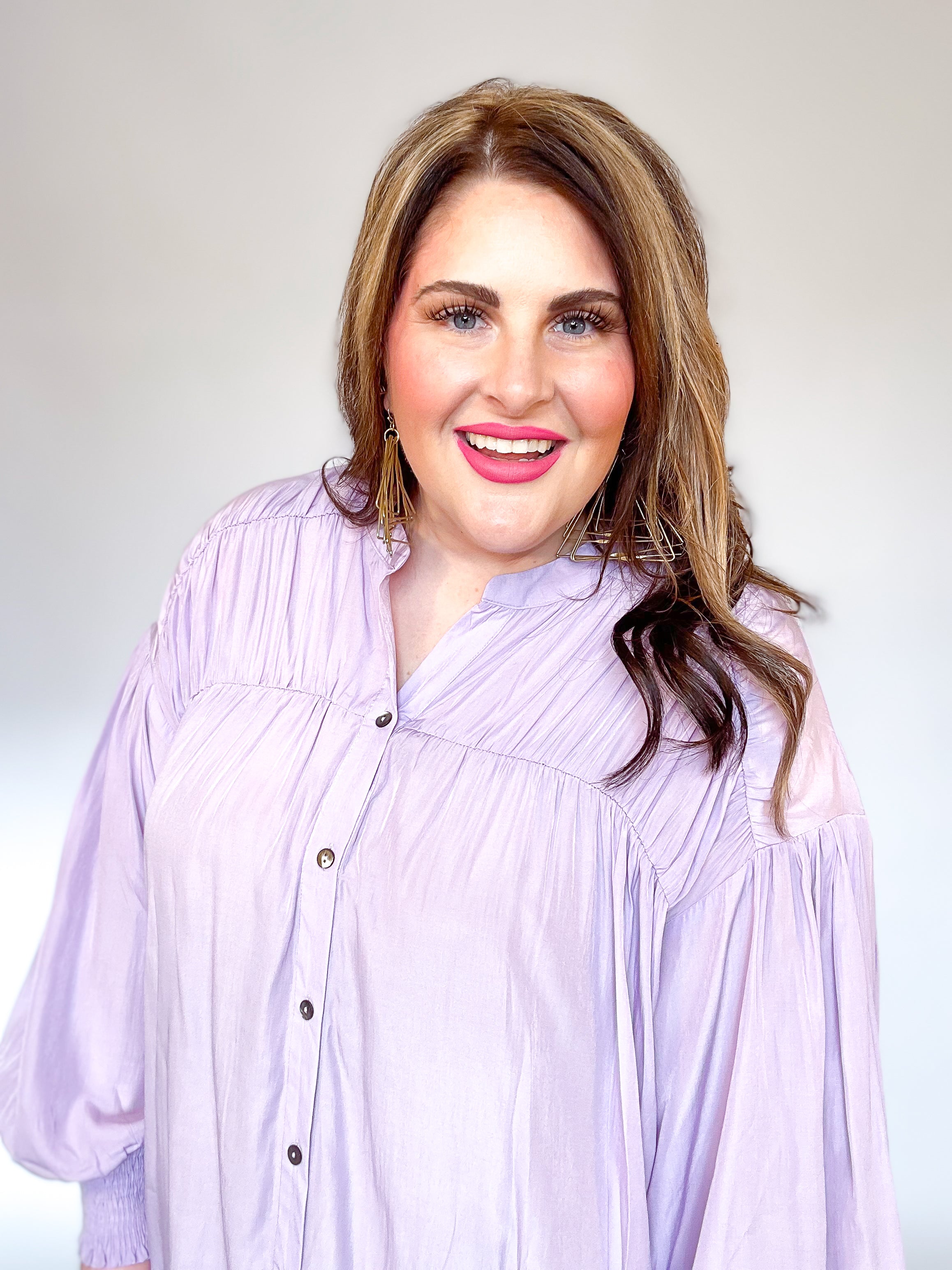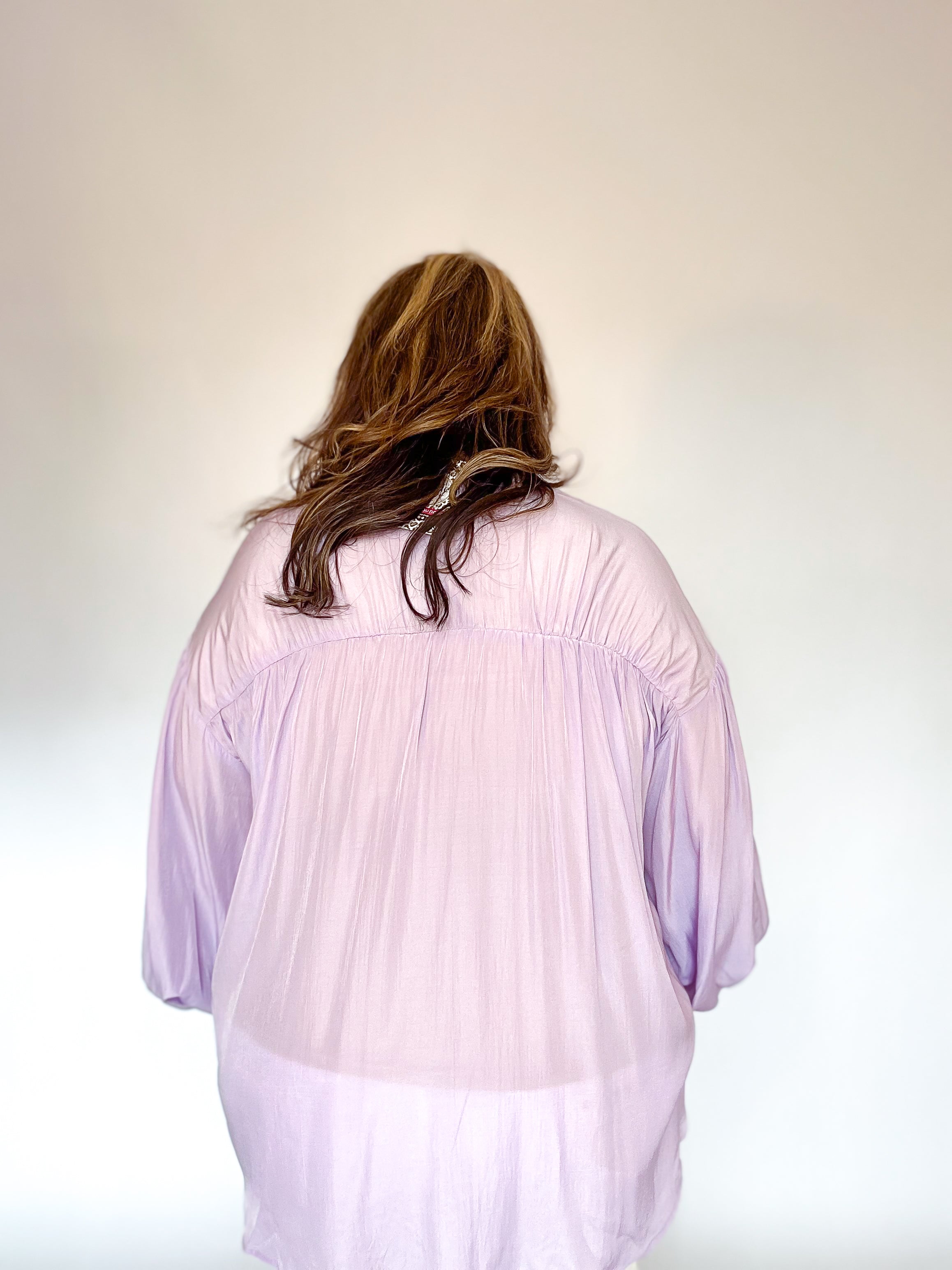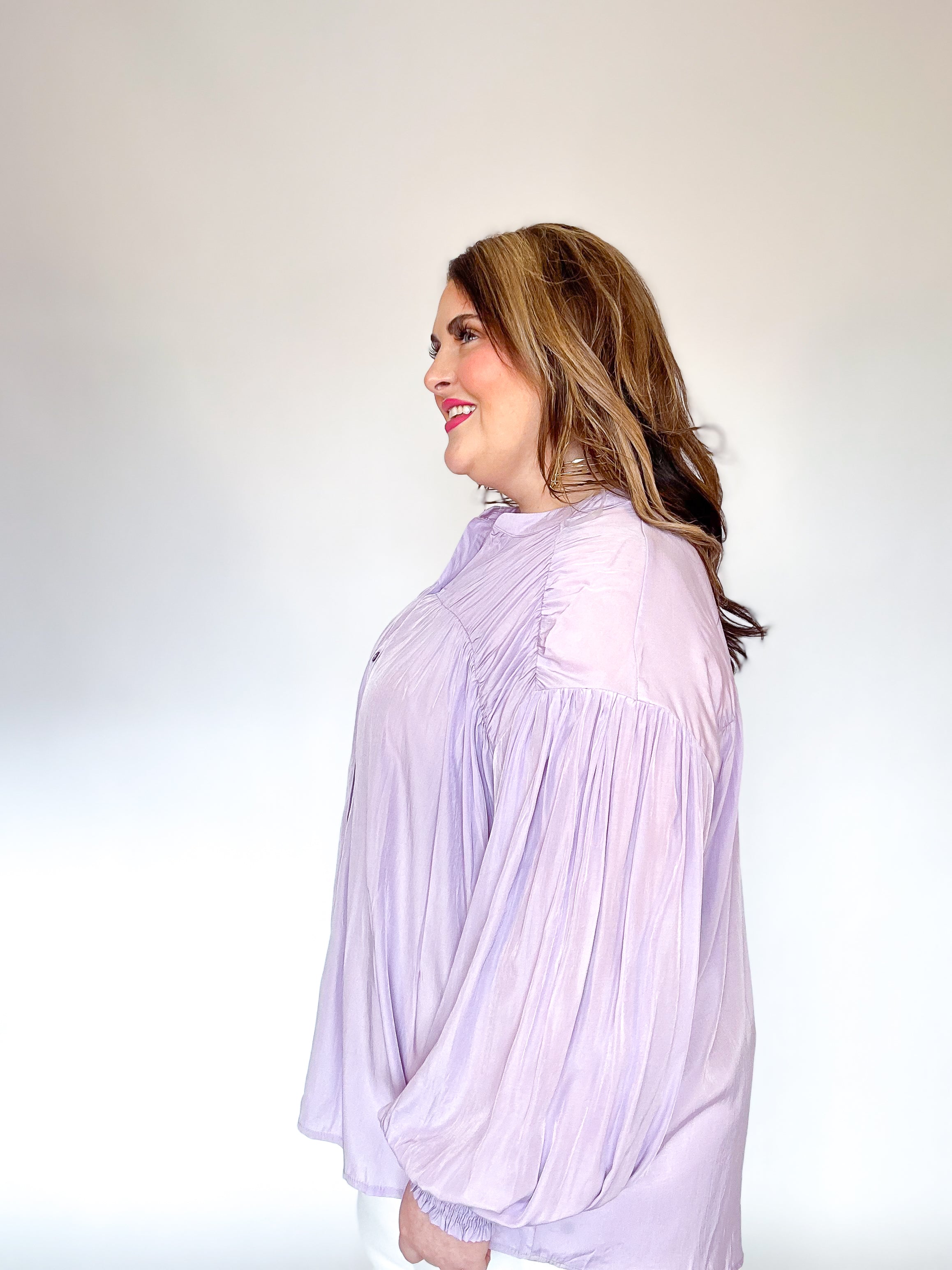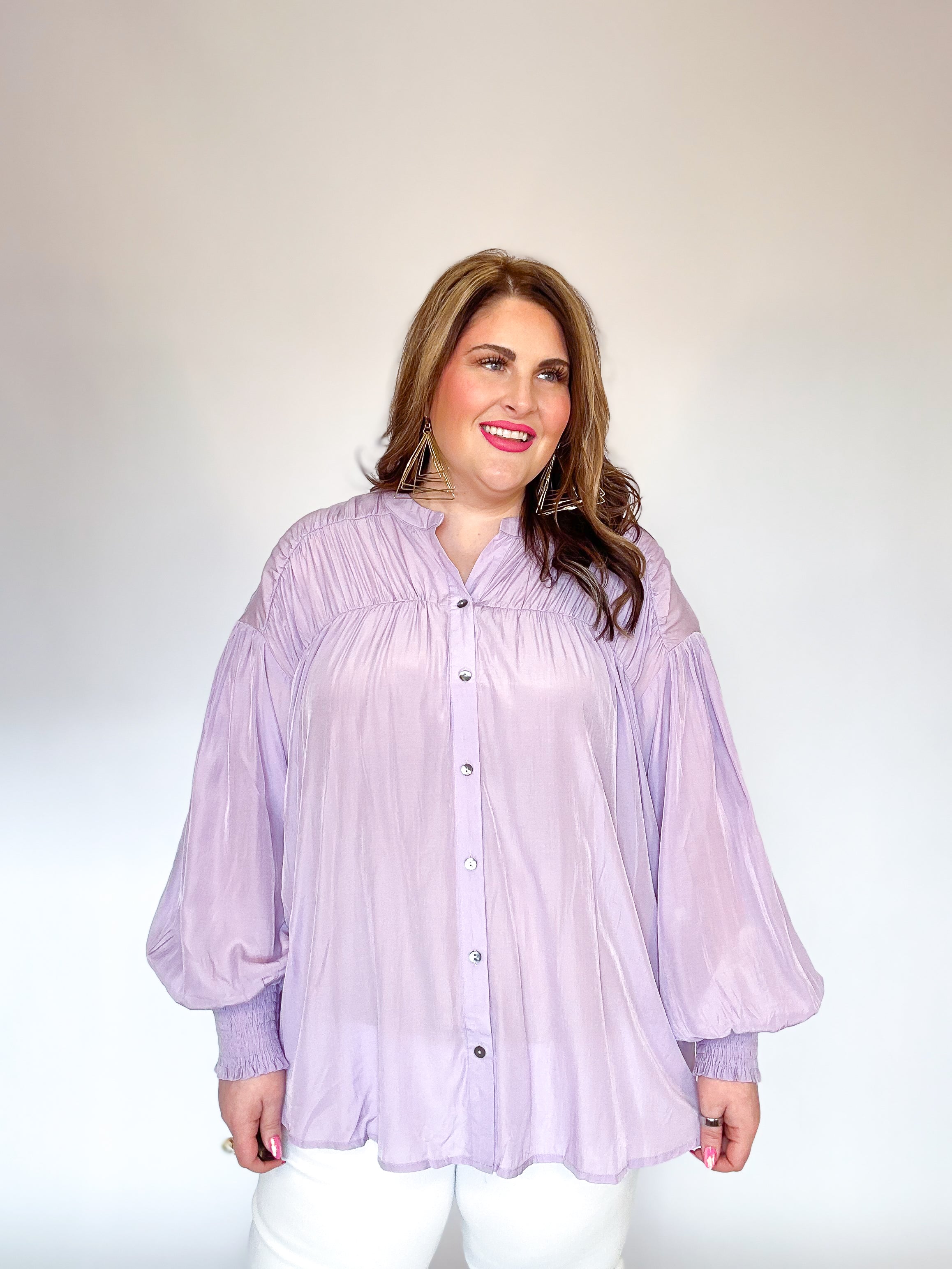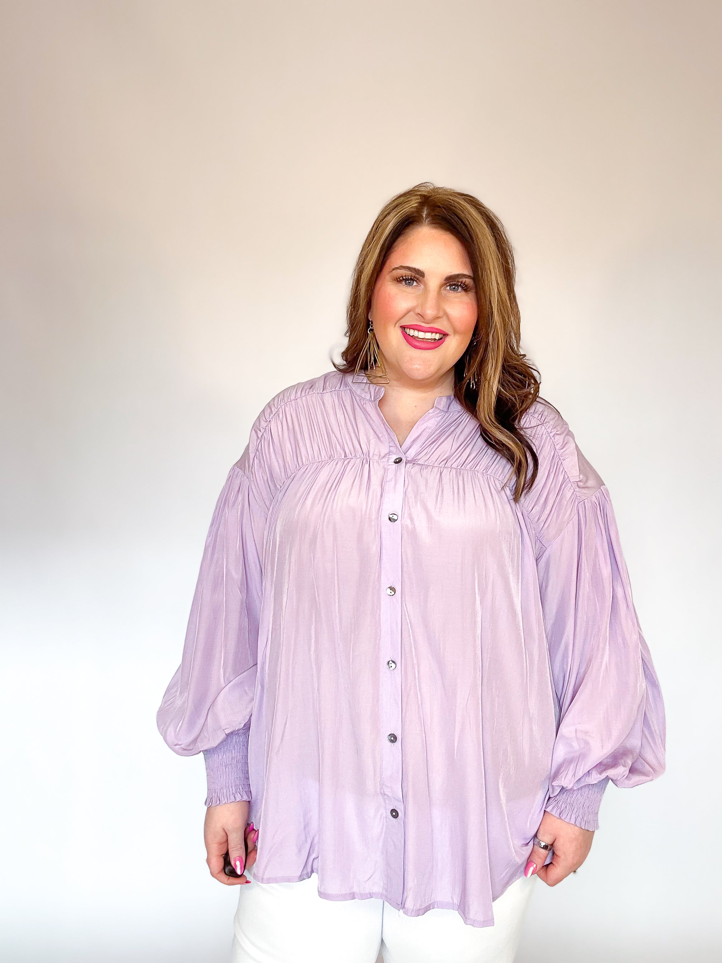 Lavender Pleated Button Down Top