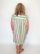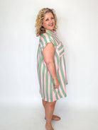 Pink & Green Stripe Button Down Dress