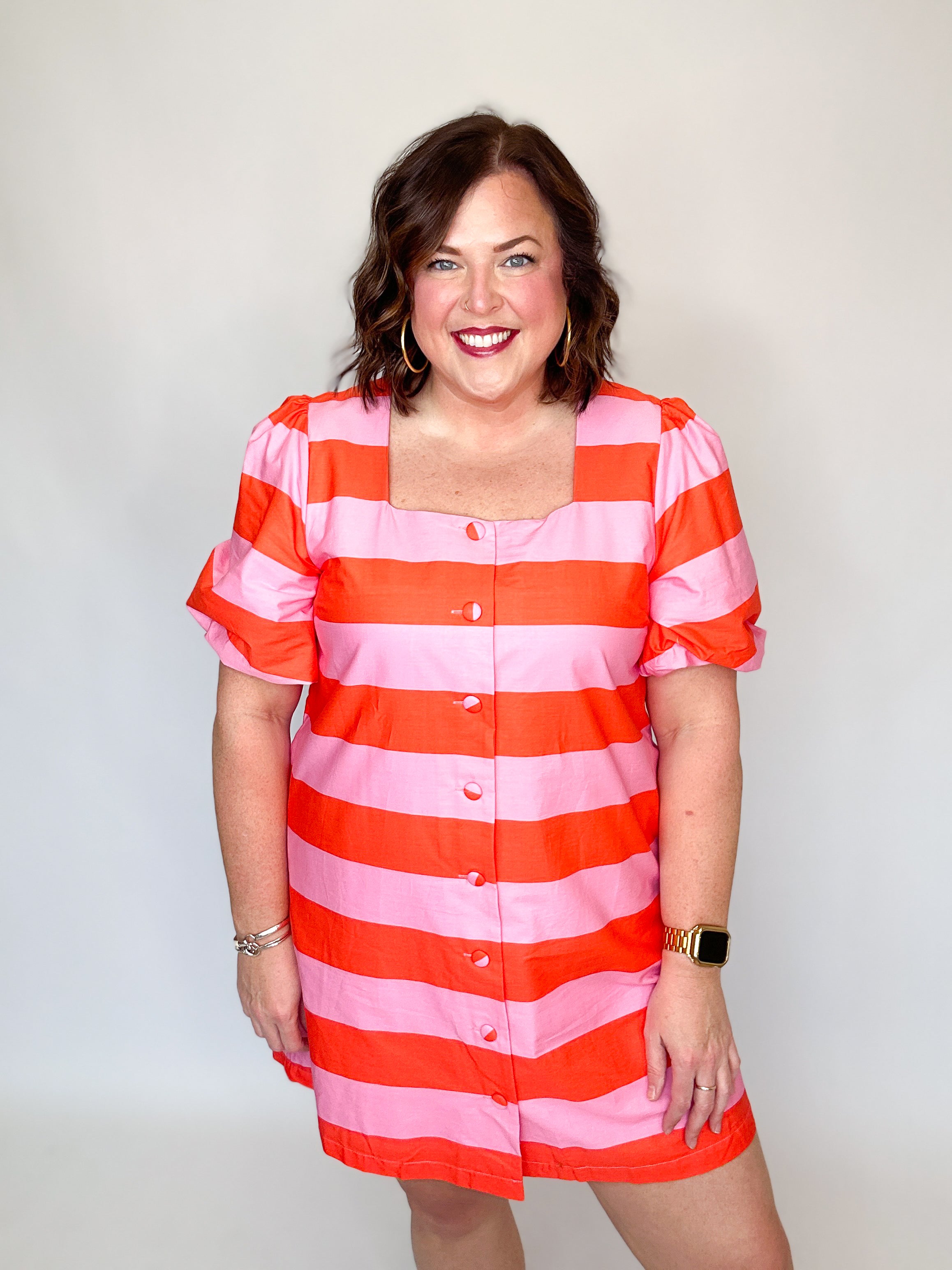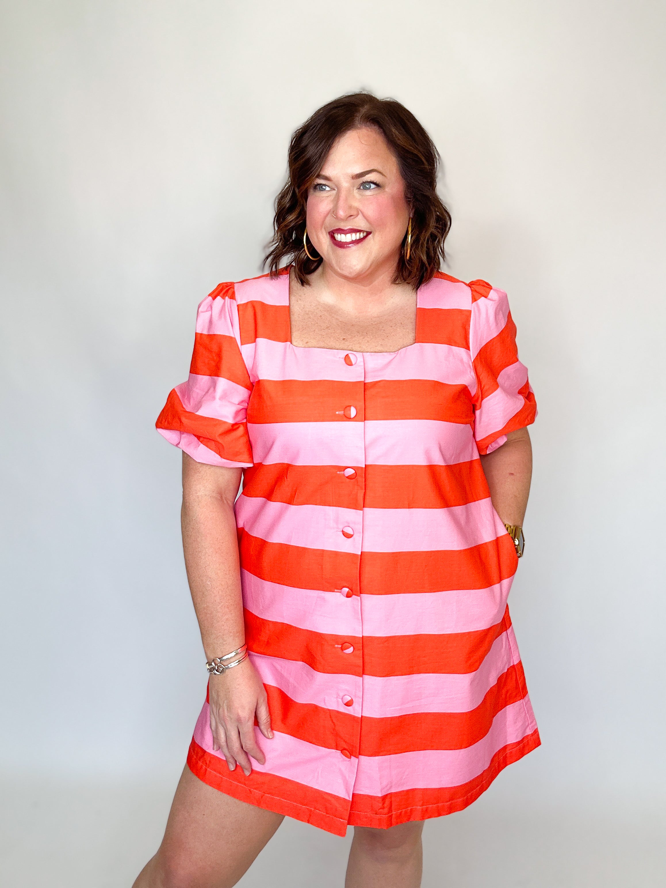 Pink & Orange Stripe Button Front Dress