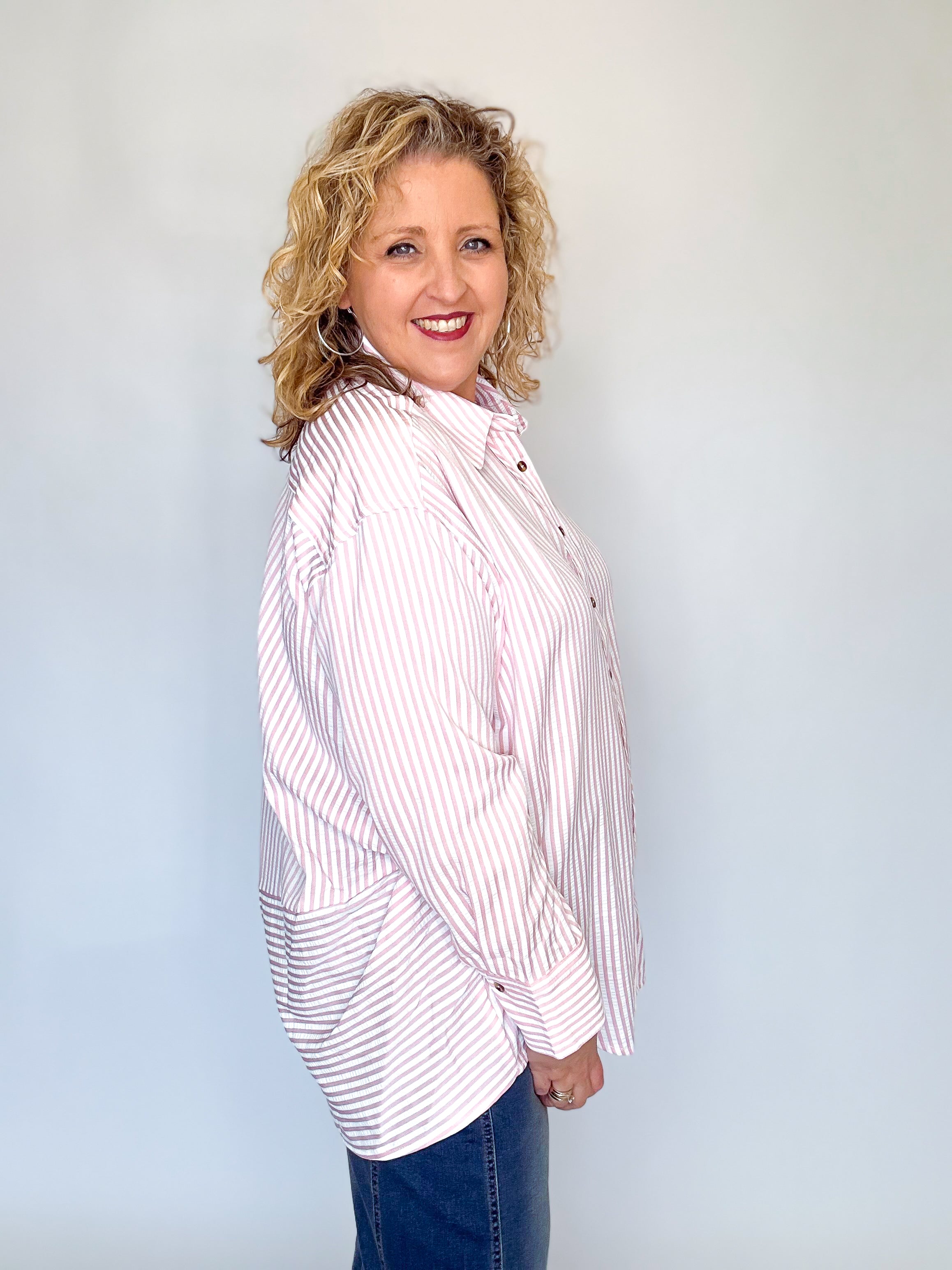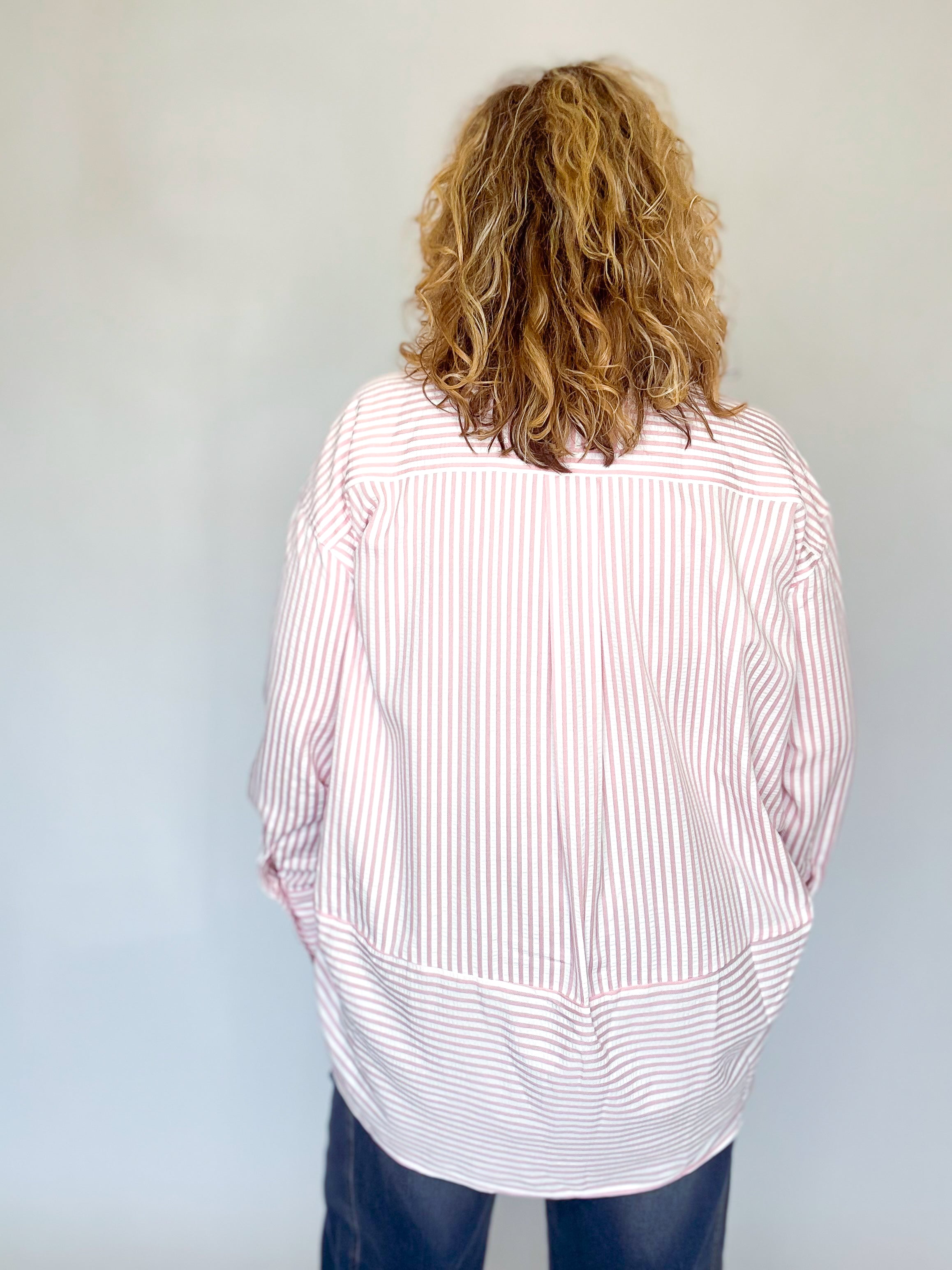 Pink & White Seersucker Button Down Top