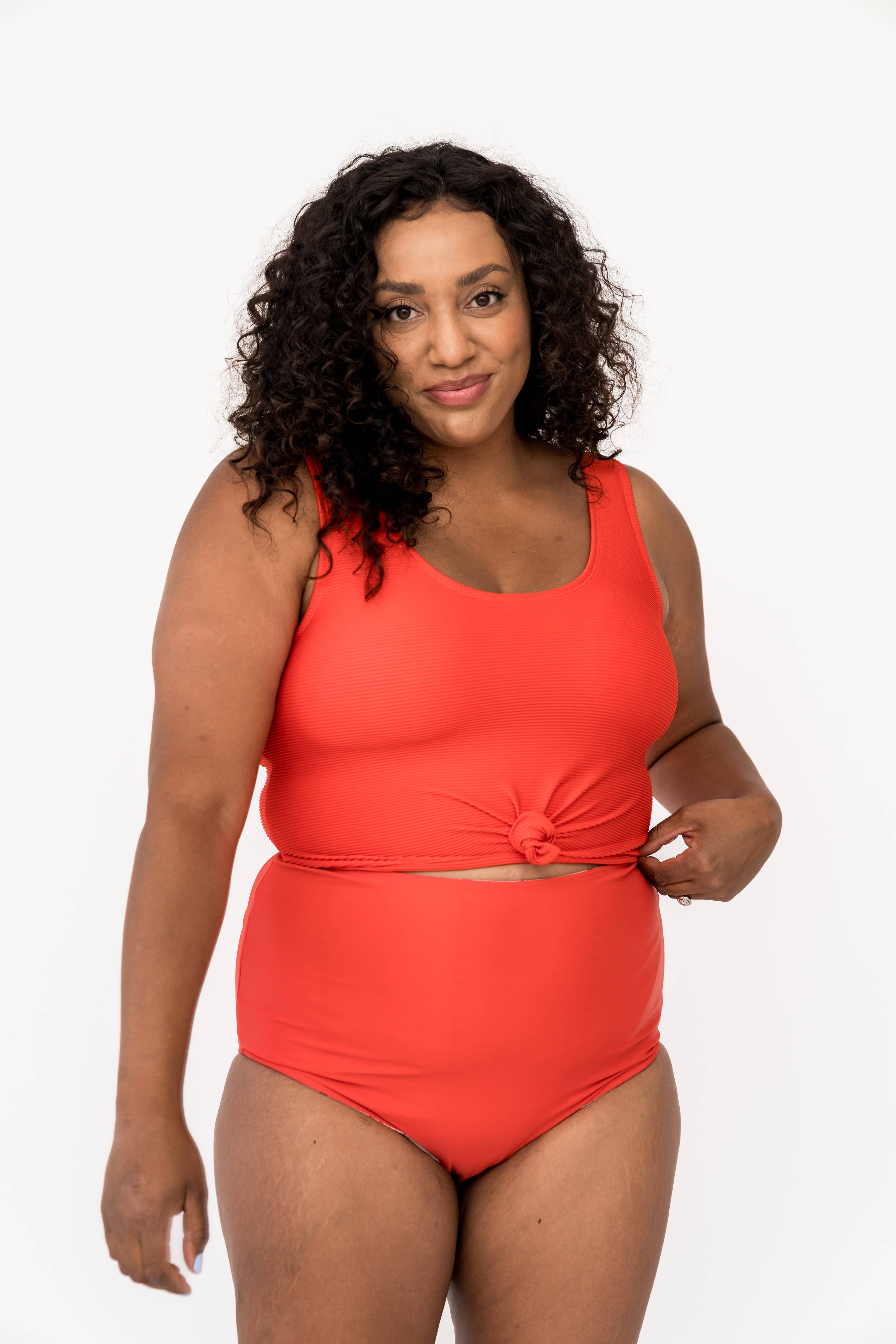 Coral Reef - Seaside Red Knotted Front Swim Top