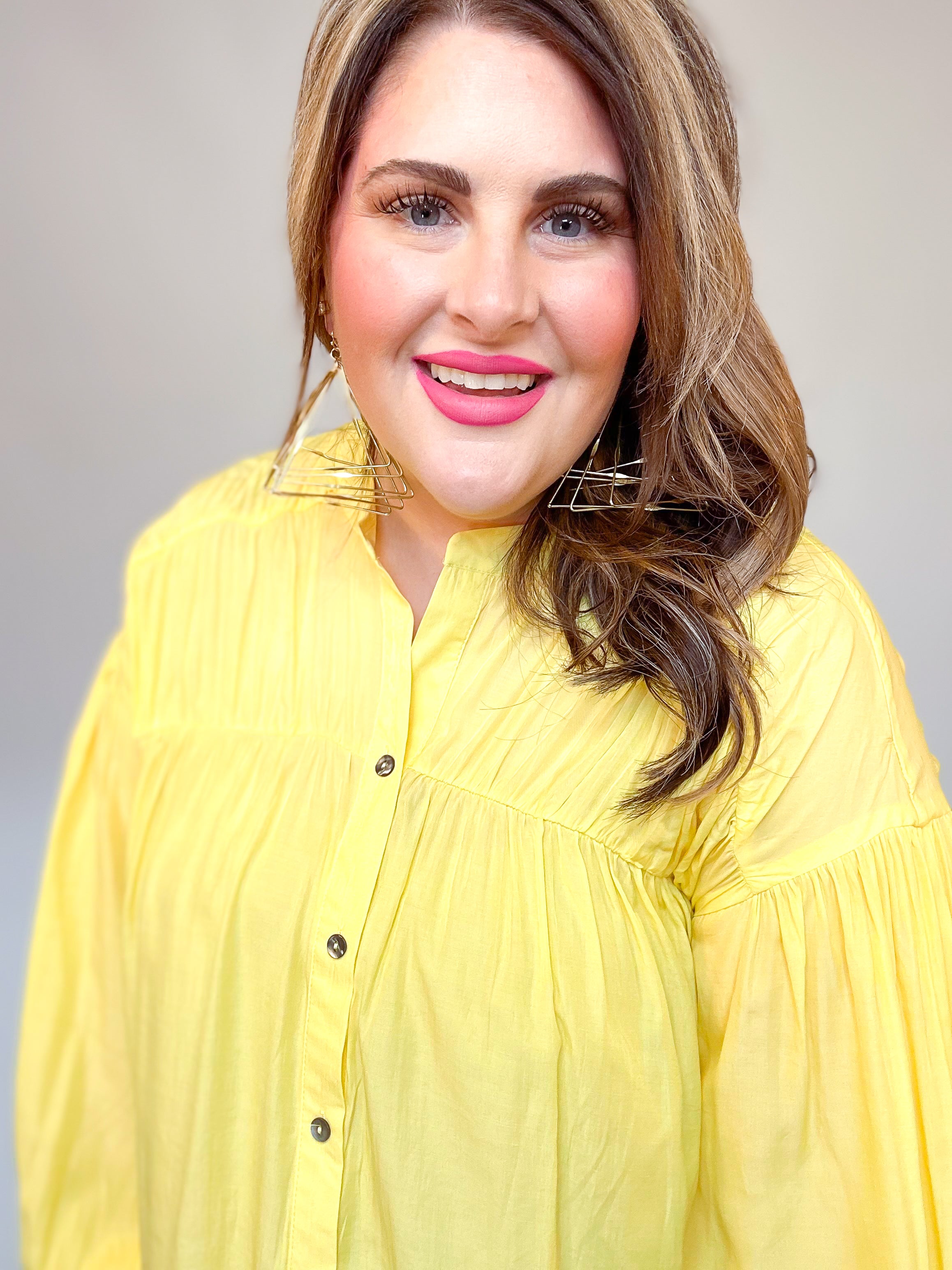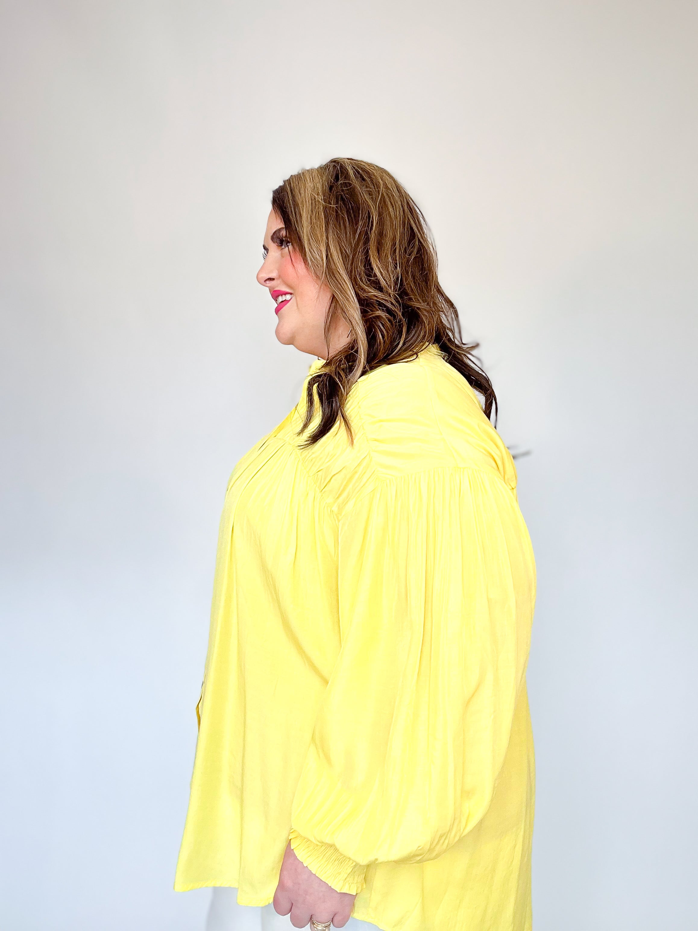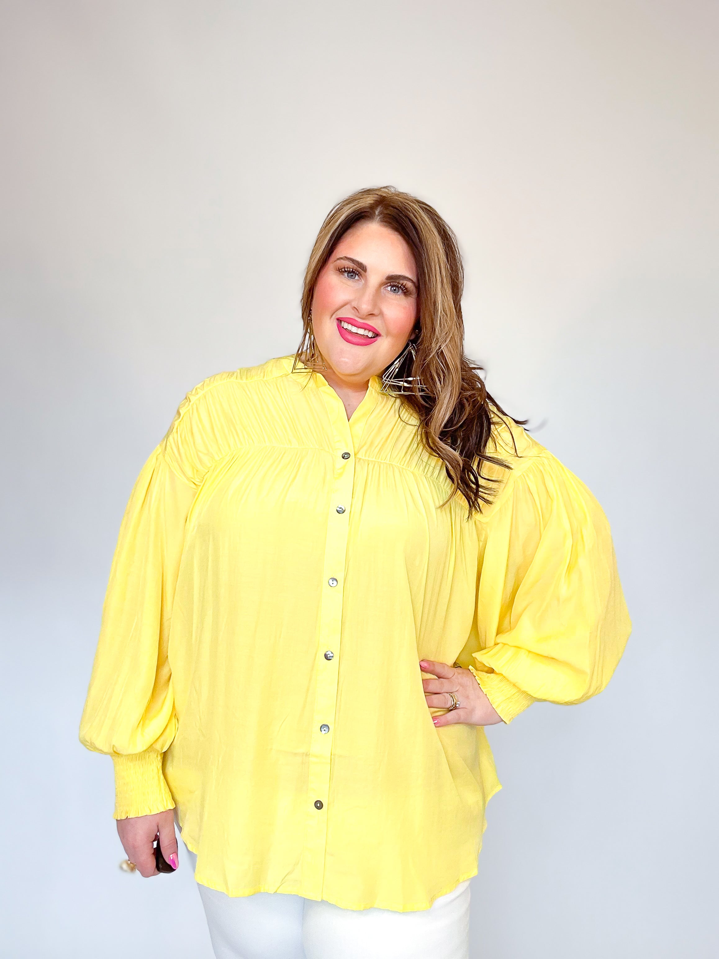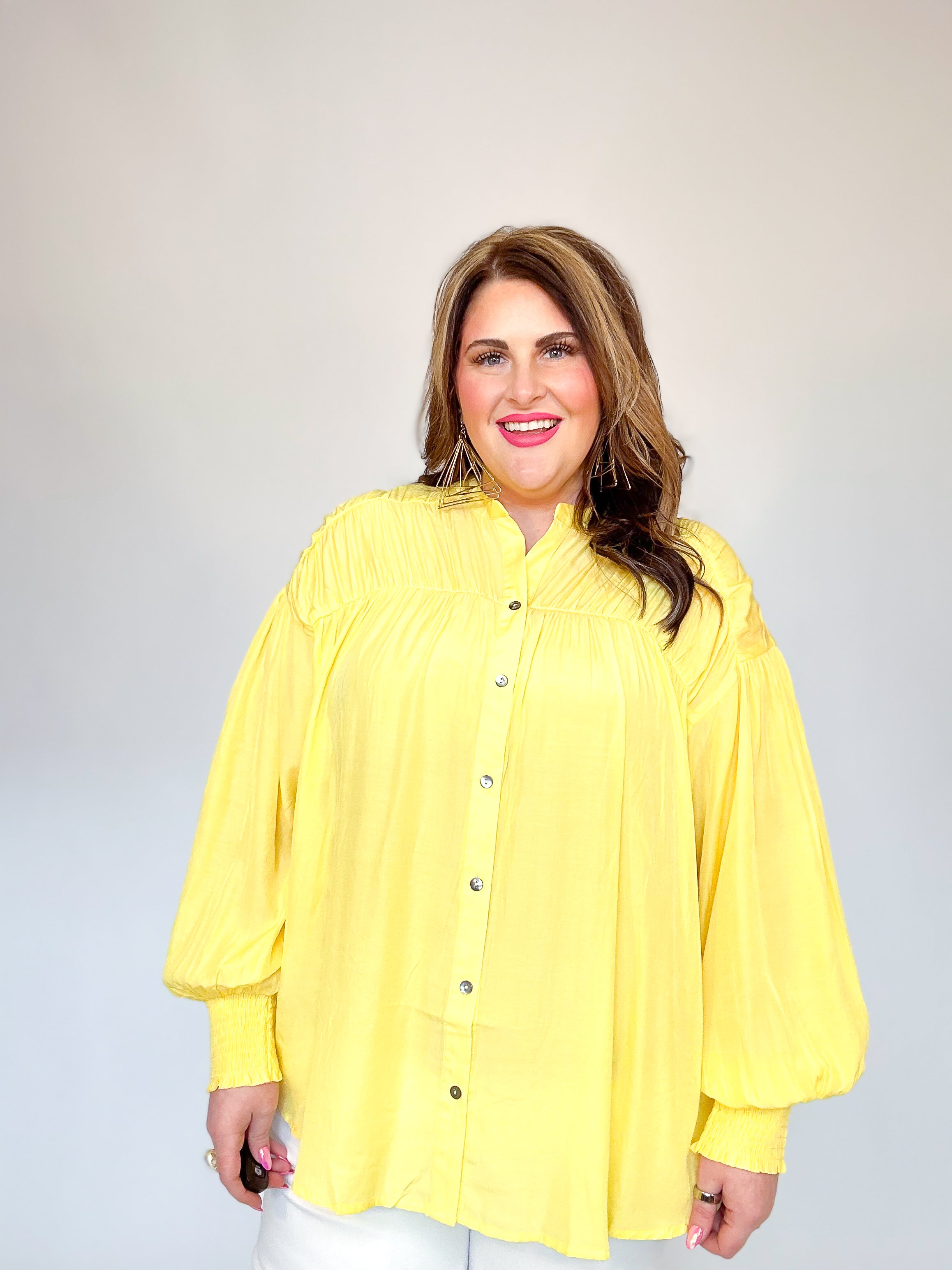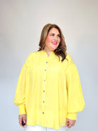 Yellow Pleated Button Down Top