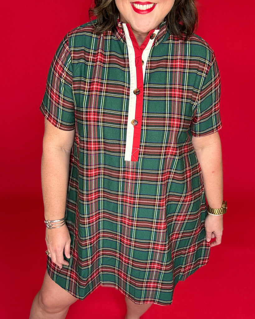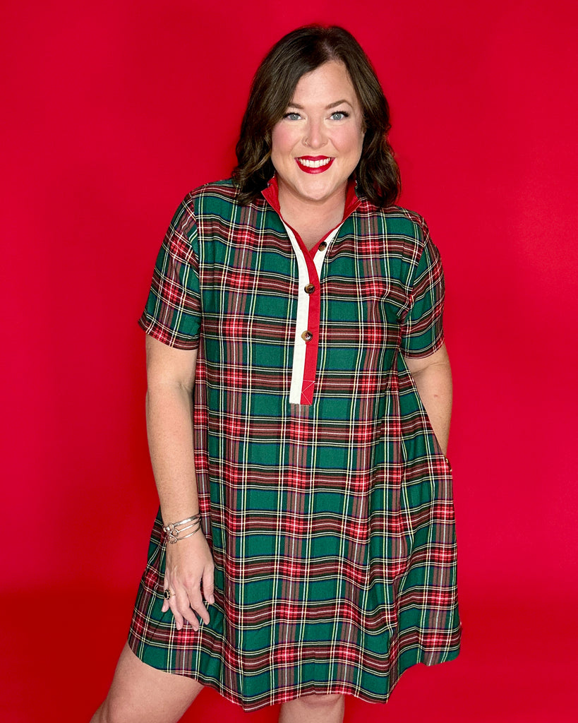 Step out in style with this playful Green Plaid Button Front Dress from Entro. Featuring a contrast buttoned placket and collar lining, it adds a fun twist to a classic look. Lightweight and woven with a non-sheer lining, it keeps you comfortable while offering side pockets for a touch of practicality. Perfect for sunny days and spontaneous adventures!