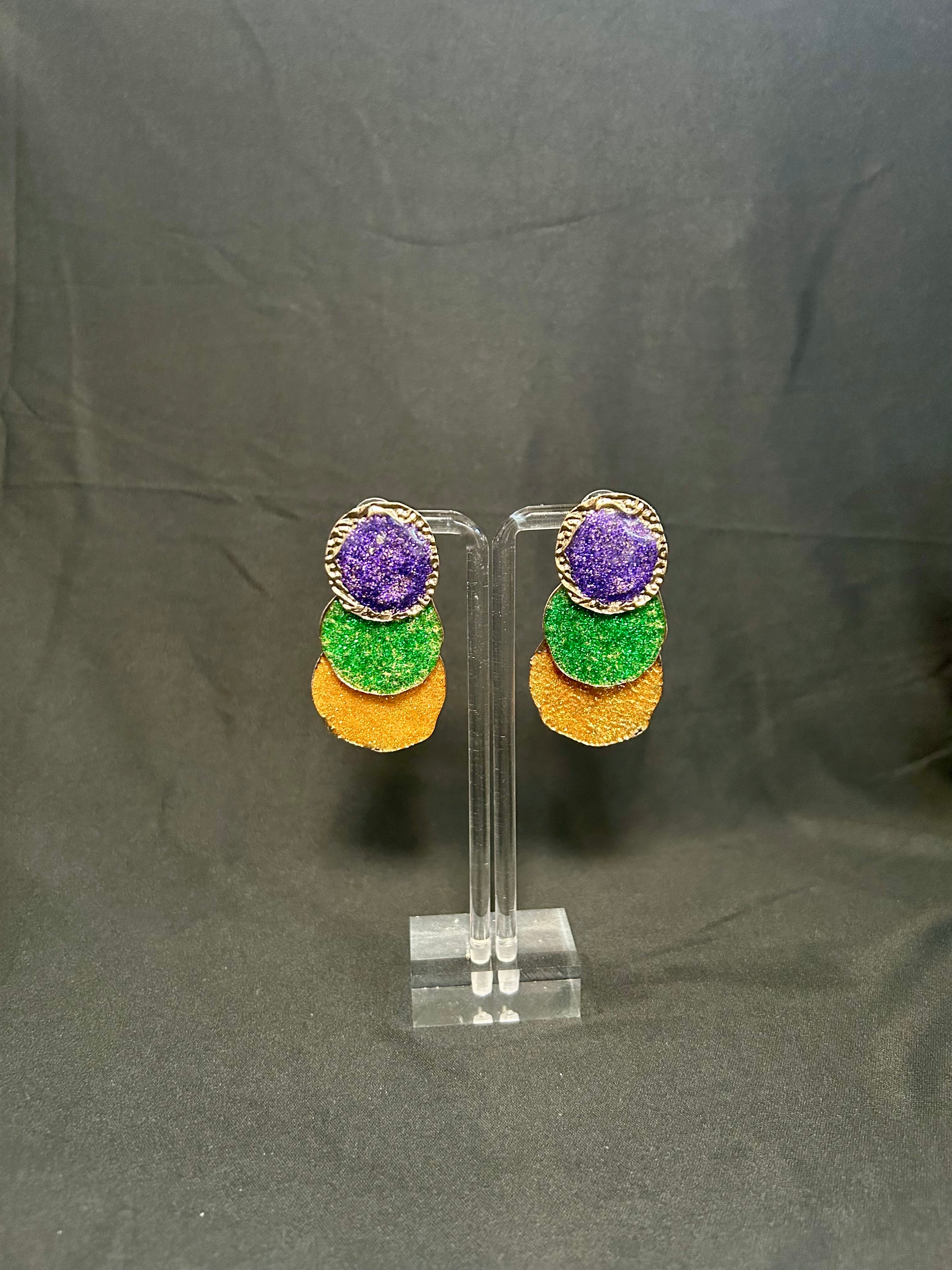 Mardi Gras Glittered Layered Disc Earrings